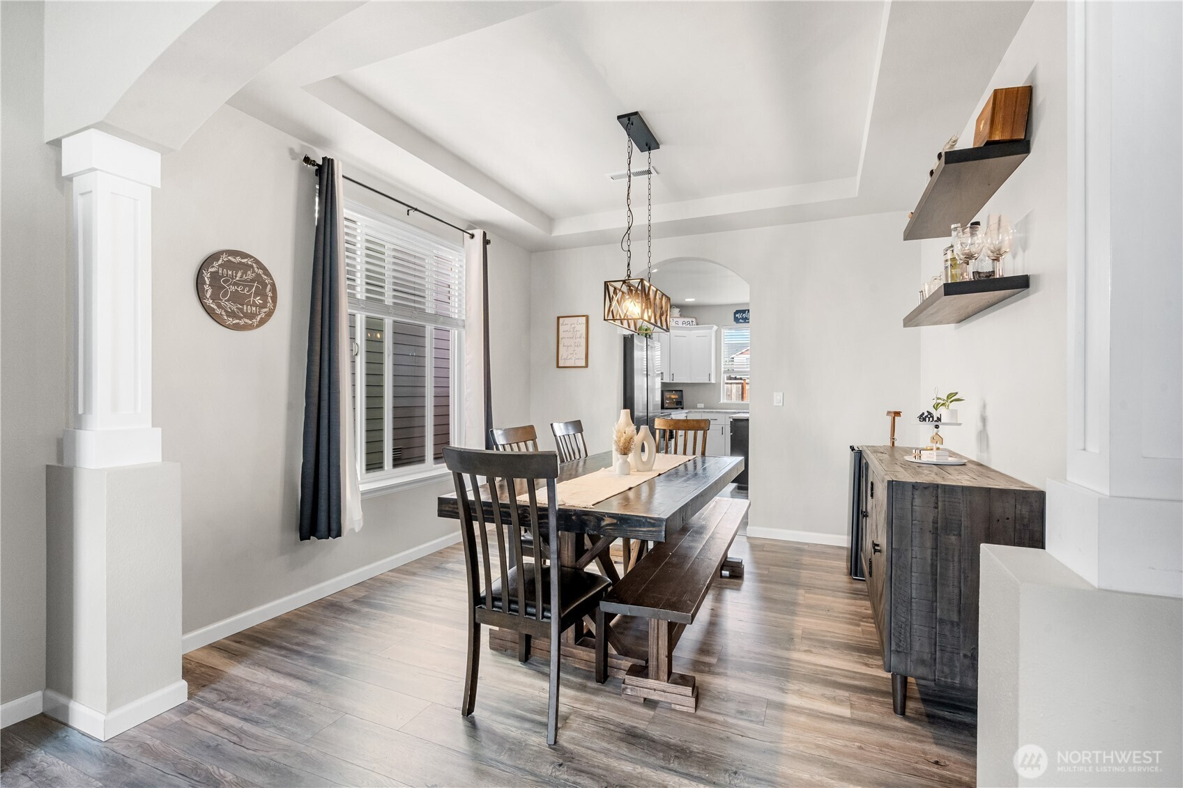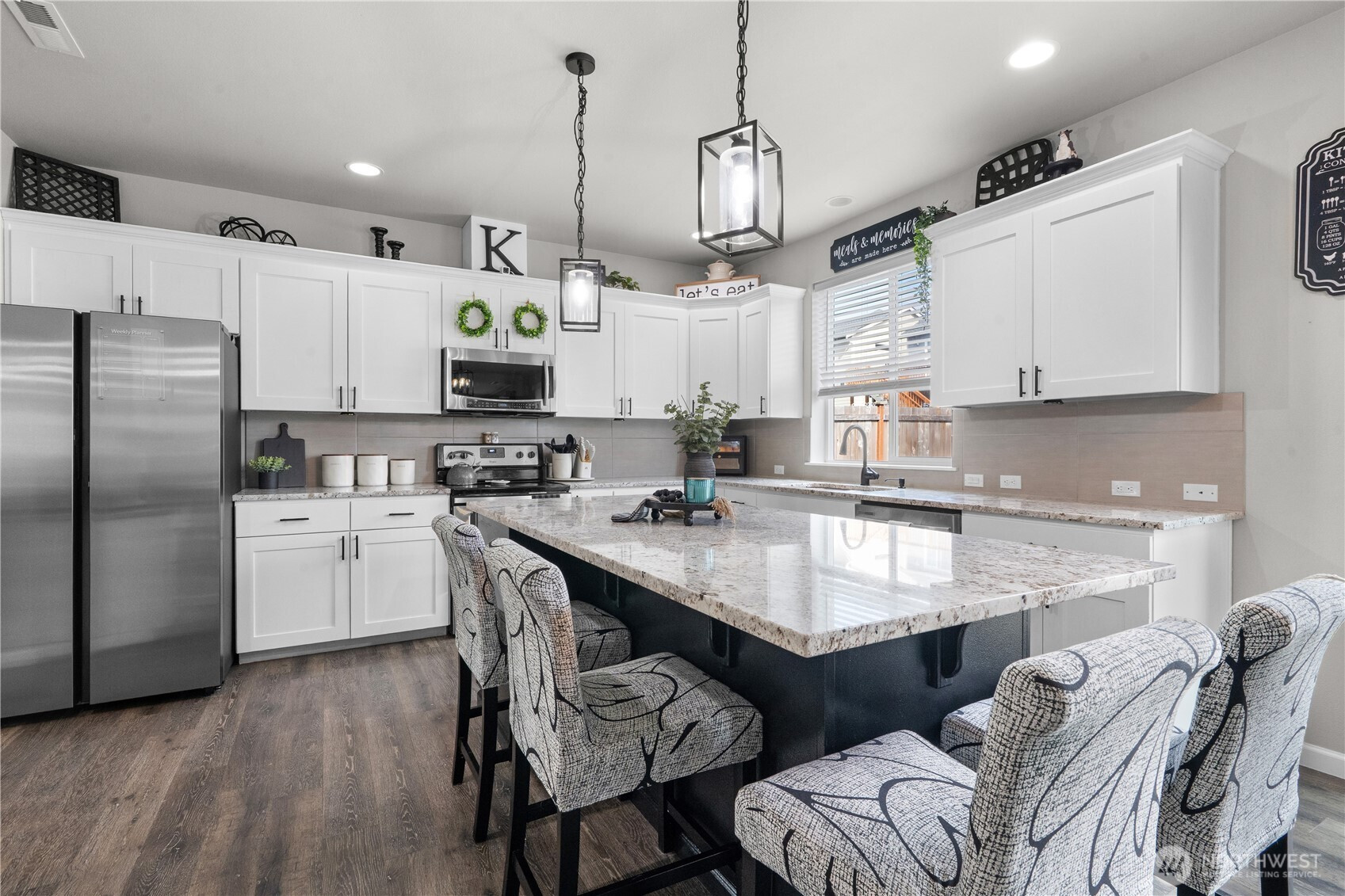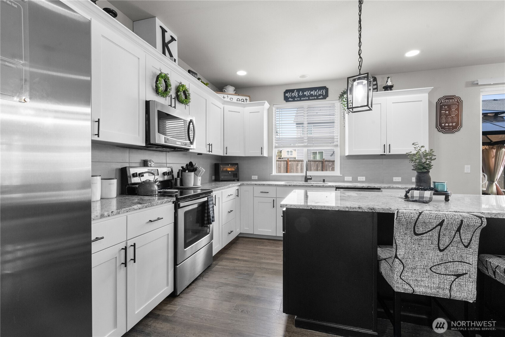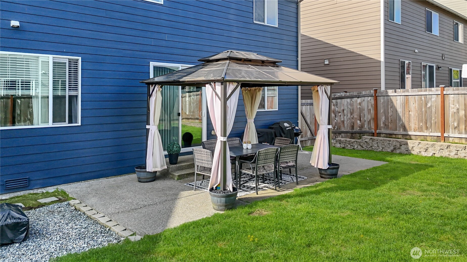 Welcome to Cherry Meadows - Where Everyday Living Feels Elevated. Soaring vaulted ceilings & a grand entry set the tone for this beautifully appointed 4-bedroom, 2.5 bathroom + Bonus room home spanning 2,603 square feet of thoughtfully designed living space.The heart of the home is a stunning chef's kitchen, flooded with natural light and finished with crisp white granite countertops, an oversized island, stainless steel appliances, and a convenient built-in desk area - perfect for working from home or keeping organized. The adjacent formal dining room with elegant tray ceiling detail flows seamlessly into an open great room and living room, all grounded by brand-new luxury laminate flooring that's as durable as it is beautiful. Upstairs, retreat to a generous primary suite complete with a 5-piece ensuite, a soaker tub, and a walk-in closet. An oversized bonus room offers endless flexibility - media room, playroom, home gym - you decide. A newer AC unit keeps every season comfortable.Step outside to an expanded back patio covered with by a charming gazebo made for summer entertaining, enclosed by full fencing for privacy and peace of mind. Make an appointment to view today!