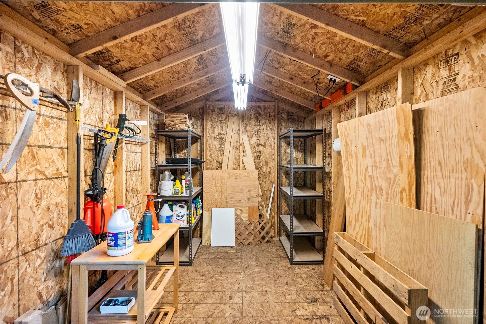 For summertime or all the time, this woodsy getaway offers the appeal of vacation-style, rural living w/ easy access to city conveniences! Offering a rare, premium, oversized unit w/ one HOA fee, 67 Eagle has a cozy cabin w/ relaxing porch & pole barn RV cover! No carpet! Recent vinyl plank floors. Lots of windows. Lush foliage. Open concept floor plan w/ living/kitchen/dining combo. Bath w/ tub. Built-in desk. TWO SHEDS! Just steps away from the indoor/outdoor pool & gym! An amazing resort community w/ a wide variety of amenities including stocked, private lake, club house, pool, hot tub, gym, pickle ball courts, hiking trails, Rainier view & more… Bring your toys! Kayaks, paddle boards, fishing poles, golf carts, electric bikes welcome.