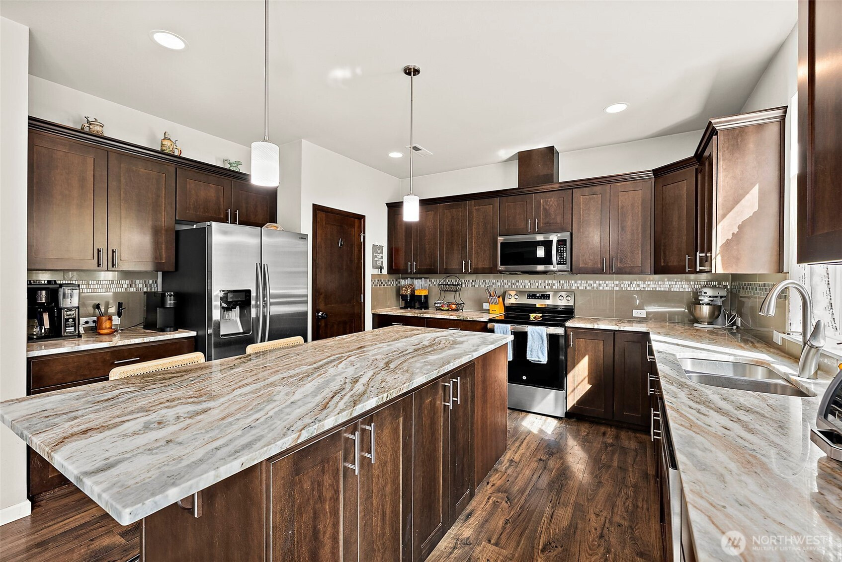 Beautifully maintained large Cherry Meadows home offering the perfect blend of space, comfort, and convenience. A grand entry with vaulted ceilings welcomes you into an inviting open-concept design, ideal for everyday living and entertaining. The spacious kitchen features granite countertops, rich cabinetry, and a large walk-in pantry. Main floor office provides flexibility for remote work, hobbies, or play. Upstairs, you’ll find four generously sized bedrooms, including a spacious primary suite with a luxurious 5-piece bath, double sinks, soaking tub, water closet, and large walk-in closet. Dishwasher and stove new in 2025, new HVAC motor in 2026, new living room carpet in 2025. Located in a highly desirable, walkable neighborhood with access to a private community park just moments away. Conveniently situated near the Yelm bypass for an easy commute to JBLM while avoiding in-town traffic.