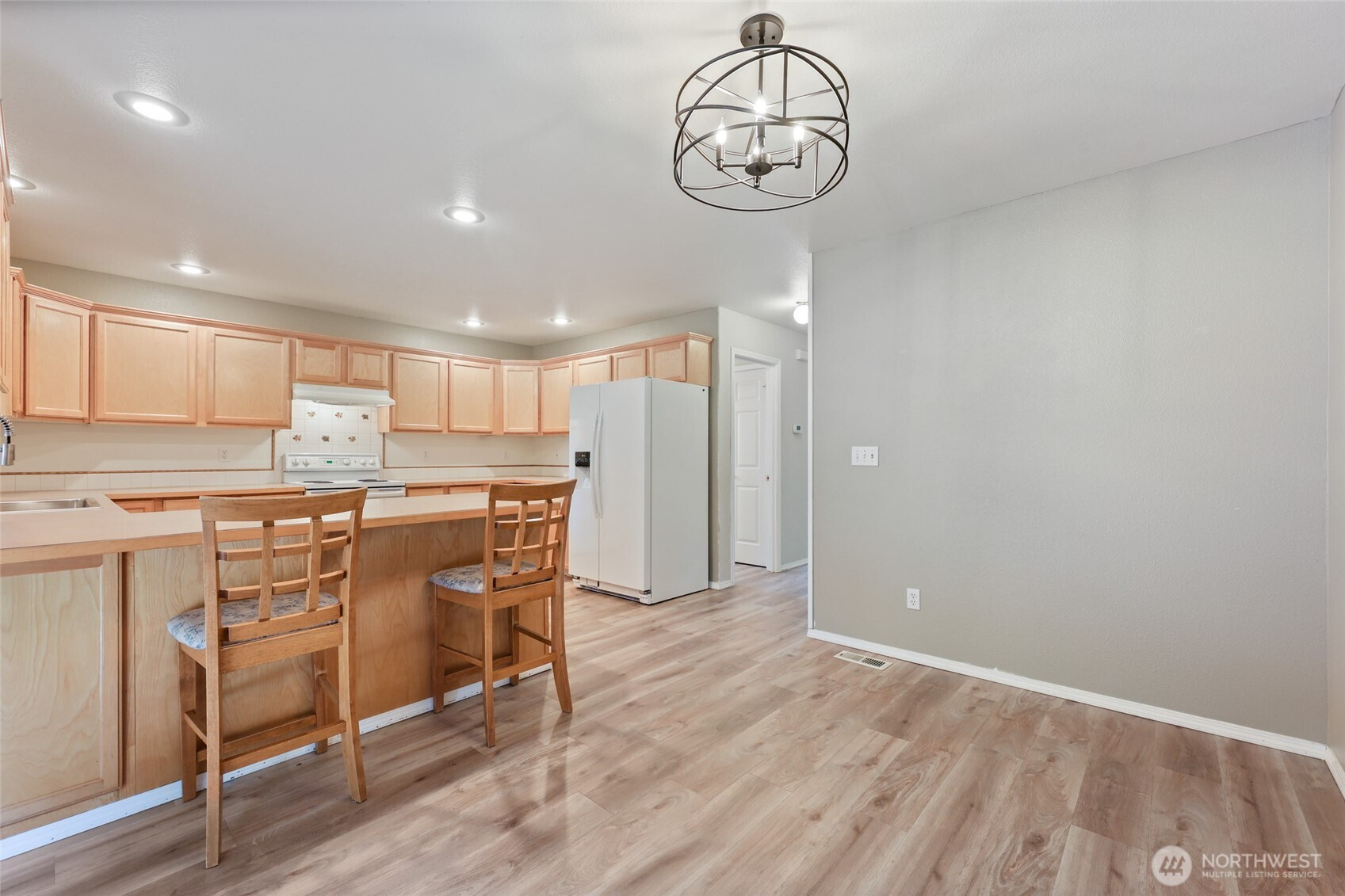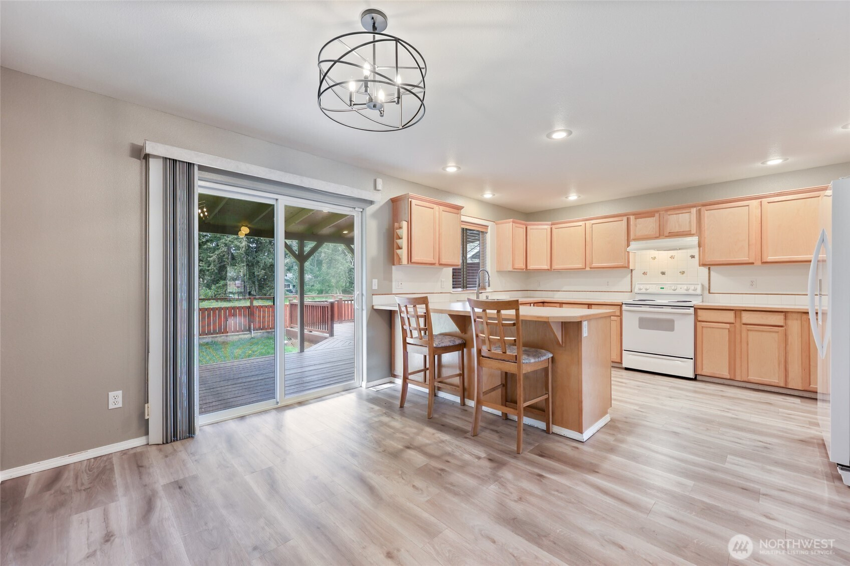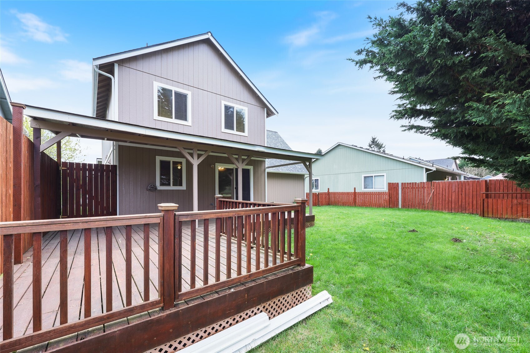 What a Gem! Come enjoy this well cared for home with "Rustic" back yard and huge deck. Close to everything Yelm has to offer, yet peaceful, quiet, and just out of the hustle! Plenty of parking in this location. Recent upgrades include New Roof - exterior paint all around, hard floors on the main level- Recent Hot water tank - Recent Refrigerator. All appliances stay with this home. Vaulted ceilings on the upper level open up the primary and large bedroom. Very functional kitchen with eating space all opened up to the sliding door out into the fully fenced rear yard and partially covered deck for year round entertaining. GREAT neighborhood for quite walks or enjoy the evenings year round sitting on the deck! This home is for YOU! This location is excellent with easy access to all that Yelm has to offer. Easy access to JBLM - Highway routes to Tacoma or Olympia. Bring your imagination and come visit your new abode. Thank you. Assumable VA $92,000.00 @ 3.875%