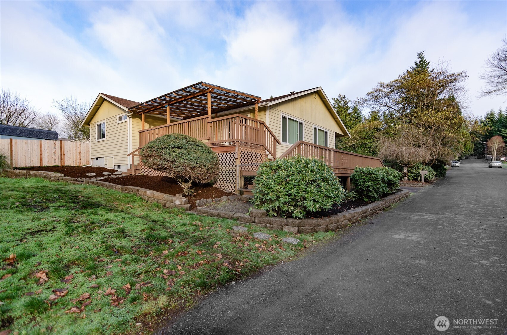 Inviting single-level 3-bed, 2-bath home in Olympia’s desirable Eastside neighborhood. This well-maintained residence offers an open living, dining, and kitchen layout filled with natural light from skylights, vaulted ceilings, and expansive windows. Enjoy extensive decking for outdoor entertaining, including a covered area off the dining room. Situated on a corner lot with mature landscaping and a raised garden bed. The primary suite features a full bath, complemented by two additional bedrooms and a second full bath. A spacious utility room with ample storage and an oversized two-car garage complete the home. Conveniently close to schools, shopping, downtown, and I-5.