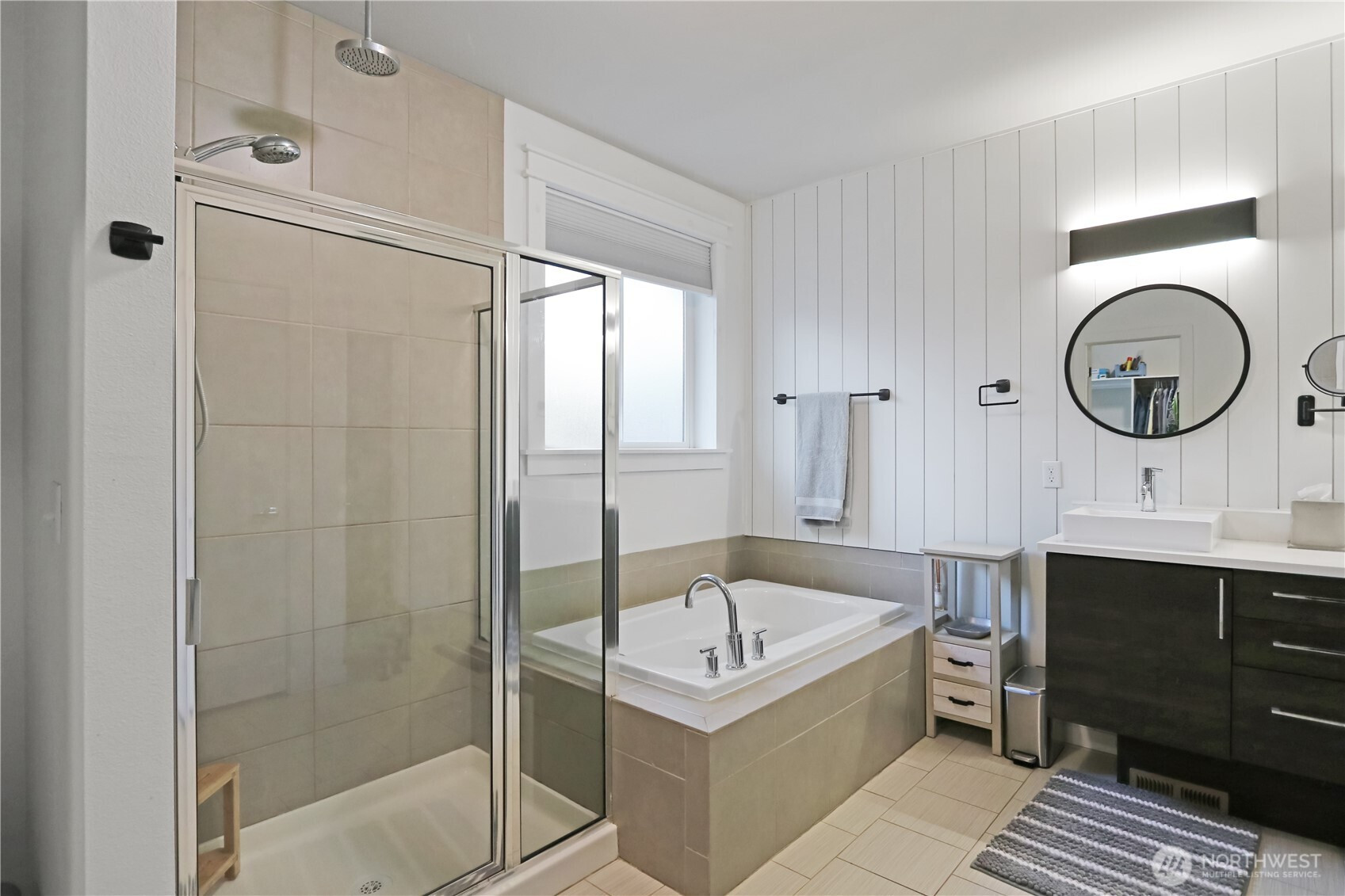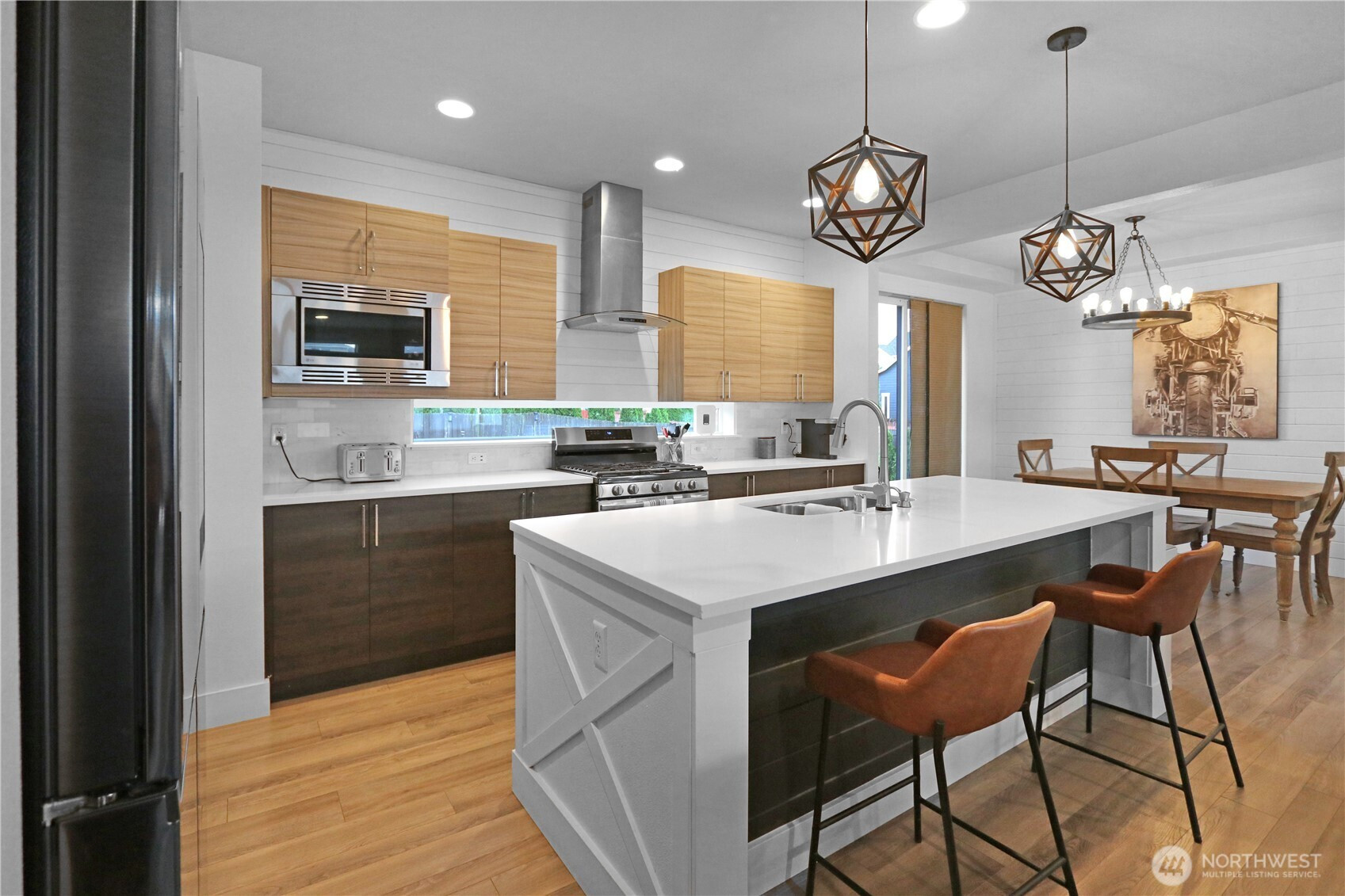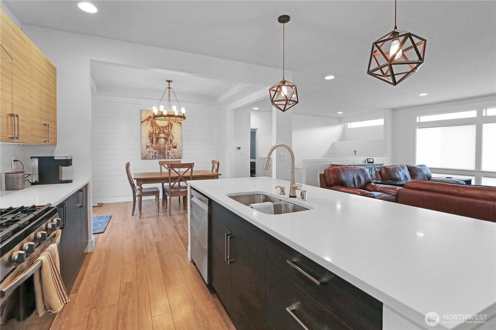 Modern 4-bed home in Tumwater Hill with luxury finishes and a large, low-maintenance backyard. This 2,679 sq ft home features hardwood floors throughout, a high-end kitchen, and spacious open living areas. The fully fenced yard includes artificial turf and raised garden beds—perfect for entertaining. The primary suite offers a five-piece bath with soaking tub and dual vanities. Built in 2015 with a heat pump and 2-car garage. Convenient to I-5 and downtown Olympia, this home delivers comfort, space, and style in a prime location.