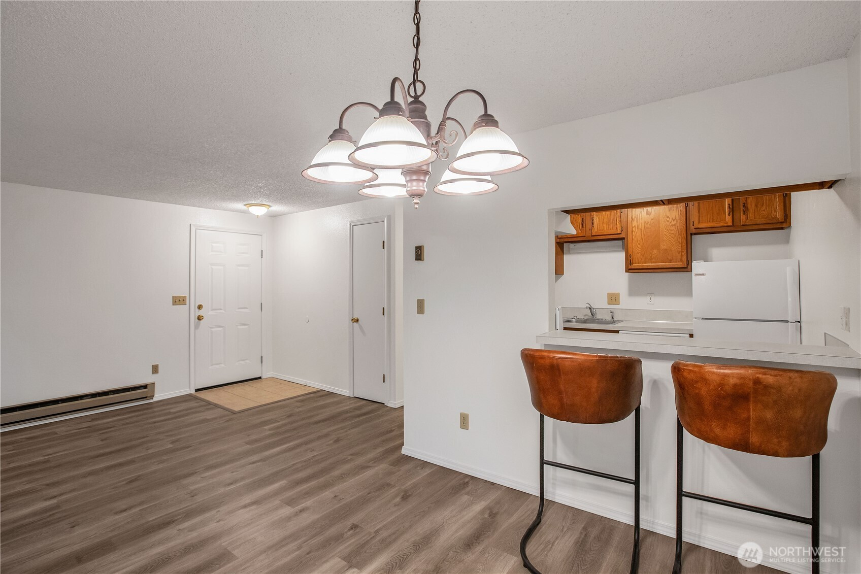 Cute first floor end unit condo refreshed and ready for you to make it your own. All freshly painted with new carpets in bedrooms, and newer windows and clean as a whistle! Handy kitchen with eat in bar, separate dining room. Slider opens to a private back deck area with room for entertaining and even has covered parking! Pets are allowed!! Location is close to I-5, shopping, dining, and everything you need. Don't miss out on this one.