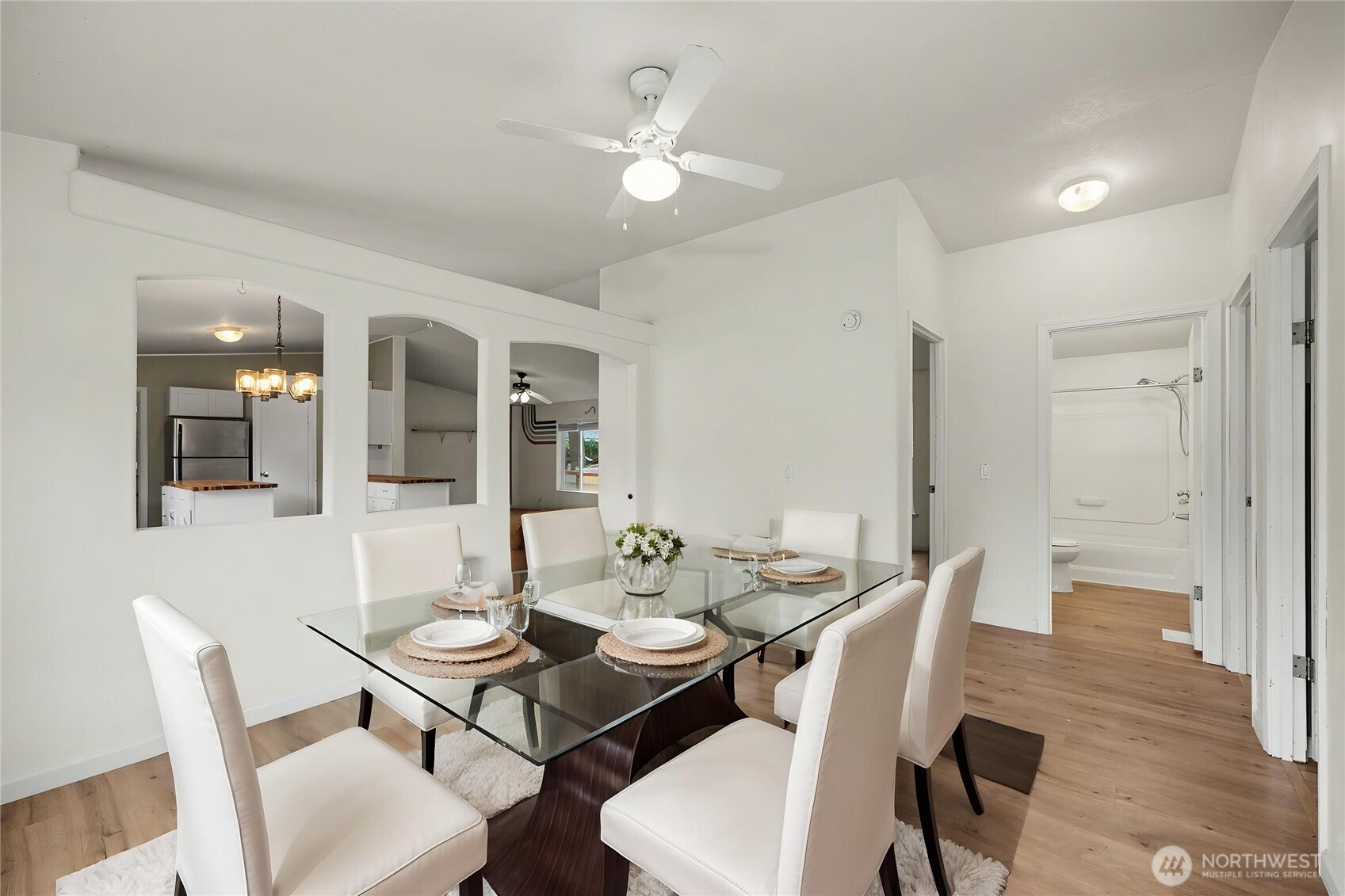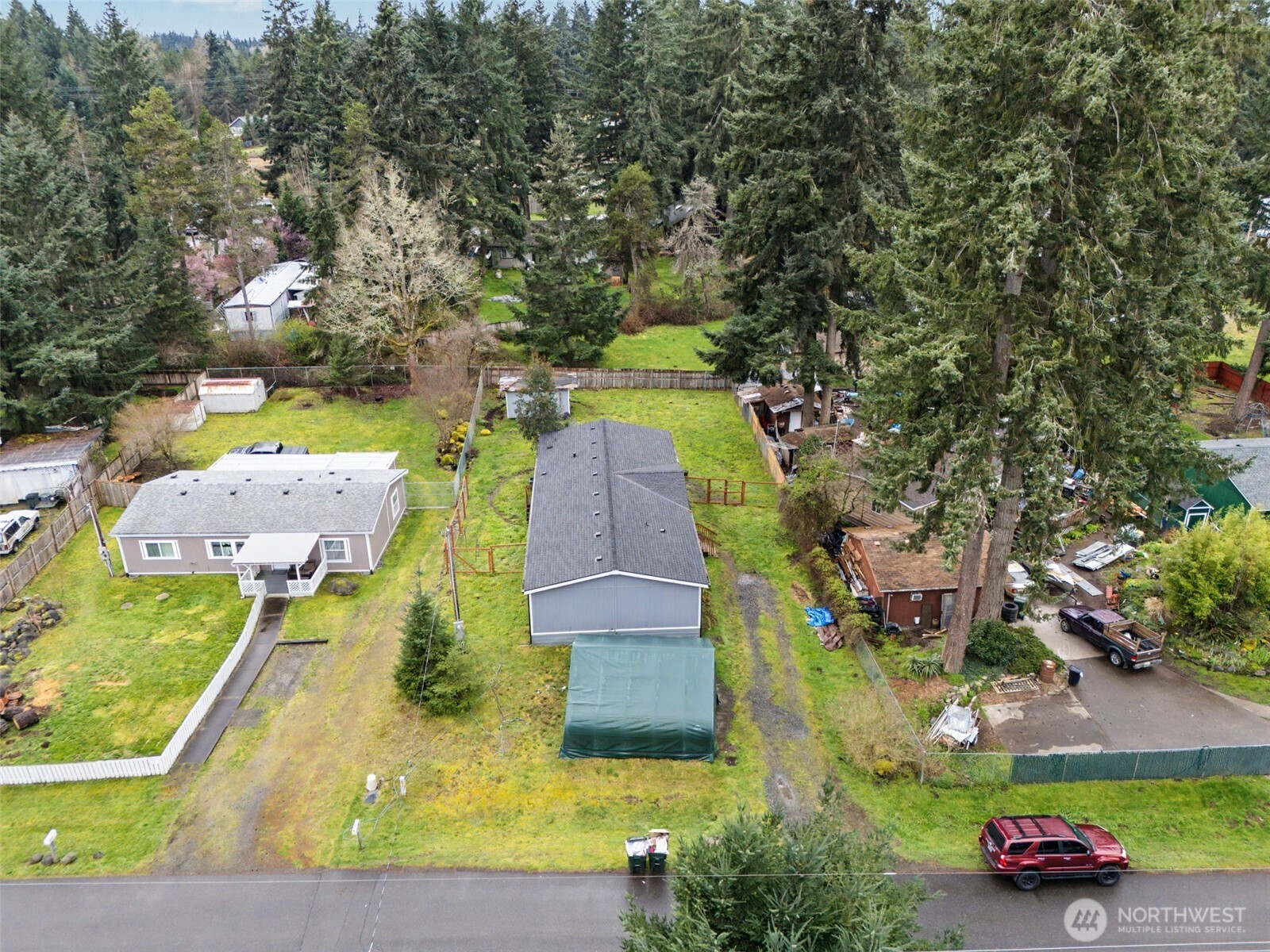 Welcome to this beautifully updated double-wide manufactured home built in 2000, situated on a spacious fully fenced 10,725 sq ft lot. This home offers comfort, functionality, and value with a newer roof and HVAC system, including AC and heat pump, installed in 2024. Inside, you’ll find stylish updates throughout, including newer flooring, fixtures, and remodeled touches that give the home a fresh, modern feel. The open-concept layout creates a bright and inviting living space, featuring vaulted ceilings, a central island, and a breakfast bar that make the kitchen and main living areas perfect for everyday living and entertaining. The primary suite is thoughtfully separated from the other bedrooms, offering added privacy and a more comfortable retreat.Enjoy the benefits of a great community with amenities such as a community pool, private river park access, and more. Low taxes add to the affordability, while the location offers convenience just minutes from downtown Yelm, where you’ll find shopping, dining, and everyday necessities. Commuters will also appreciate being within about 30 minutes of JBLM.