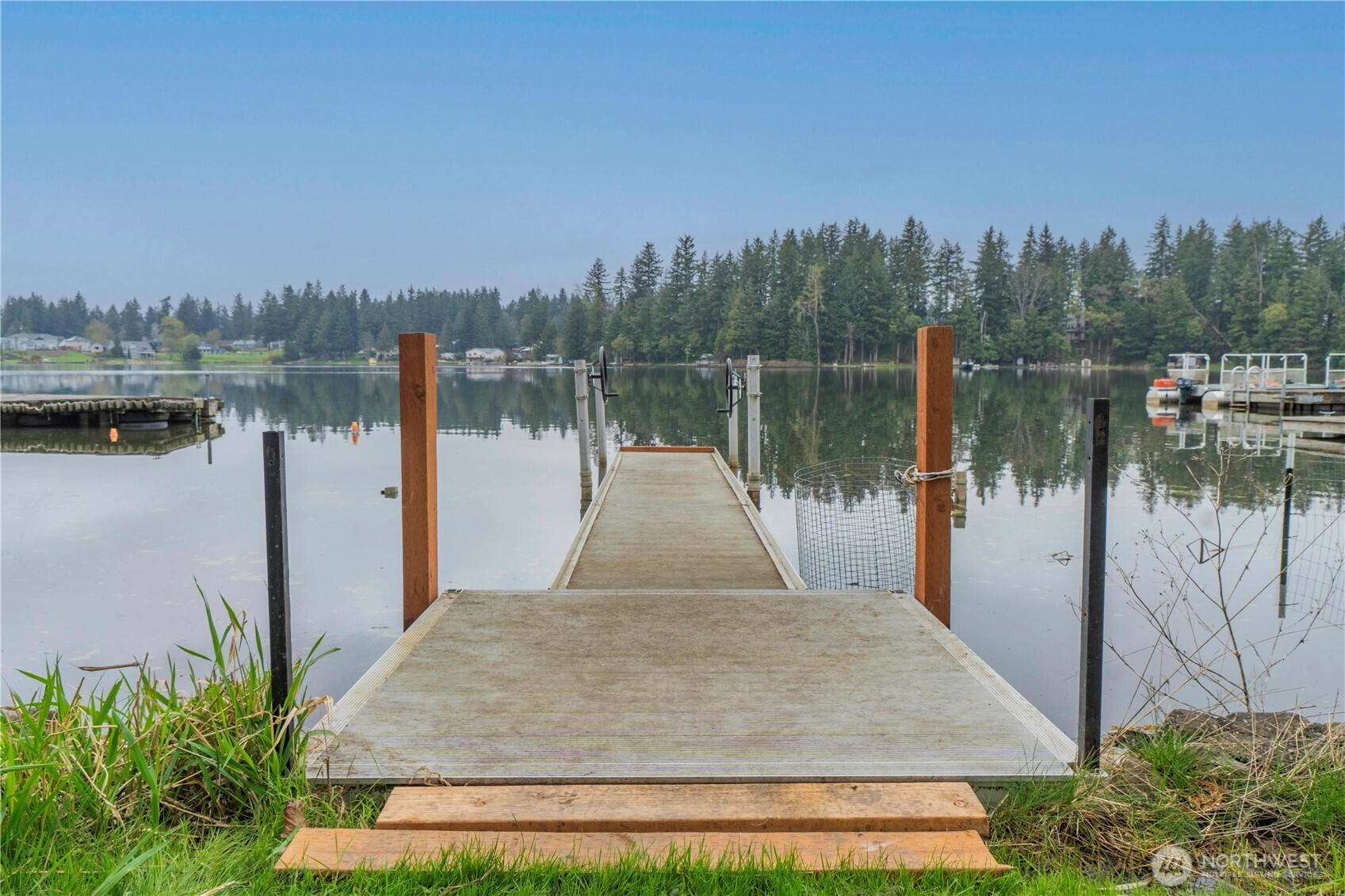 Enjoy the ultimate lake lifestyle in this Lake Lawrence cabin featuring low-bank waterfront access and incredible outdoor amenities. Property includes two private docks, one equipped with double jet ski lifts and a second dock with an aqua-style boat lift. Perfect for enjoying fishing and power boating on the lake. Right down street from the public boat launch. Relax and take in beautiful lake views with ideal afternoon sun from the deck, creating the perfect setting for entertaining or unwinding. Inside, the cozy cabin offers a wood stove for heat with an unofficial bedroom (no closet). Ample off-street parking accommodates vehicles, boats, and trailers with ease. A large storage shed provides plenty of room for all your lake toys. The property is partially fenced around the cabin and gated at the driveway for added privacy and security. A rare opportunity to own a turnkey lake getaway with all the features you need to enjoy waterfront living!