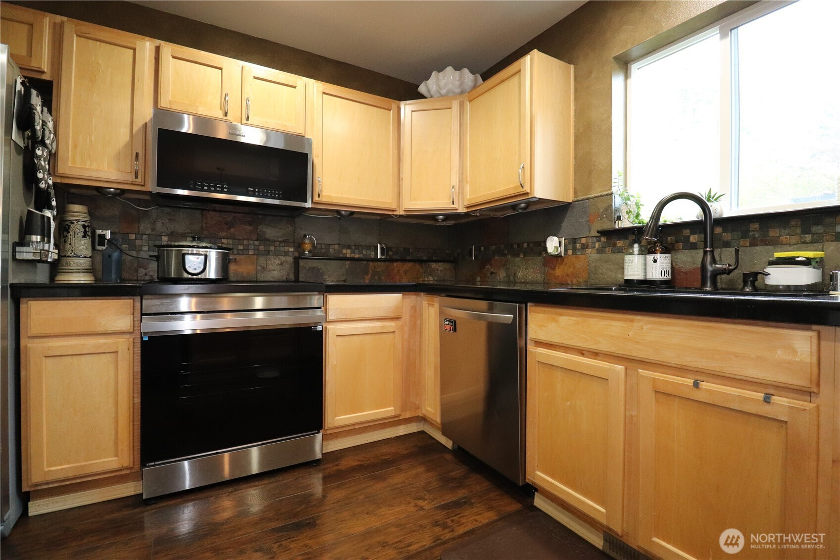 Welcome home to this beautifully maintained 3BD/2.5BA two-story home in Rochester on a level 1-acre corner lot — not in a flood zone! Enjoy an easy commute to Olympia and I-5 while living in a private, spacious setting. The kitchen features granite counter tops and stainless steel appliances with a premium induction range with built-in safety technology—cool to the touch, faster and more precise cooking, and easy-clean glass-top convenience without scorch marks. The home offers two fireplaces (propane and wood) and a welcoming living room with a slider that opens to the backyard for seamless indoor/outdoor living. The expansive and usable one acre lot is ideal for entertaining and lifestyle living, with space for RV parking, gatherings around the firepit, relaxing in the hot tub, and enjoying the privacy of fencing. Parking is abundant with room for 2 covered vehicles and up to 7 additional uncovered spaces. Upstairs, the spacious primary suite includes a walk-in closet and a large private bath. Off the second bedroom is a versatile office with pocket-door closure, study, or gaming room, complete with a built-in mini fridge. Additional highlights include a dedicated laundry room with included GE Profile ventless 2-in-1 washer/dryer. Has a two-car garage, and a rare combination of space, safety, flexibility, and commuter access — making this a true lifestyle property.