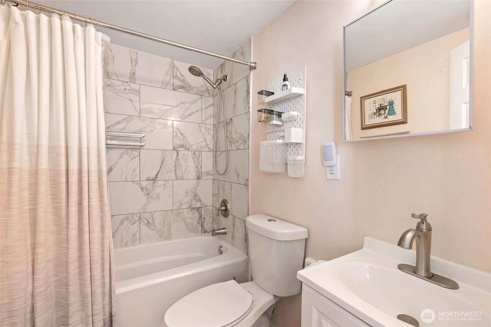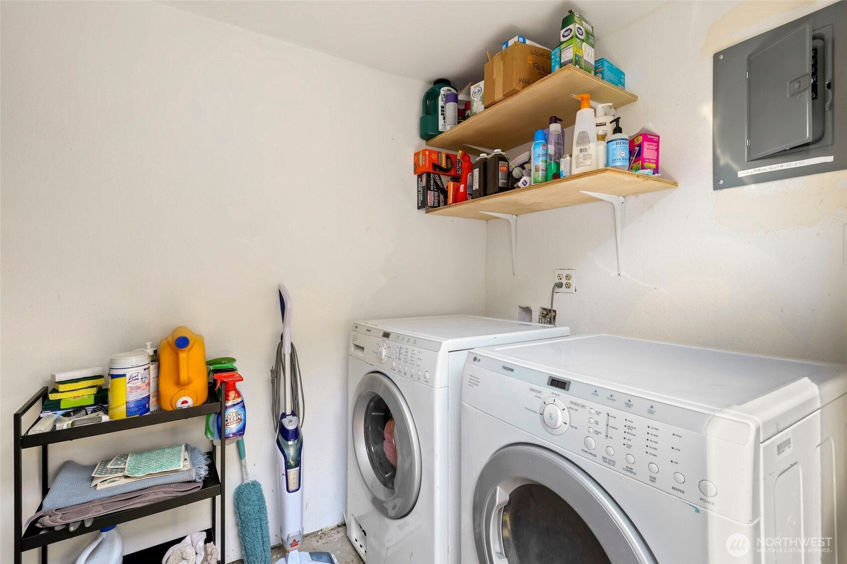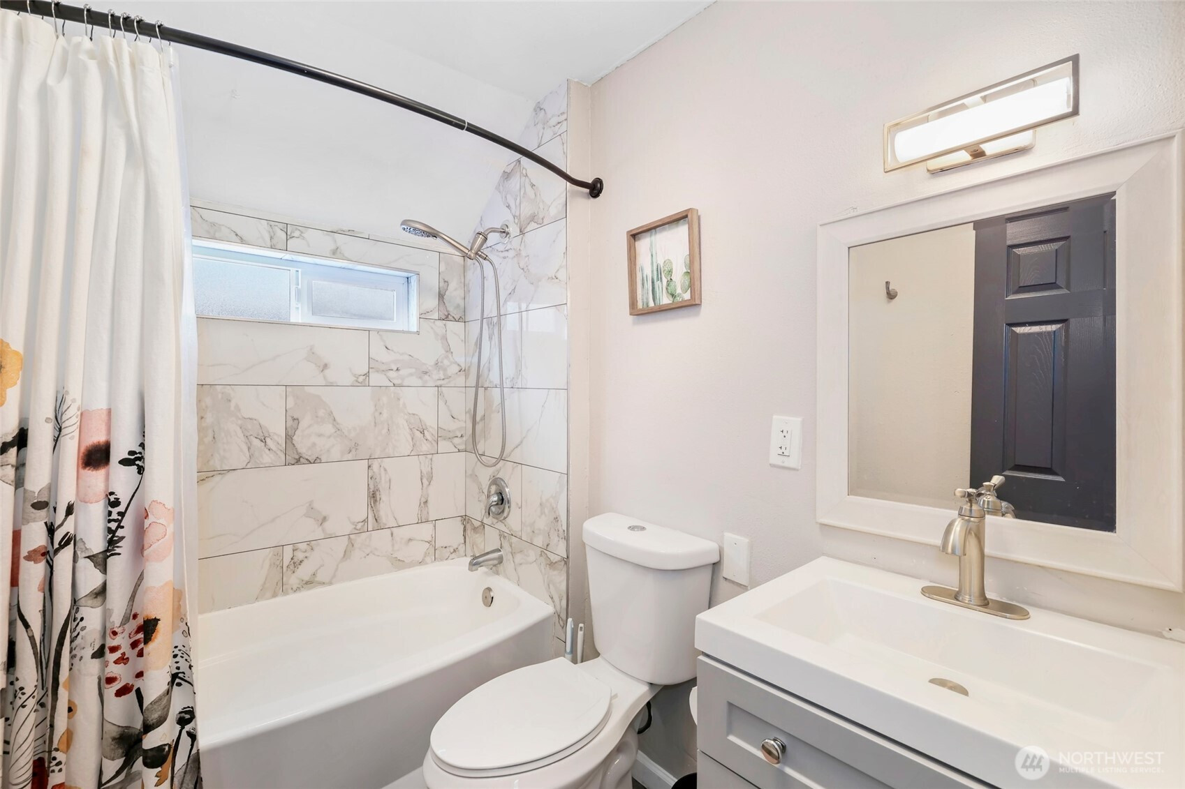 Amazing investment opportunity with two houses on one lot in the popular North East neighborhood. Both homes were completely remodeled in 2021. Main house features a cozy living room with electric fireplace, kitchen with eating bar, 2 bedrooms, and full bath. Extra finished storage space in attic. 2nd house is a studio with a full bath and kitchenette with a separate gated driveway off Ethridge. Shared laundry room is attached to smaller home and would be a great space to add coin-op laundry units for tenants or AirBnB guests. Blocks from San Francisco Bakery, and just minutes to downtown Oly or beautiful Squaxin Park with beach access, picnic area, playground, and nature trails.