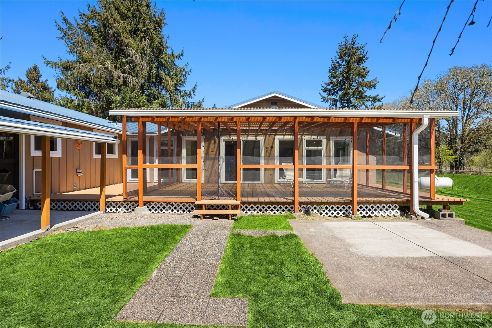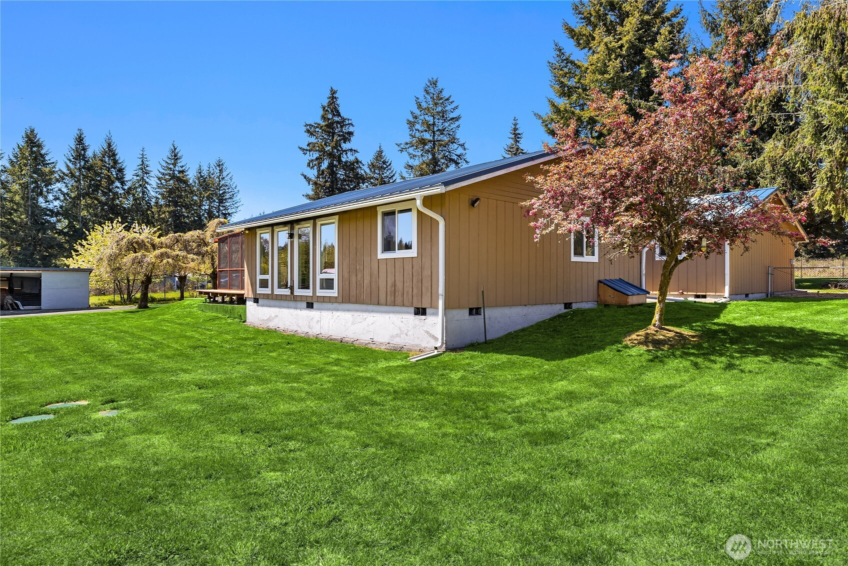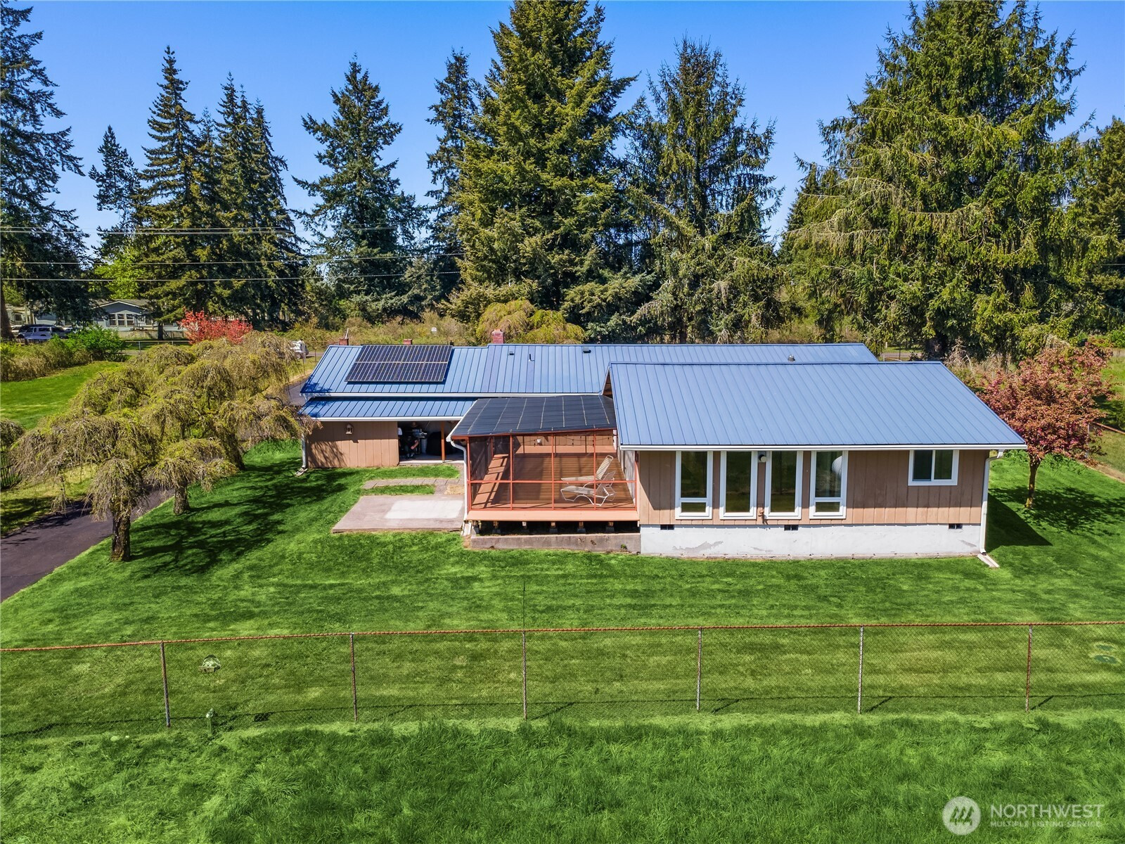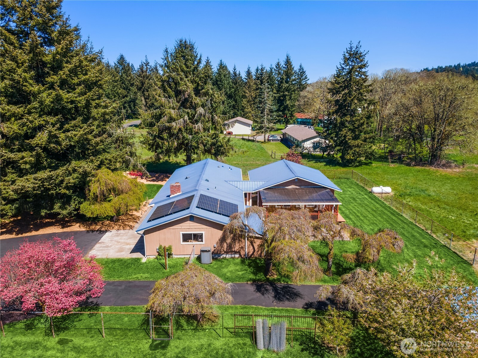 Beautifully remodeled rambler on nearly 5 acres in Tenino. This spacious 4 bedroom home offers 2,538 sq ft. with a modern updated kitchen featuring quartz countertops, stainless steel appliances, laminate flooring and new carpet in dining room and bedrooms. Cozy living room with fireplace and a spacious family room with a propane stove and lots of windows creating a warm and welcoming feeling. Numerous updates throughout including an updated electrical panel provide added peace of mind. Outside enjoy a large covered deck, fenced acreage, shed, metal roof with solar panels and a metal shop building with 2 stalls.