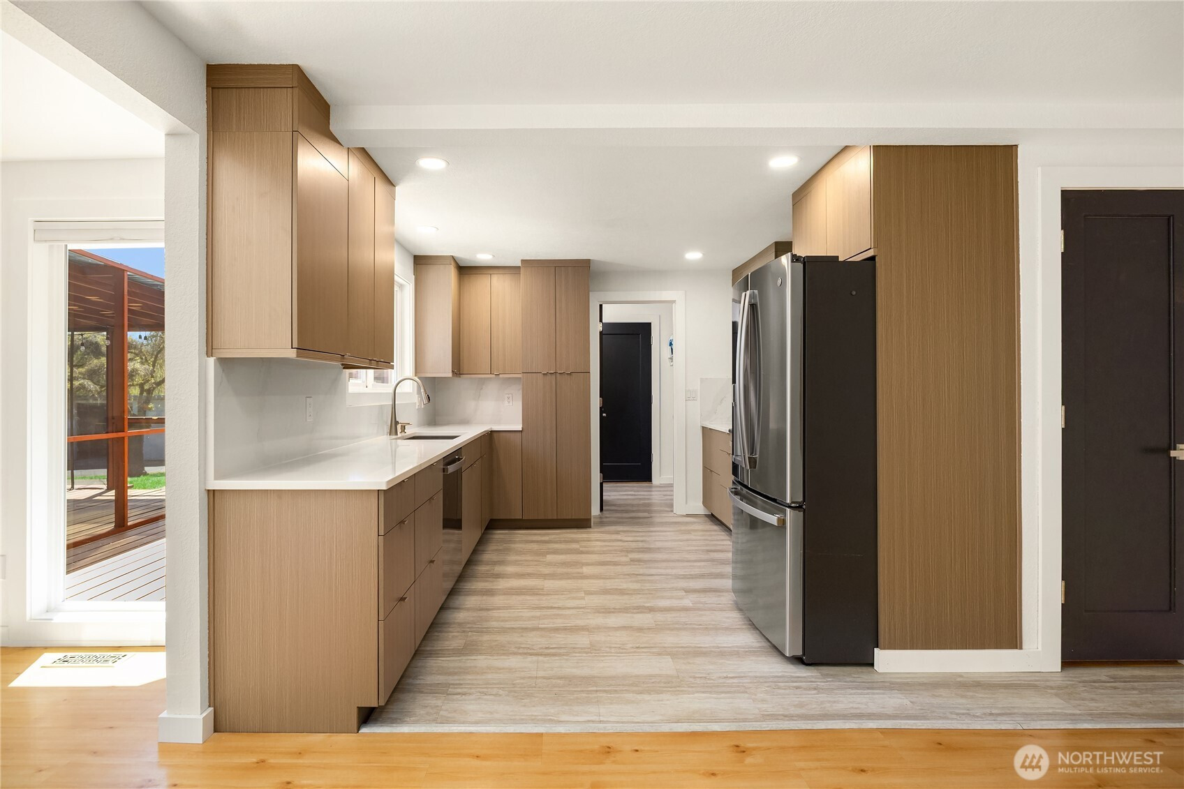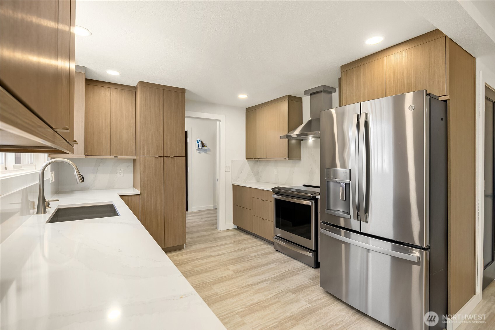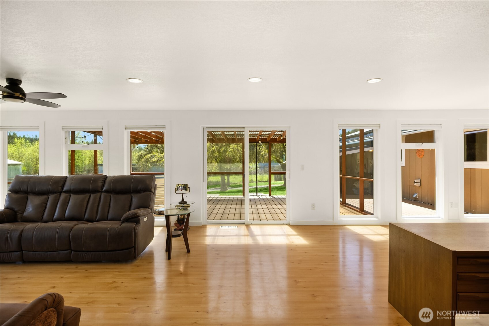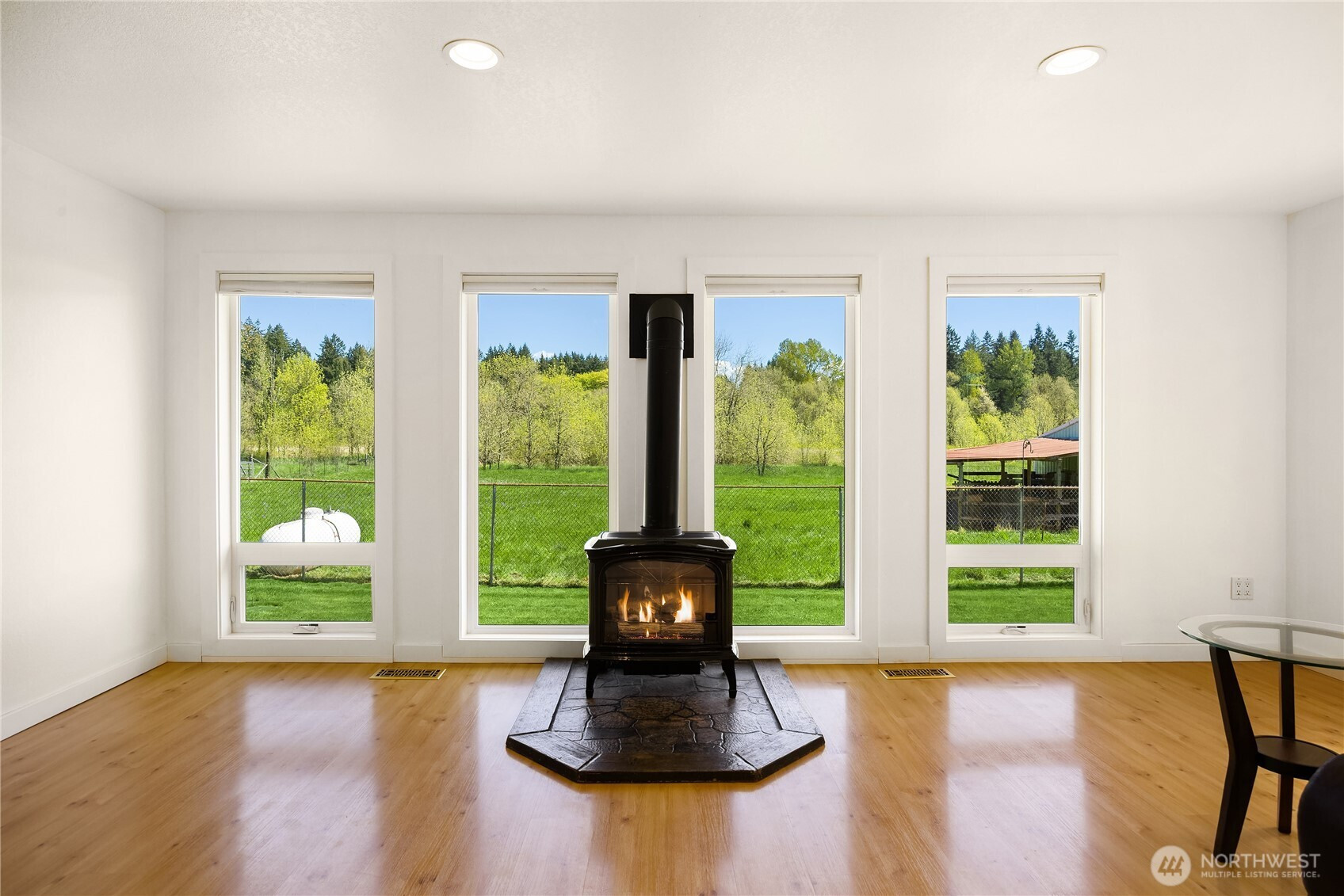 Beautifully remodeled rambler on nearly 5 acres in Tenino. This spacious 4 bedroom home offers 2,538 sq ft. with a modern updated kitchen featuring quartz countertops, stainless steel appliances, laminate flooring and new carpet in dining room and bedrooms. Cozy living room with fireplace and a spacious family room with a propane stove and lots of windows creating a warm and welcoming feeling. Numerous updates throughout including an updated electrical panel provide added peace of mind. Outside enjoy a large covered deck, fenced acreage, shed, metal roof with solar panels and a metal shop building with 2 stalls.