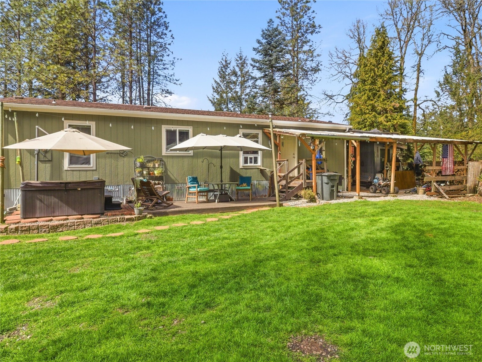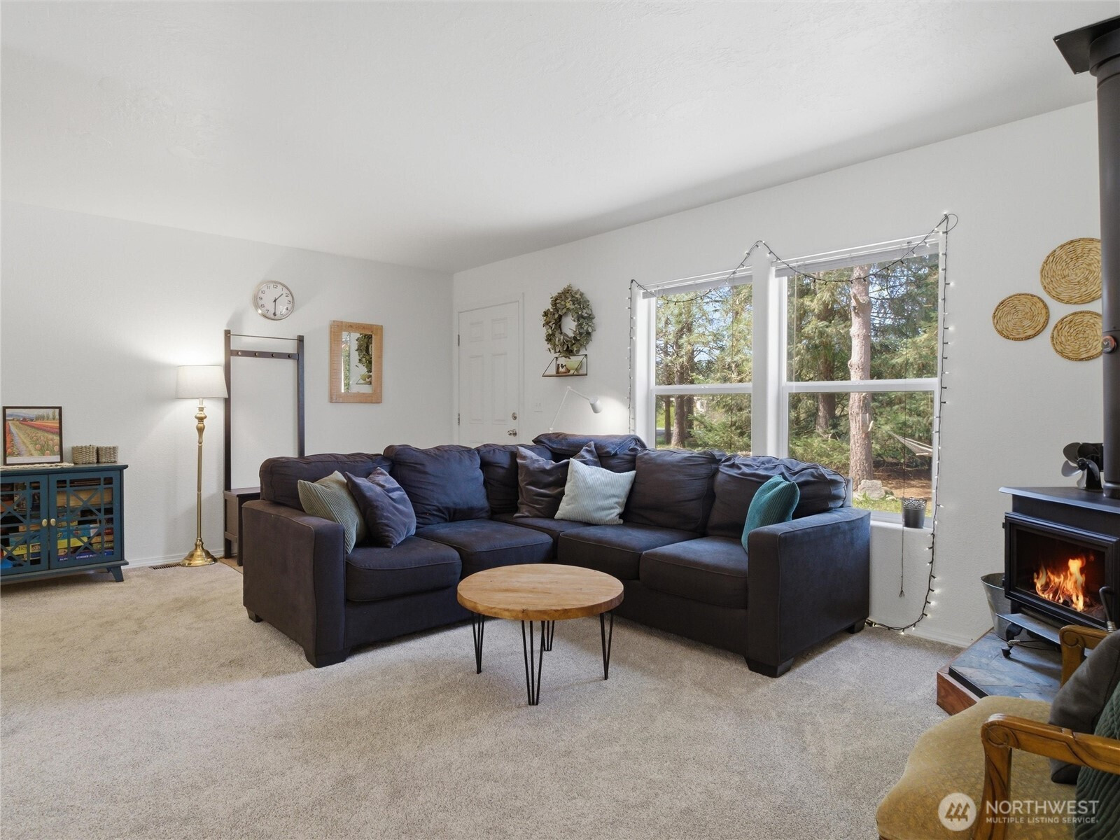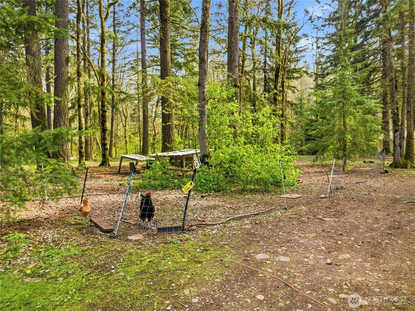 Tucked away on 6.4 private, wooded acres, this inviting 3 bedroom, 2 bath home offers the perfect blend of comfort, charm and peaceful country living. Built in 2018, the 1295 sf open-concept layout creates a bright and welcoming atmosphere, ideal for both everyday living and entertaining. The cozy living room features a wood stove that efficiently heats the entire home, making winter months warm and inviting. Recent updates include new carpet and a beautifully remodeled primary bathroom in 2024. The spacious primary boasts a large 3/4 bath and walk in closet, offering a relaxing retreat at the end of the day. Outside the property truly shines. A paved circular driveway provides easy access and ample parking while the expansive acreage offers endless opportunities to explore and enjoy nature. Wander through the woods, tend to your garden and chickens, or follow the road leading to the back of the property. A firepit in a peaceful clearing sets the stage for quiet evenings under the stars. This serene oasis offers privacy and tranquility, yet remains conveniently located minutes from I-5 and downtown Tenino. Enjoy the charm of a welcoming community, including an annual neighborhood 4th of July parade. If you're looking for a secluded retreat with modern comforts and easy access to town, this property delivers the best of both worlds. Come tour your new home!