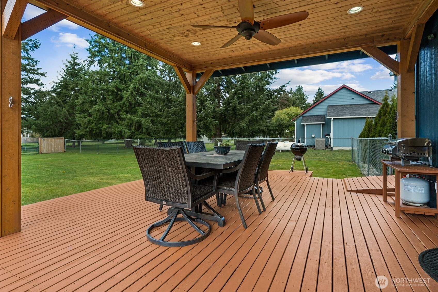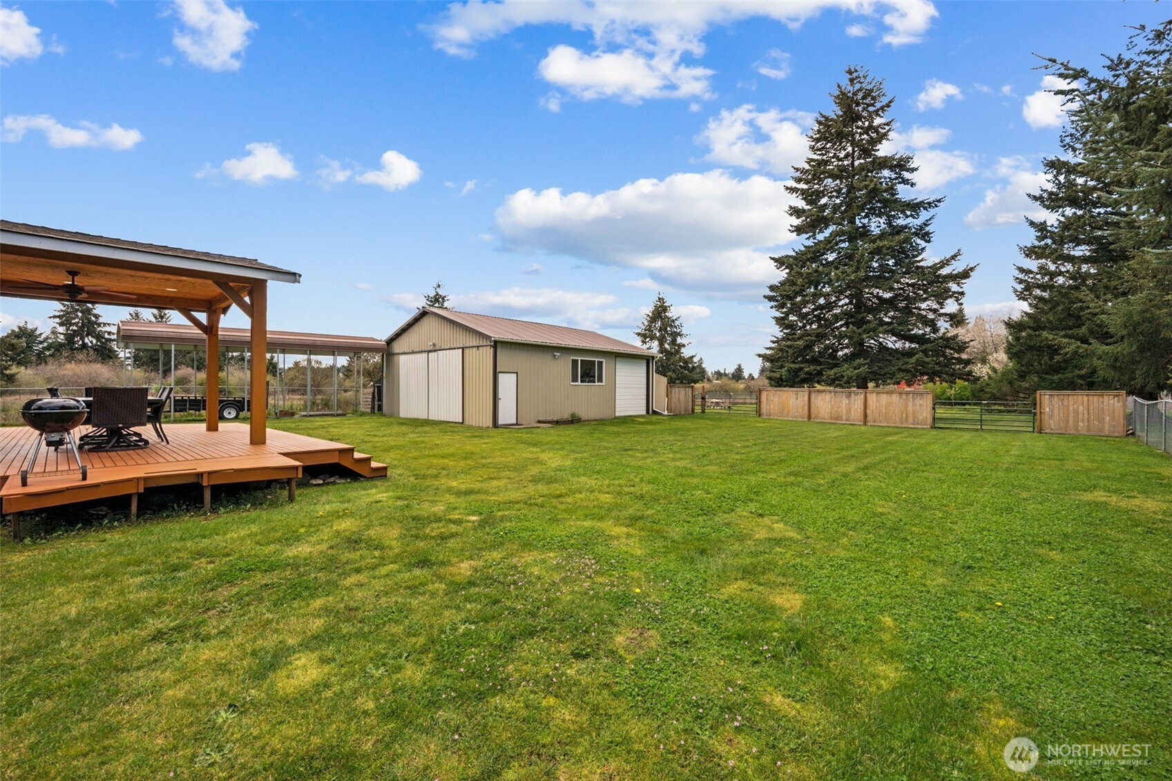 Welcome to this beautifully maintained property offering space, versatility, and true Pacific Northwest charm on over 1.4 acres! A long, freshly resurfaced driveway welcomes you home, setting the tone for the peaceful retreat that awaits. Step onto the inviting front porch, perfectly positioned to lead you around to the back patio, ideal for relaxing mornings or unwinding in the evenings while taking in the serene surroundings. The property truly shines with its impressive 30x36 insulated shop, offering endless possibilities for hobbies, workspace, or entertaining. A dedicated dog run sits conveniently alongside the shop, and the RV pole barn provides covered parking for all your toys and outdoor gear. Enjoy the outdoors in your fully cross-fenced yard featuring a cozy fire pit area and a covered patio perfect for hosting gatherings or enjoying quiet nights year-round. Generator ready! This property blends comfort, functionality, and lifestyle in a setting that truly feels like home.