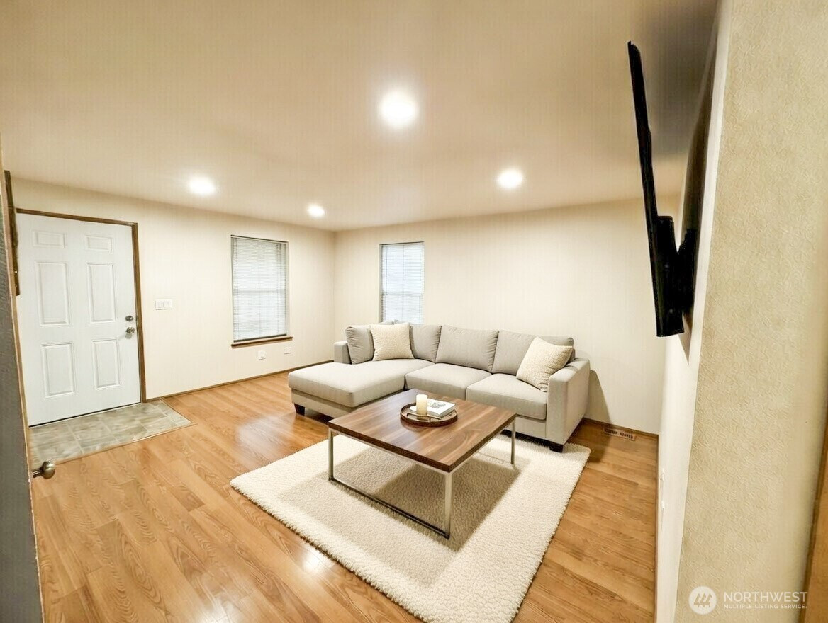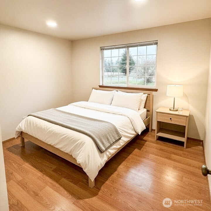 Charming 2-bed, 1-bath home on a spacious corner lot in Rochester! This bright, well-lit home features new can lighting throughout, a brand-new composite front deck, and a large new concrete back patio with composite steps off the slider—perfect for indoor-outdoor living. Enjoy added privacy from the dry retention pond, peaceful views of a horse pasture, and Mount Rainier views on clear days. Two-car garage wired for an electric car hookup, corner lot, and less than 5 minutes to I-5 for an easy commute. Move-in ready with a quiet, country feel!