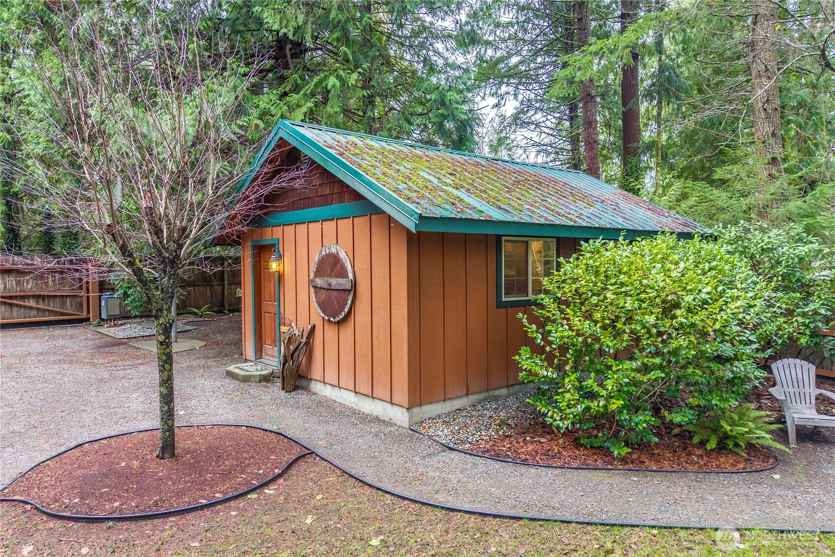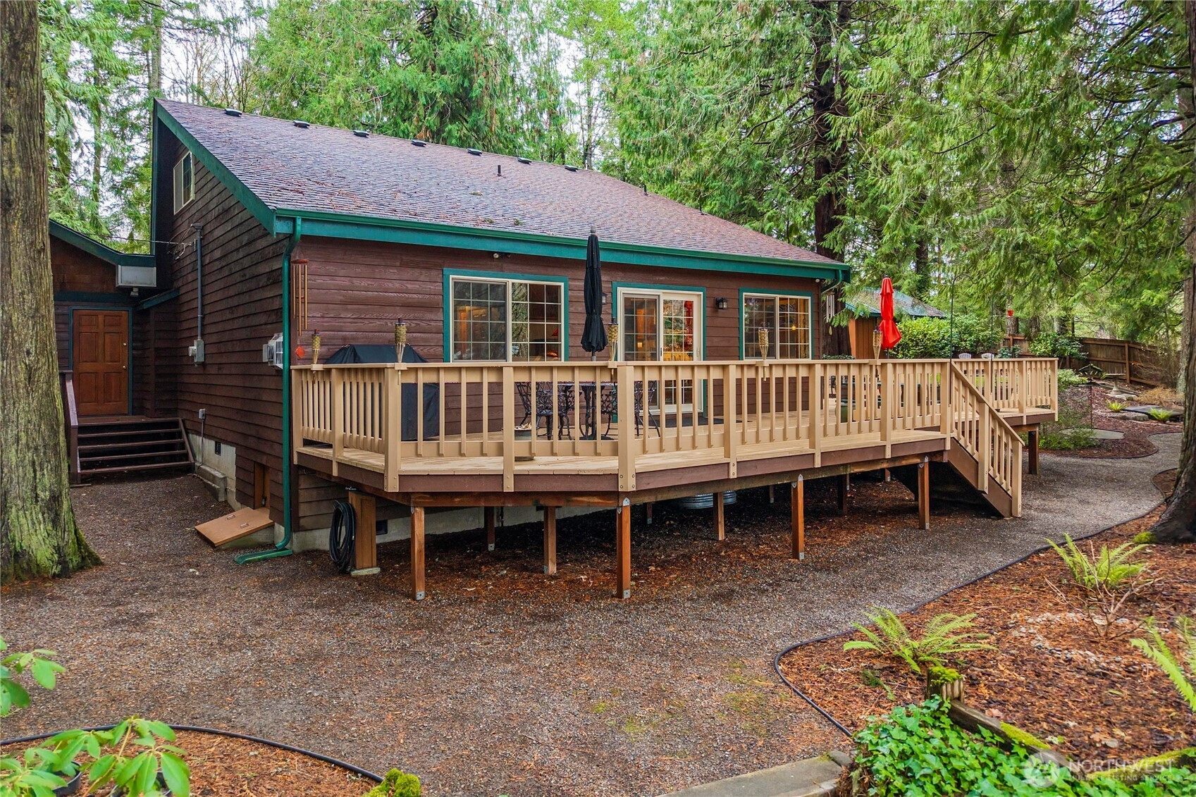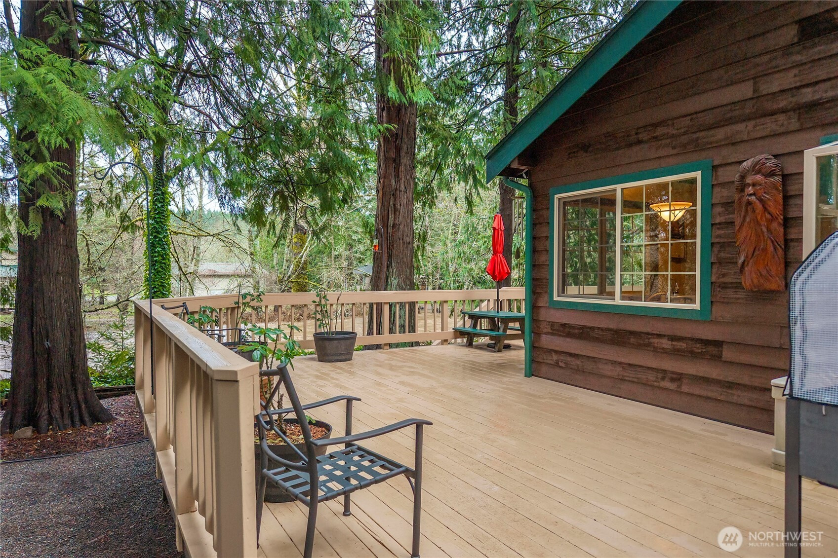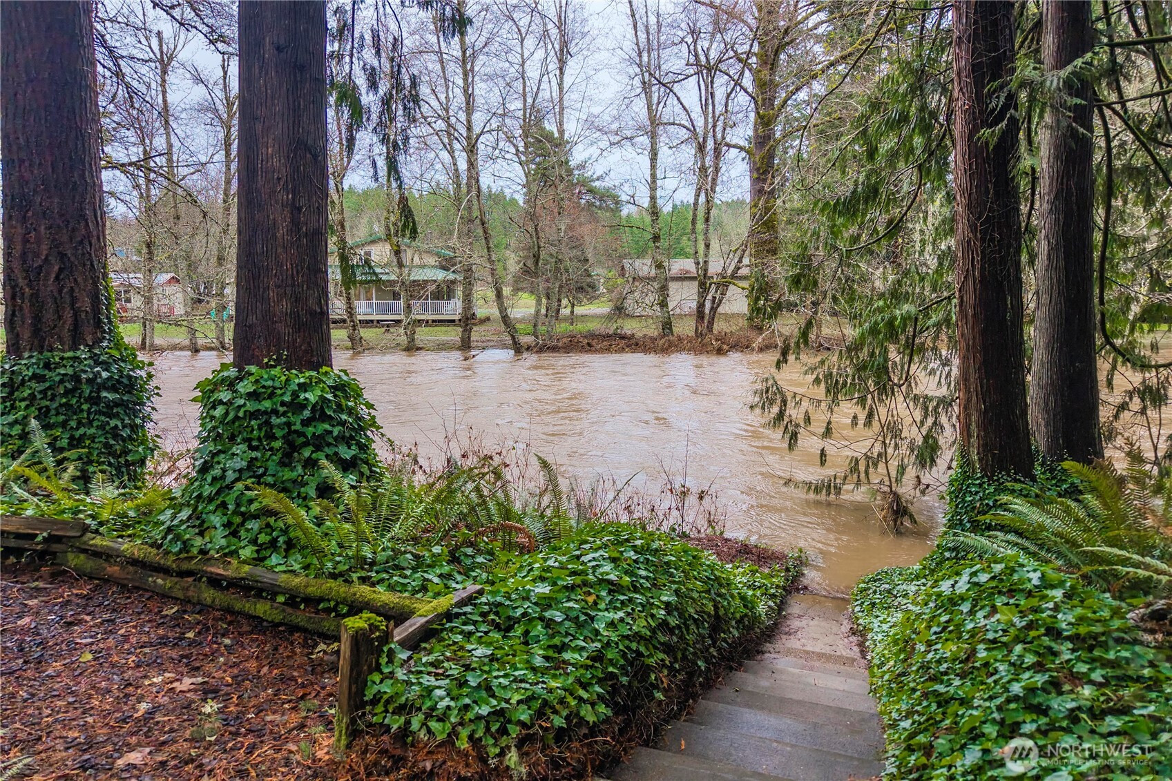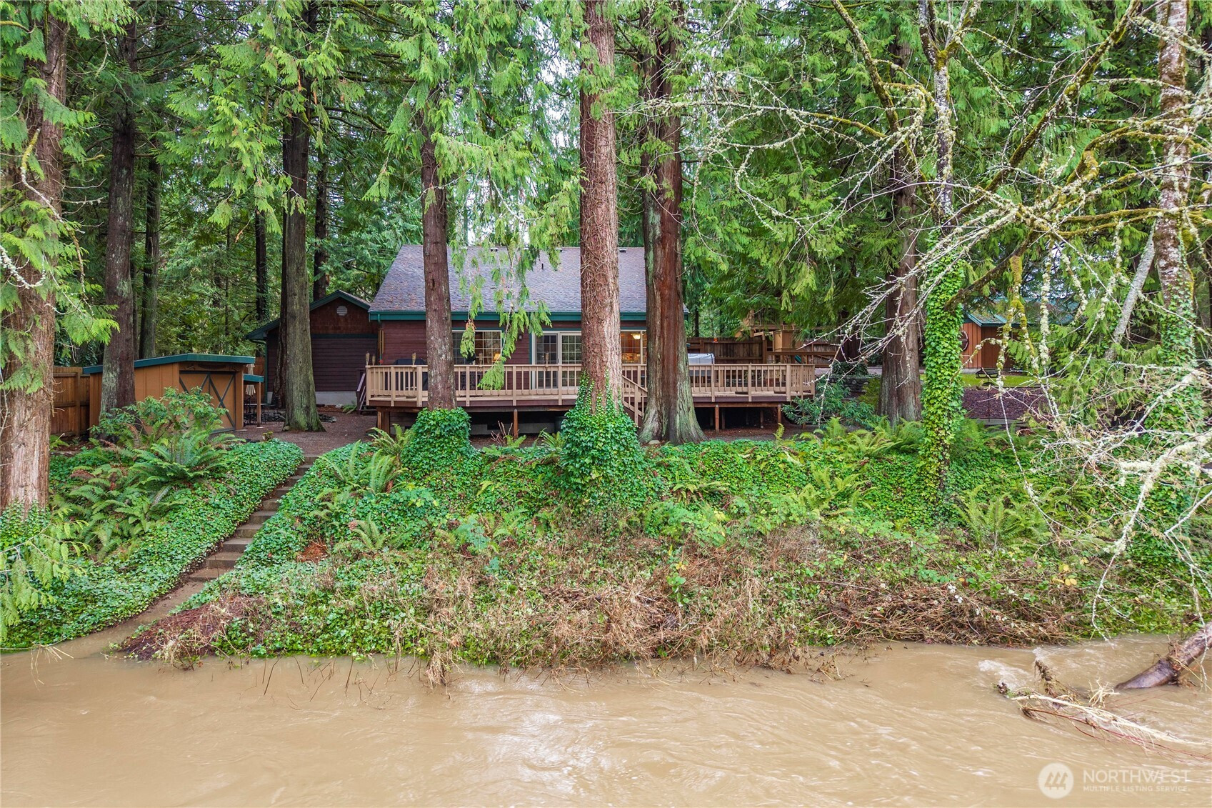 Escape to your own wooded riverfront haven on a rare double lot, set safely above the water table. This meticulously maintained 3Bed/2Bath home offers a warm cabin-style charm with inviting living spaces, a spacious kitchen, and rich wood details throughout. Step outside to your personal park like setting, a large wraparound deck, tailored-made fire pit, custom built playset all in a peaceful setting. An attached garage, detached shop, additional outbuildings, and fenced grounds complete this private outdoor retreat designed for relaxation and connection to nature. Make vacation like living, your full time home!