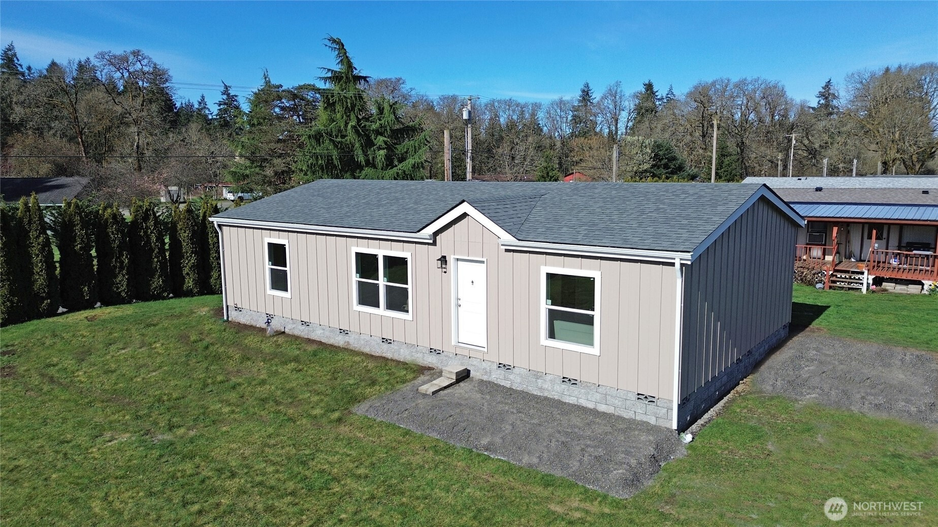 Brand New, fresh, clean and ready for move in by the middle of April. 3 Bdrm/2 bath home in an open country setting. This home is in a tiny little privately operated park off of Sargent Road near Scatter creek. Only 6 units total will ever be here. This is a 55 and older park. All nicely kept homes, all good tenants. Across the driveway from an open space farm area with views to Mt. Rainier. This lot also borders a huge lawn area dedicated to the water system. Lots of space for a garden or lawn games. Porches are under construction. Space rent is $750 and this includes water/sewer/garbage. Just a few minutes to I-5 access at Exit 88. Quick commute to Olympia. Less than 15 minutes to the gaming and restaurants of the Lucky Eagle Casino. If you want an economical country home in a very pleasant setting this might be worth a look.
