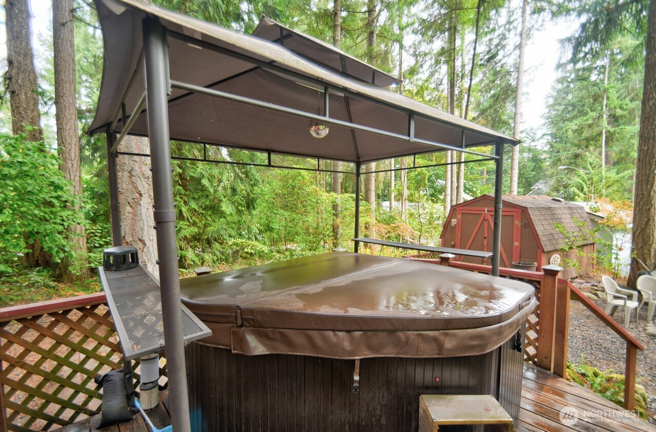 (503) 893-8874Live the vacation life in this charming Clearwood log home, uniquely situated on two private, park-like parcels! This 2 bed, 2 bath retreat wows with soaring vaulted ceilings, a cozy fireplace, and a loft opening to a covered balcony. Spend your evenings relaxing in the hot tub or your covered front porch. This home is an outdoor lover's dream with a detached garage/shop, 3 carports, and RV hookup. Enjoy exclusive community access to 3 lakes, a pool, parks, athletic courts, sandy beaches, and hiking trails!