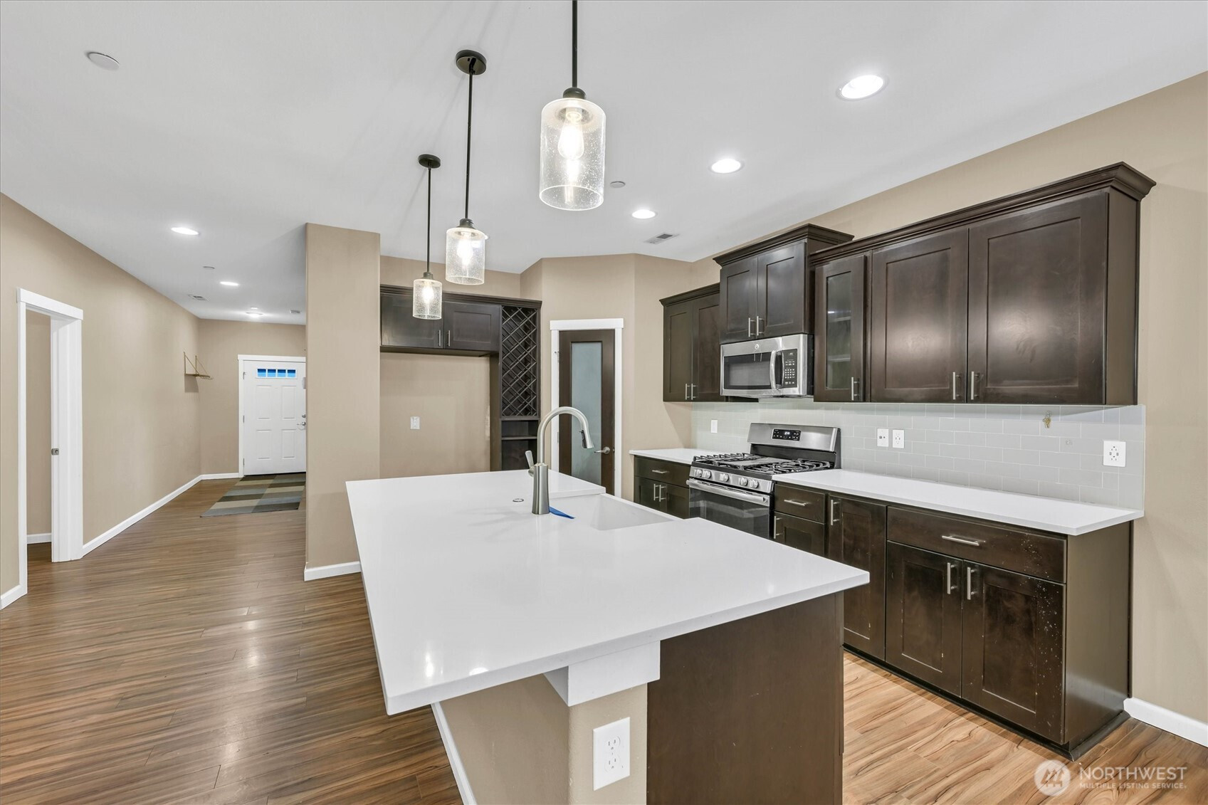 Spacious and inviting home in the desirable NW Olympia! This well thought out design features 3 large bedrooms upstairs. The primary bedrooms suite includes a super large walk-in closet and bathroom with tub and separate shower. There is also a generous sized recreation room—perfect for media space, playroom, or home gym. The main level offers a versatile den ideal for a home office, plus an open-concept living area where the kitchen, dining, and family room flow seamlessly together. Step out from the dining area onto a large deck, perfect for entertaining or relaxing outdoors while looking at the trees and green space behind your lot. A great blend of function and comfort in a sought-after location!