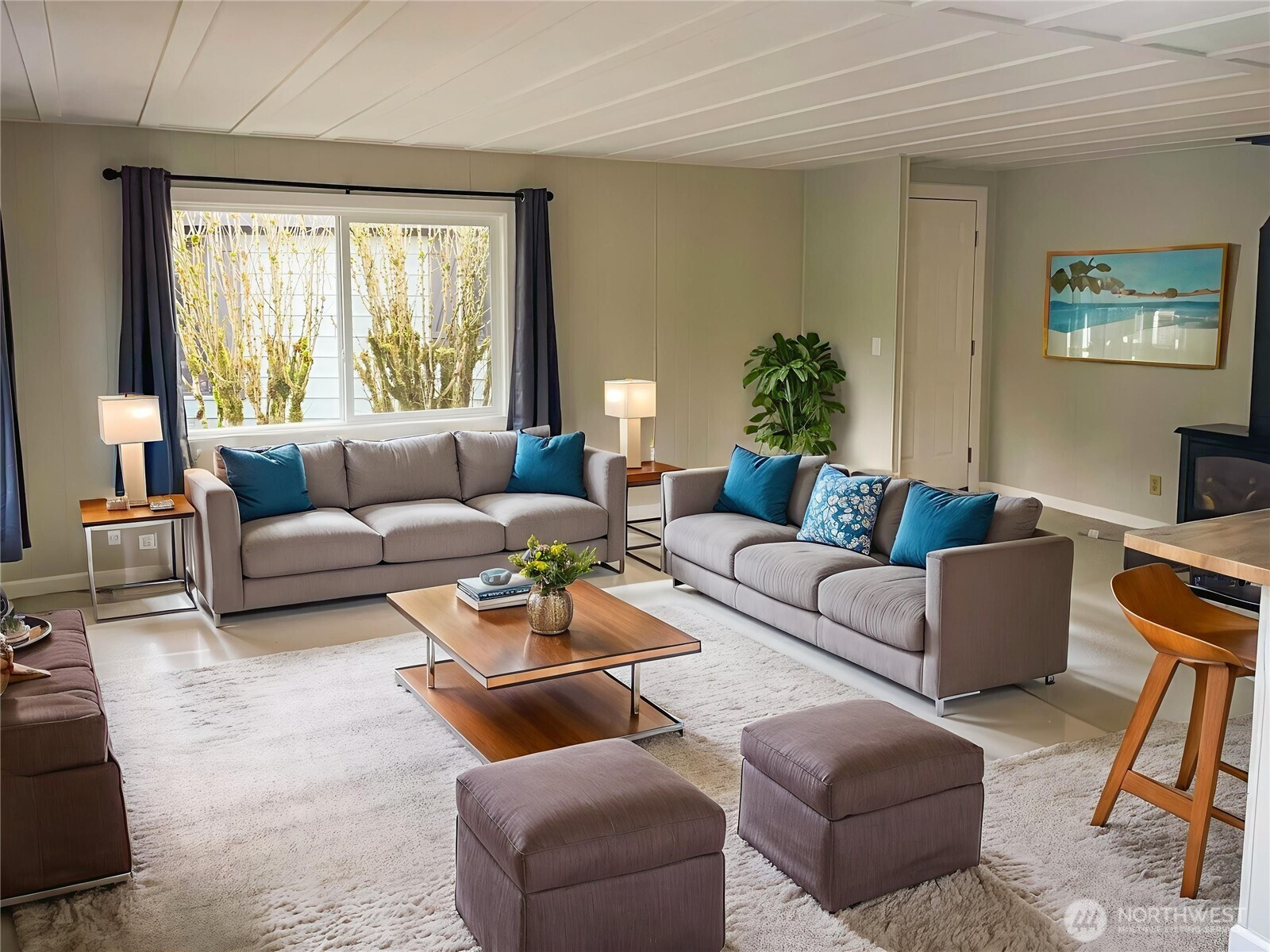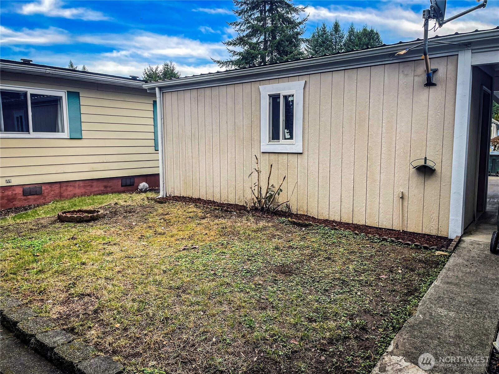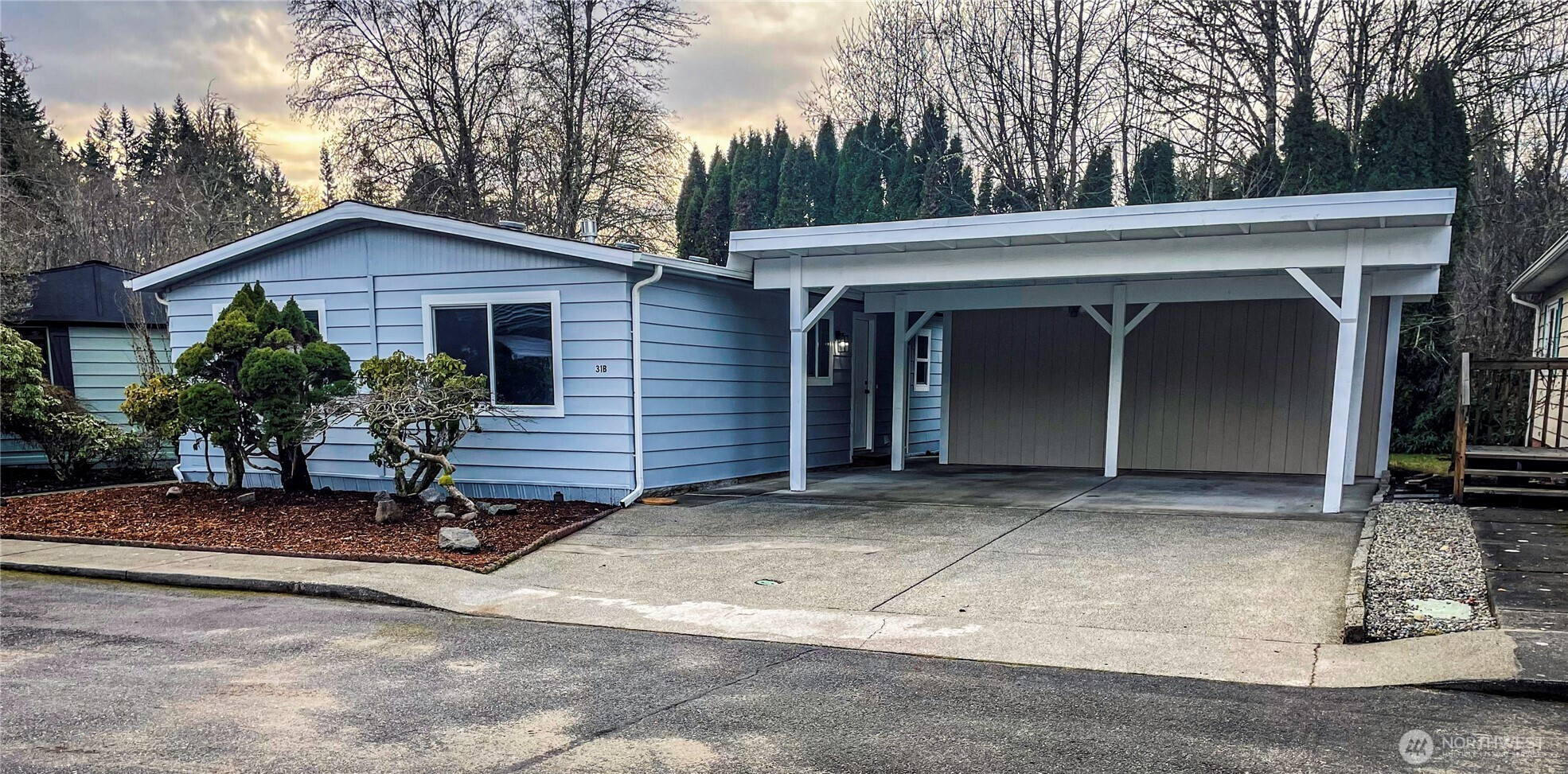 REFRESHED AND READY FOR NEW OWNERS! Freshly painted inside and out. Two car carport and plenty of driveway parking. Interior features new carpet (with a really thick pad) and new laminate hardwood flooring that really looks sharp. All new lighting too! Kitchen refreshed with newly painted cabinets, new hardware and a sweet new sink/faucet plus new countertops. Big eating bar and built in china hutch in dining room. Has a sweet little pantry too. Primary bedroom with updated bath that features new commode, new sink, new fixtures and hardware. Main bath has new tub surround, new toilet, new fixtures and hardware. Laundry area off secondary entrance and both "newer" washer and dryer stay. Large living room with gas woodstove for that cozy feeling. Head outside and check out the 8 X 12 storage unit, little yard/garden area. New windows, PEX plumbing installed, recent furnace service, a heat pump and a new cover for the crawl space. Delightful community with clubhouse and sidewalks for safely. 55+ community. 1979 built so financing is available. Close to Costco, Fred Meyer, medical services and multiple restaurants Come check it out. It will not disappoint!