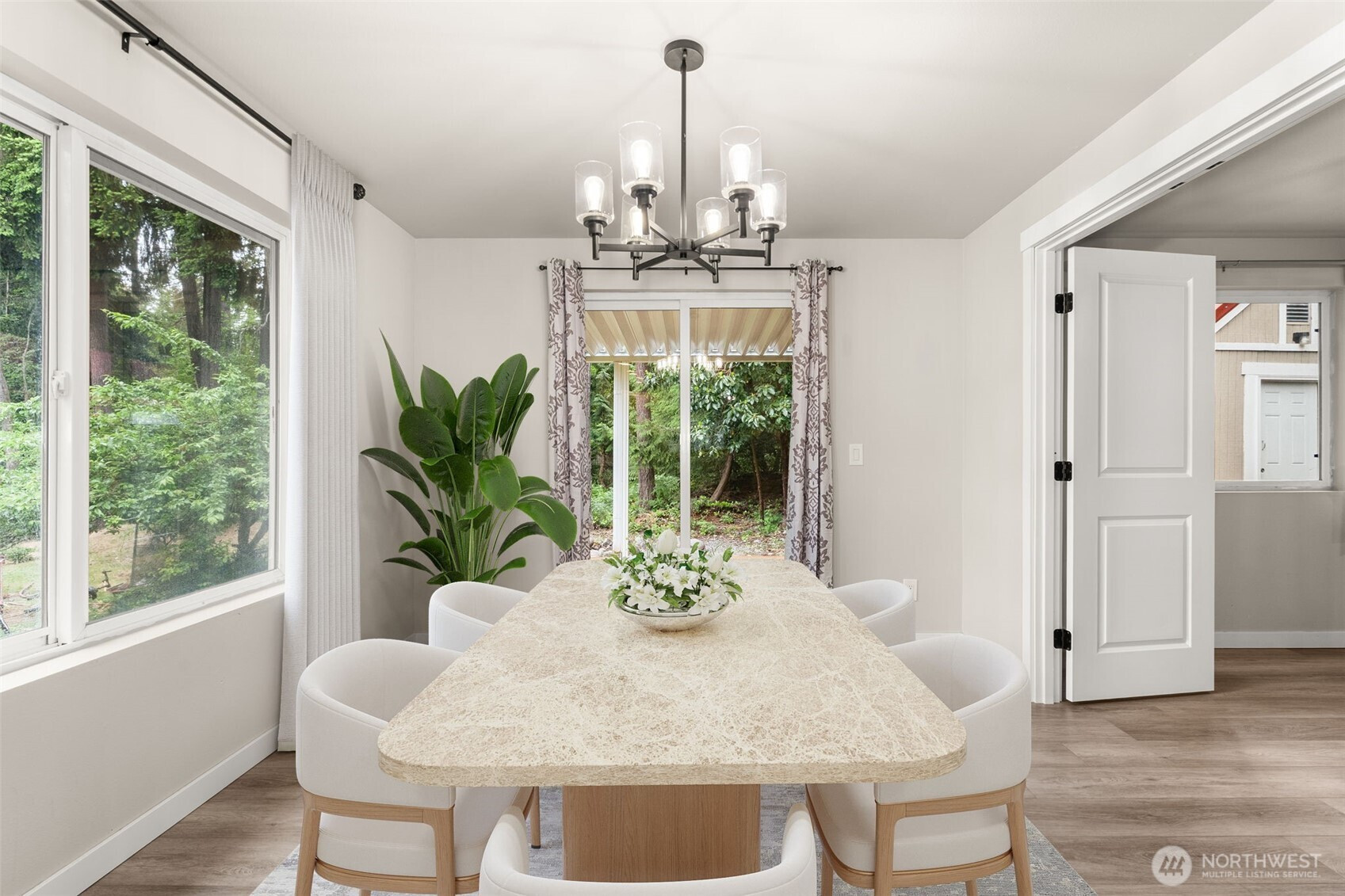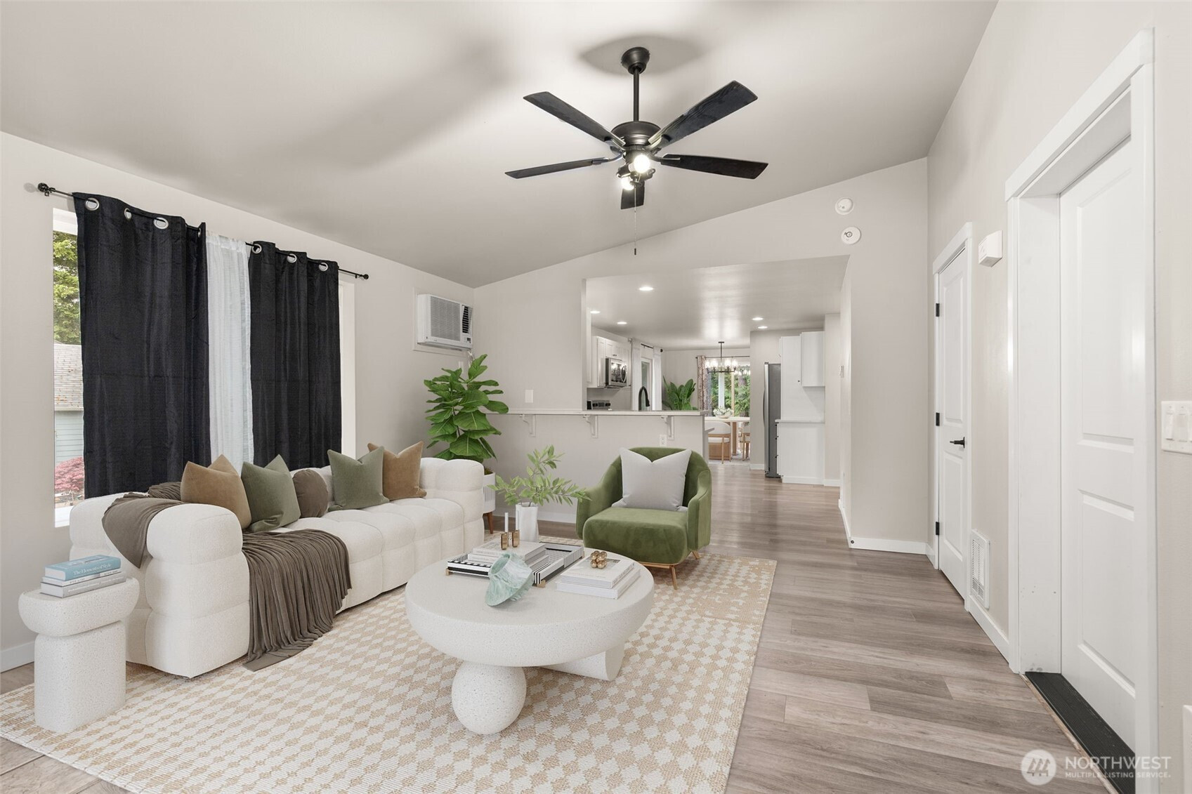 Two bedroom home with an extra room for an office, studio, or guest room. This house offers comfortable living with modern style. Inside you'll find a fully updated house with contemporary fixtures throughout. The living area has a wood stove to keep you warm on those cold nights. The covered back porch is the perfect spot to sit and enjoy your drink of choice while taking in nature. Clearwood offers a resort-like lifestyle with incredible amenities. Explore over 12 miles of trails, enjoy access to 3 lakes with 6 private beaches or the pool with jacuzzi, gather with your frineds in one of the many covered bbq areas, or get some exercise on one of the many courts or fields to play throughout the community. There's so much to do and see.