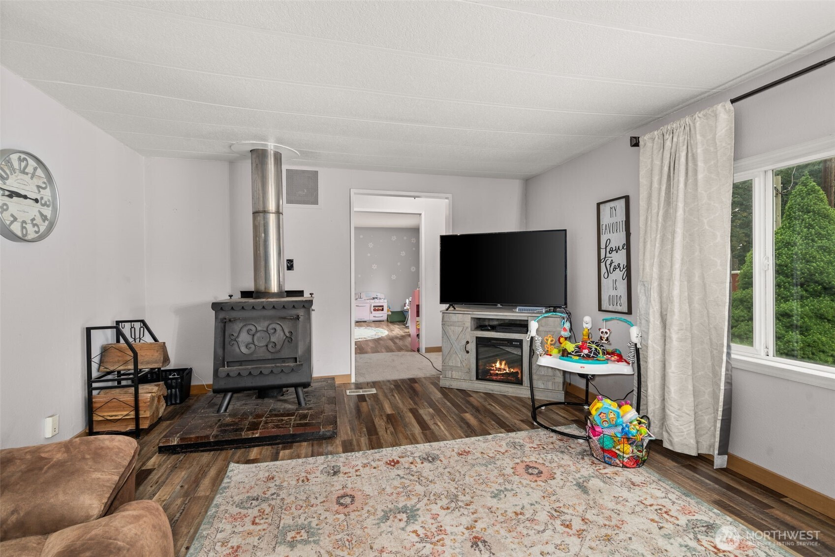 Bring your animals and toys to this affordable home on 1 acre of usable land. Plenty of room for RV parking w/50 amp. Shop has loft storage and large rolling doors. The large back yard is flat, dry, and partially fenced. Finish it to give your animals more room to roam. Fenced enclosure behind the shop could be a dog kennel or garden space. A fire pit is just off the back deck for outdoor entertaining. Inside is spacious, clean and livable but needs work. This 1782 sq ft home has been used as a 3-bedroom. It includes a 5 piece primary suite with walk-in closet, kitchen with breakfast bar, and plenty of extra space with a den and bonus room. The woodstove saves electricity. Cash or possibly conventional financing. Less than 5 minutes to I-5 and midway between Portland and Seattle. Drive a few minutes to conveniences of growing Grand Mound.
