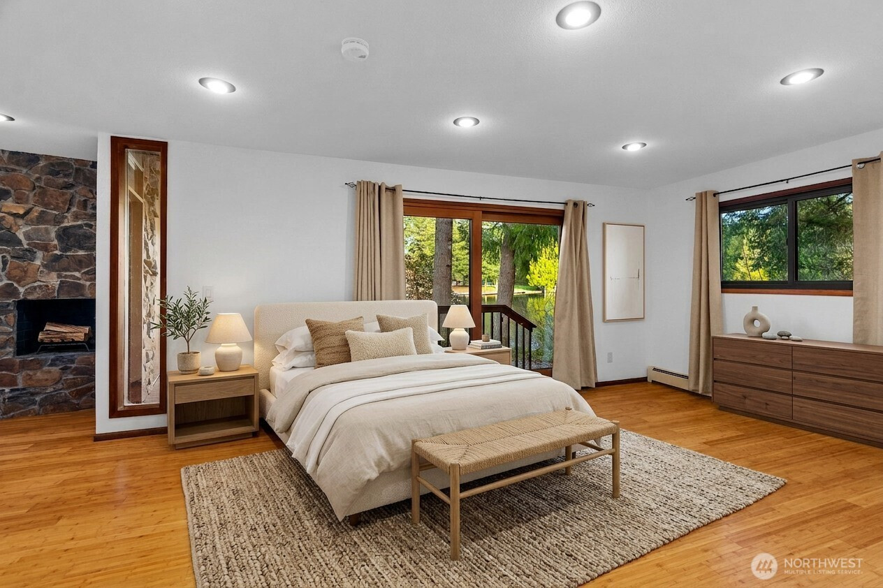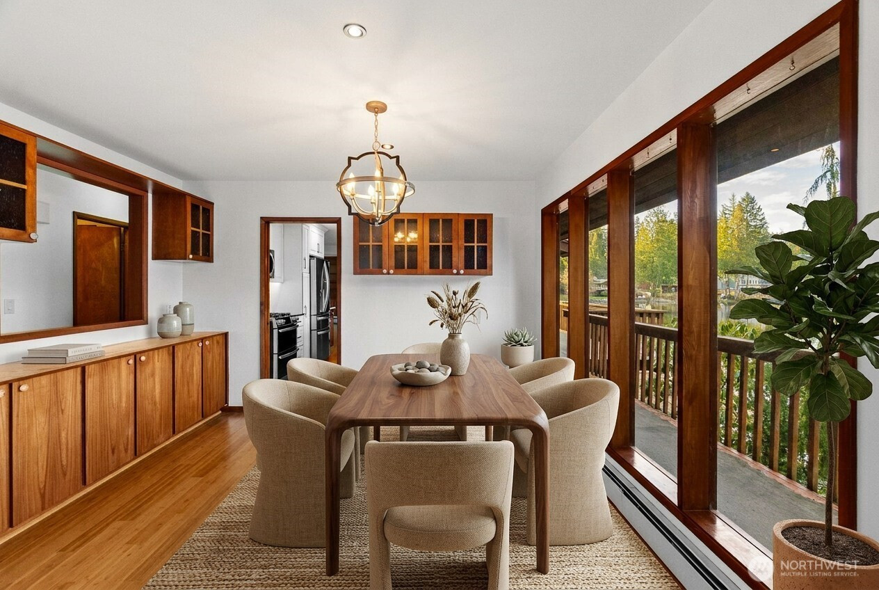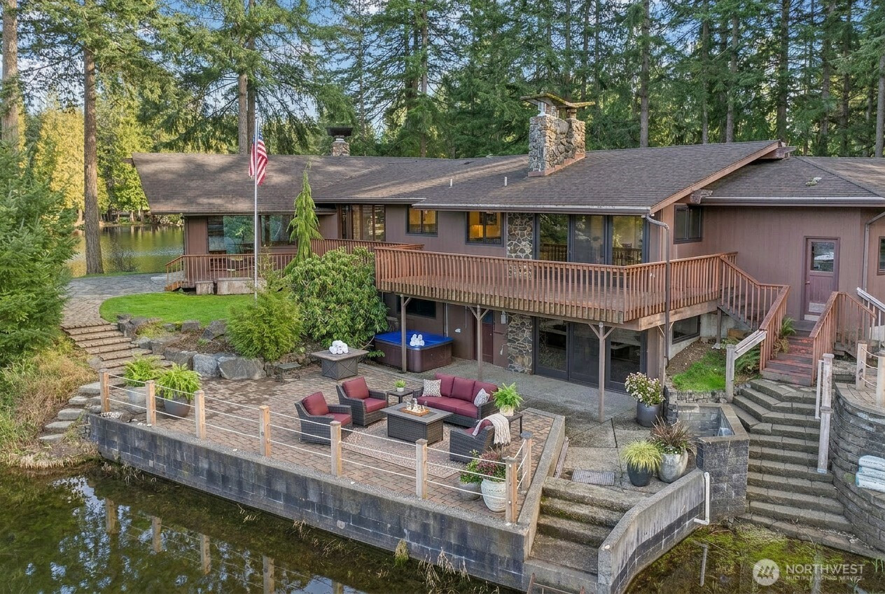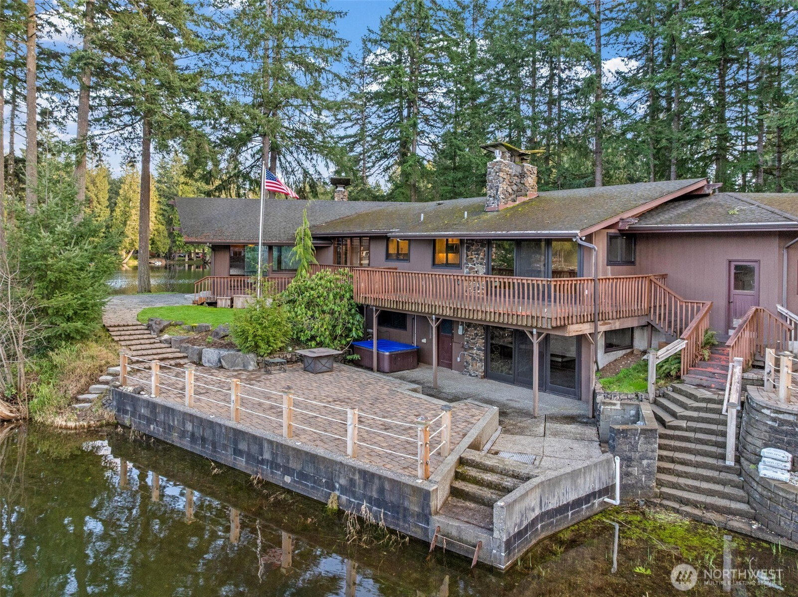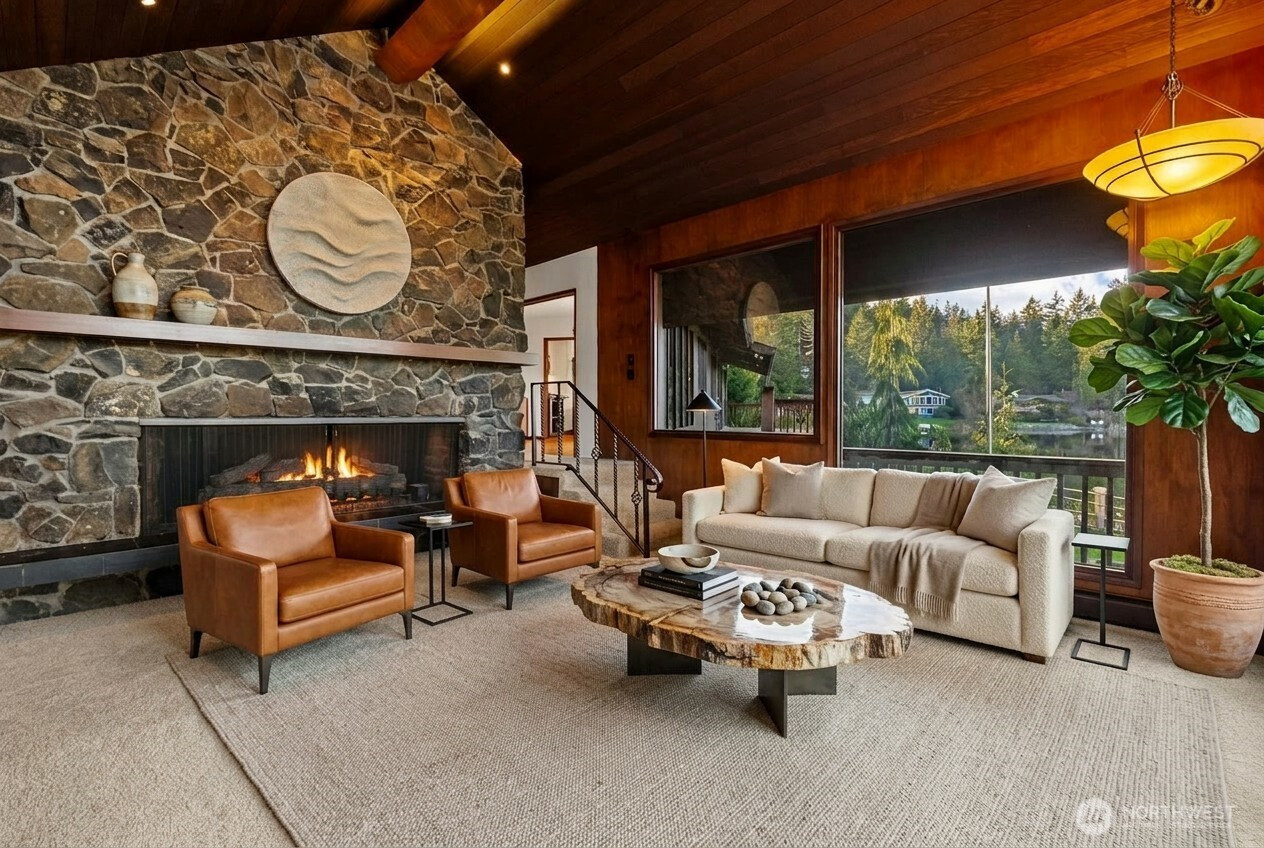 (503) 893-8874Set on a rare .67 acre point lot with 270+/- feet of no bank frontage, this Ken Lake retreat captures water views in nearly every direction. Designed in a striking Northwest Contemporary style, the 3,400+ square foot daylight rambler features 5 bedrooms and 4 baths, soaring 20 foot beamed ceilings, and a dramatic brick fireplace with raised hearth. Floor to ceiling windows in the living and dining areas frame the lake and fill the home with natural light, while gas fireplaces with custom live edge mantles add warmth and character. The kitchen offers custom cabinetry and storage, a charming Bavarian corner nook, and seamless flow to gathering spaces overlooking the water. The primary suite enjoys tranquil views and an updated bath. A permitted chair lift, copper sinks, new carpet and paint complement thoughtful improvements including custom pavers, refreshed water and gas lines, and Andersen windows and sliders. Meandering paths lead to ponds, gazebos, a greenhouse, craft shed, fully fenced, fire pits and a lakeside patio wired for a hot tub. Swim, fish, kayak, or simply relax and watch local wildlife from your own shoreline. Community parks and a swim beach enhance this in town lakefront lifestyle, all tucked into a quiet cul de sac setting in Ken Lake. It's an entertainers dream! Don't let this go! (*Some rooms are virtually staged*)