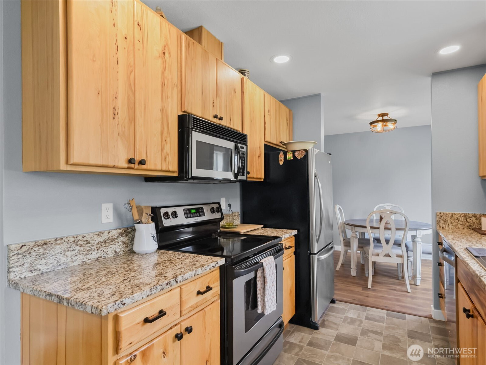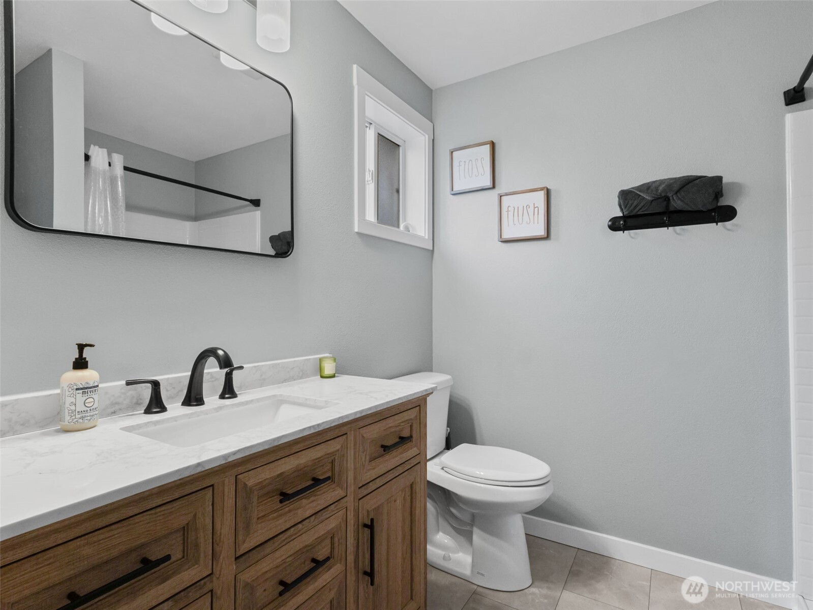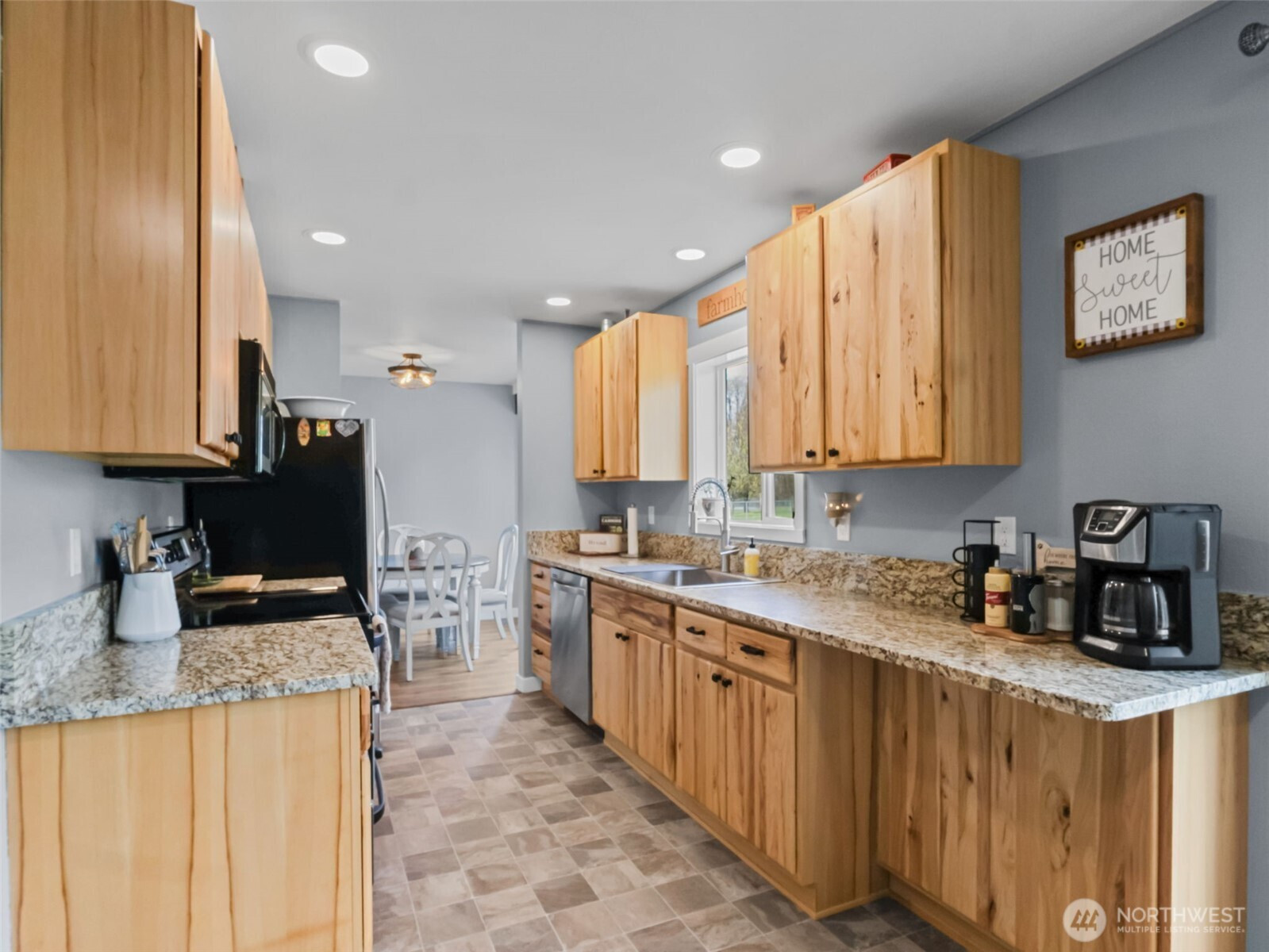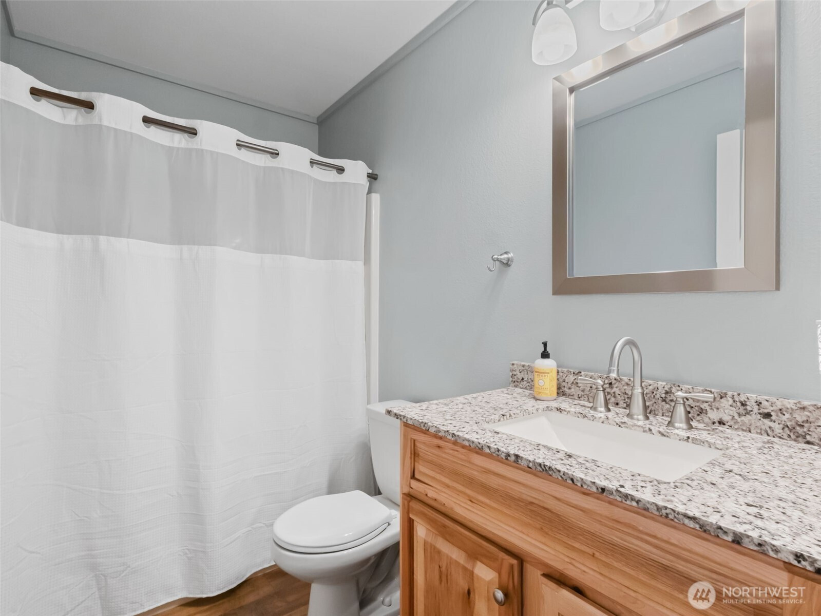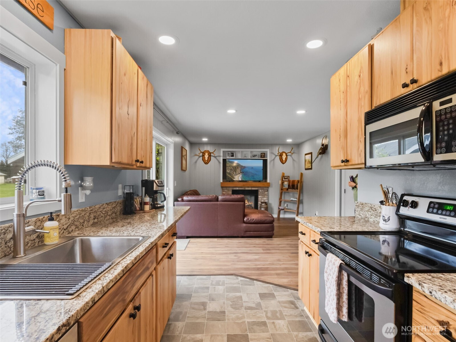 Come see this beautifully updated home just minutes from I-5, offering the perfect blend of convenience and peaceful country living. Set on 1+ acres, this property provides privacy and space to enjoy the outdoors. Extensive recent updates include new Pergo XP flooring throughout, all new interior trim, fresh interior and exterior paint, updated lighting, and remodeled bedrooms and bathrooms. The home features exposed beams in the living and dining areas, adding warmth and character, along with a beautifully updated kitchen with hickory cabinets and quartz countertops. Enjoy the flexibility of multiple living spaces, including a welcoming front living room and an additional living area—perfect for relaxing or creating separate spaces for everyday living. Stay comfortable year-round with A/C and take advantage of the outdoor space featuring a fire pit area and a covered BBQ area for year-round use. A detached shop offers excellent space for storage, hobbies, or projects, while the attached two-car garage adds everyday convenience. Additional updates include a new front door, new hot water tank, and a recently pumped and inspected septic system. Move-in ready with modern upgrades—don’t miss this one!