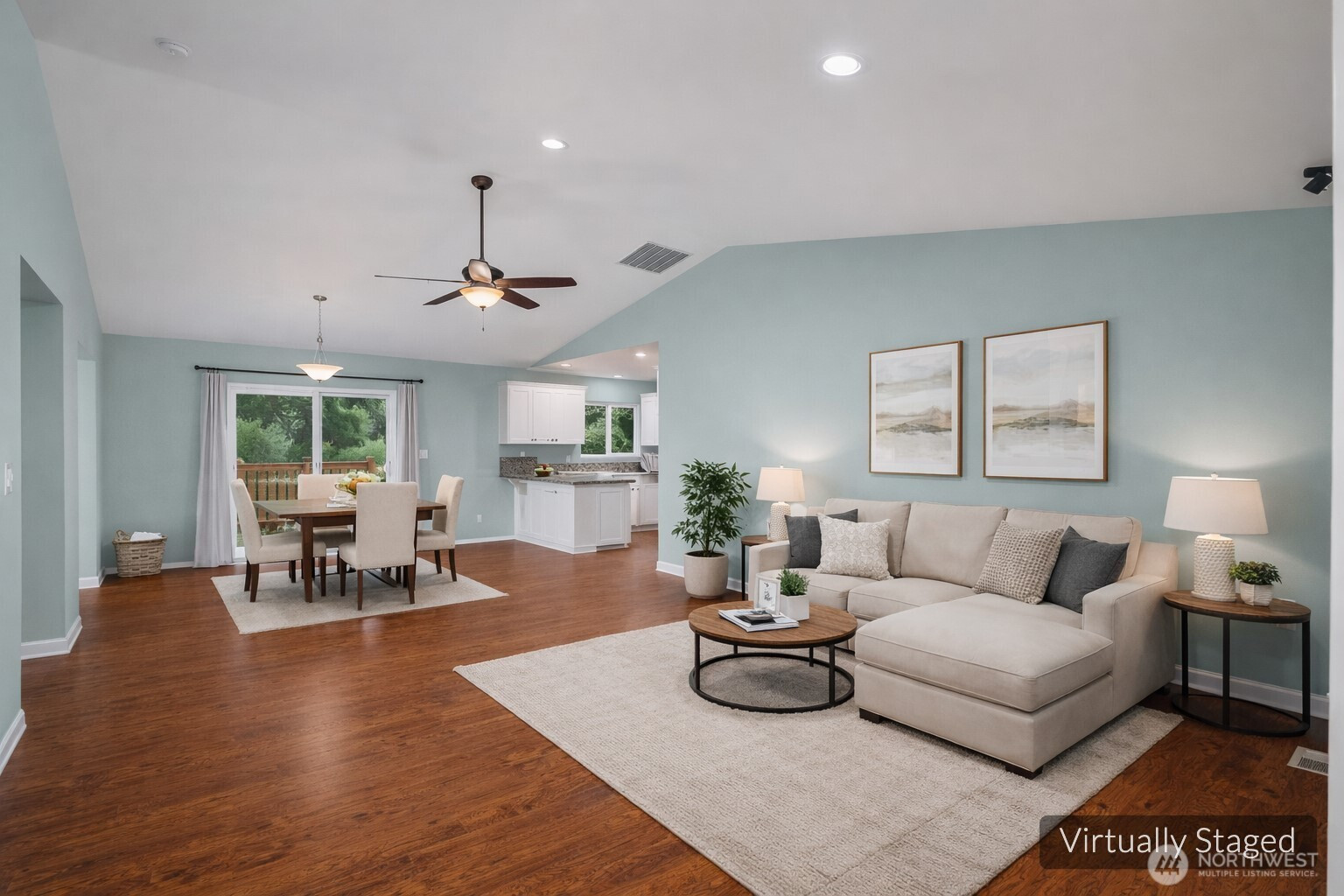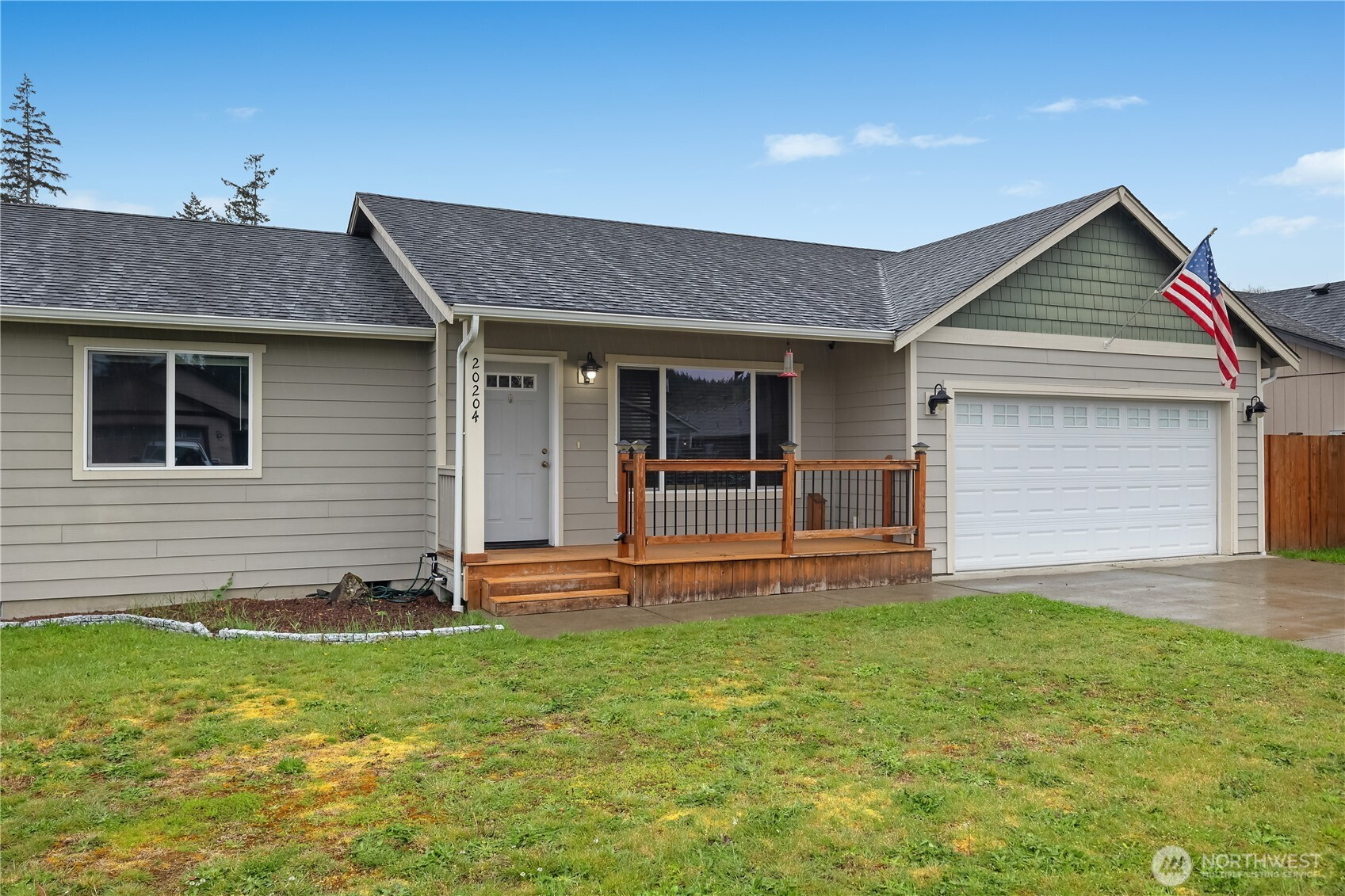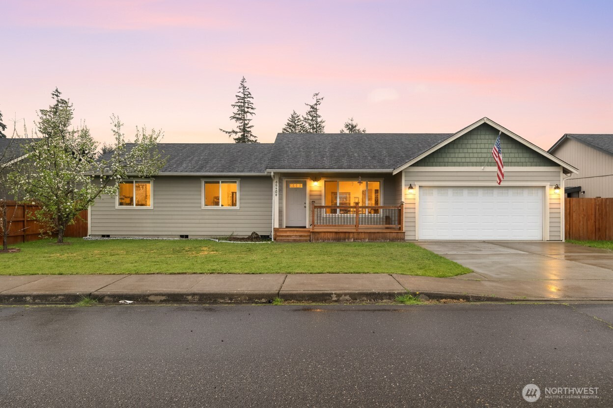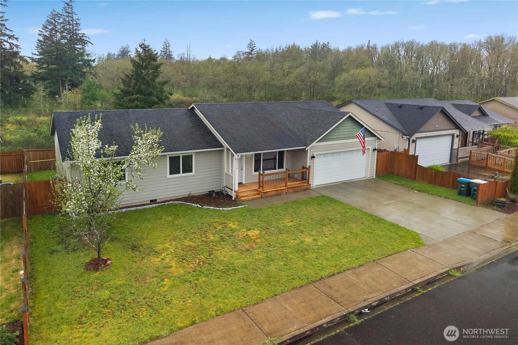 Welcome home to this beautiful rambler in the desirable Grand Mound area. Featuring an open concept floor plan, this well-designed home offers 3 bedrooms and 1.75 bathrooms. Step into the large living room with vaulted ceilings. The kitchen is filled with natural light and home comes complete with appliances- making it move in ready! The primary bedroom includes a walk-in closet and an ensuite bath with double vanity. Additional highlights include a large laundry and mud room with a utility sink, a heat pump for year-round comfort and 2 car garage. Beautiful sunsets- quiet neighborhood. Conveniently located near I-5, shopping, dining and local parks/schools.