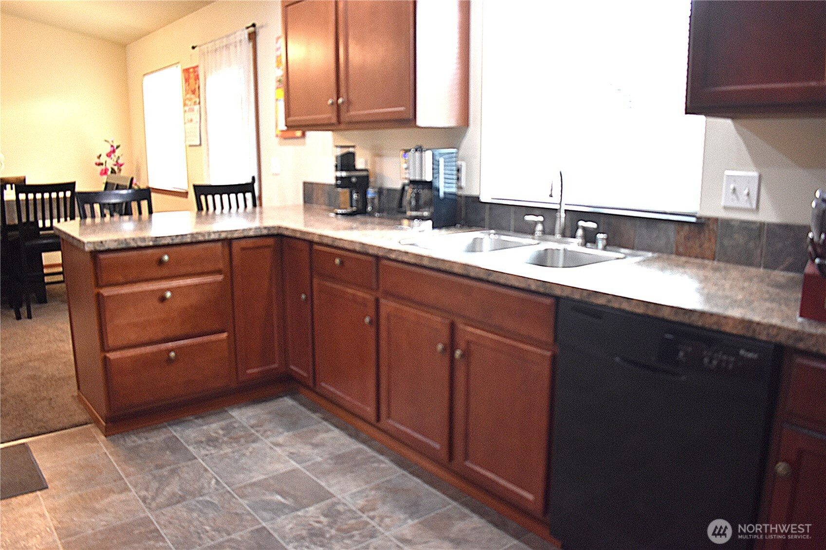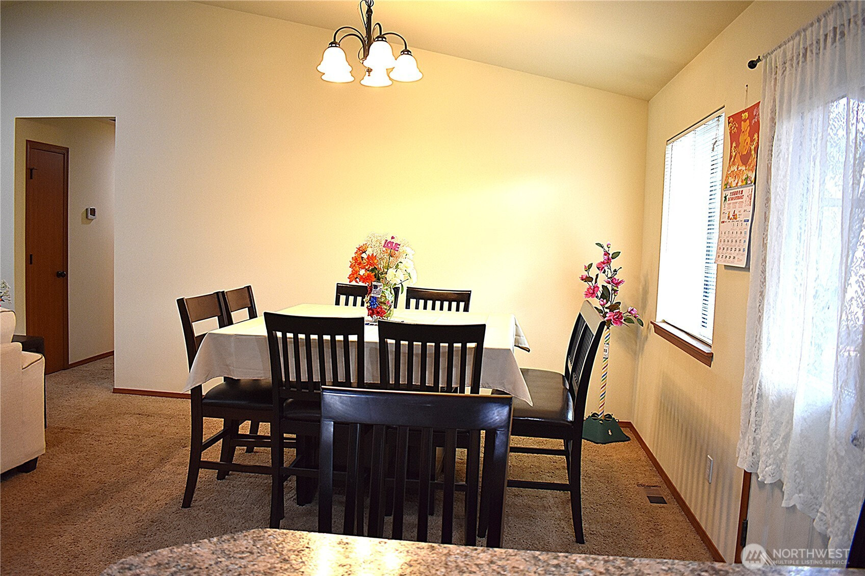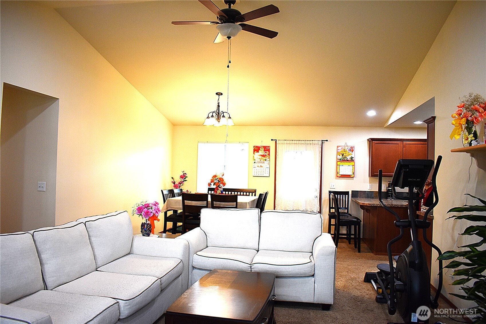 Move-in ready and perfectly located for convenient I-5 access, this beautifully maintained 3-bedroom, 2-bath home offers comfort, space, and functionality all in one. Step inside to an inviting open floor plan with vaulted ceilings that create a bright and airy feel throughout the main living areas. The well-designed kitchen features black appliances, ample counter space, and bar seating, making it ideal for both everyday living and entertaining. The dining area flows seamlessly into the spacious living/great room, creating a warm and welcoming atmosphere. Retreat to the generous primary suite with a walk-in closet and enjoy the added convenience of forced-air heating, a utility room with sink, and an attached 2-car garage. Ideally situated in a great location close to shopping, dining, and commuter routes, this home is ready for its next owner.
