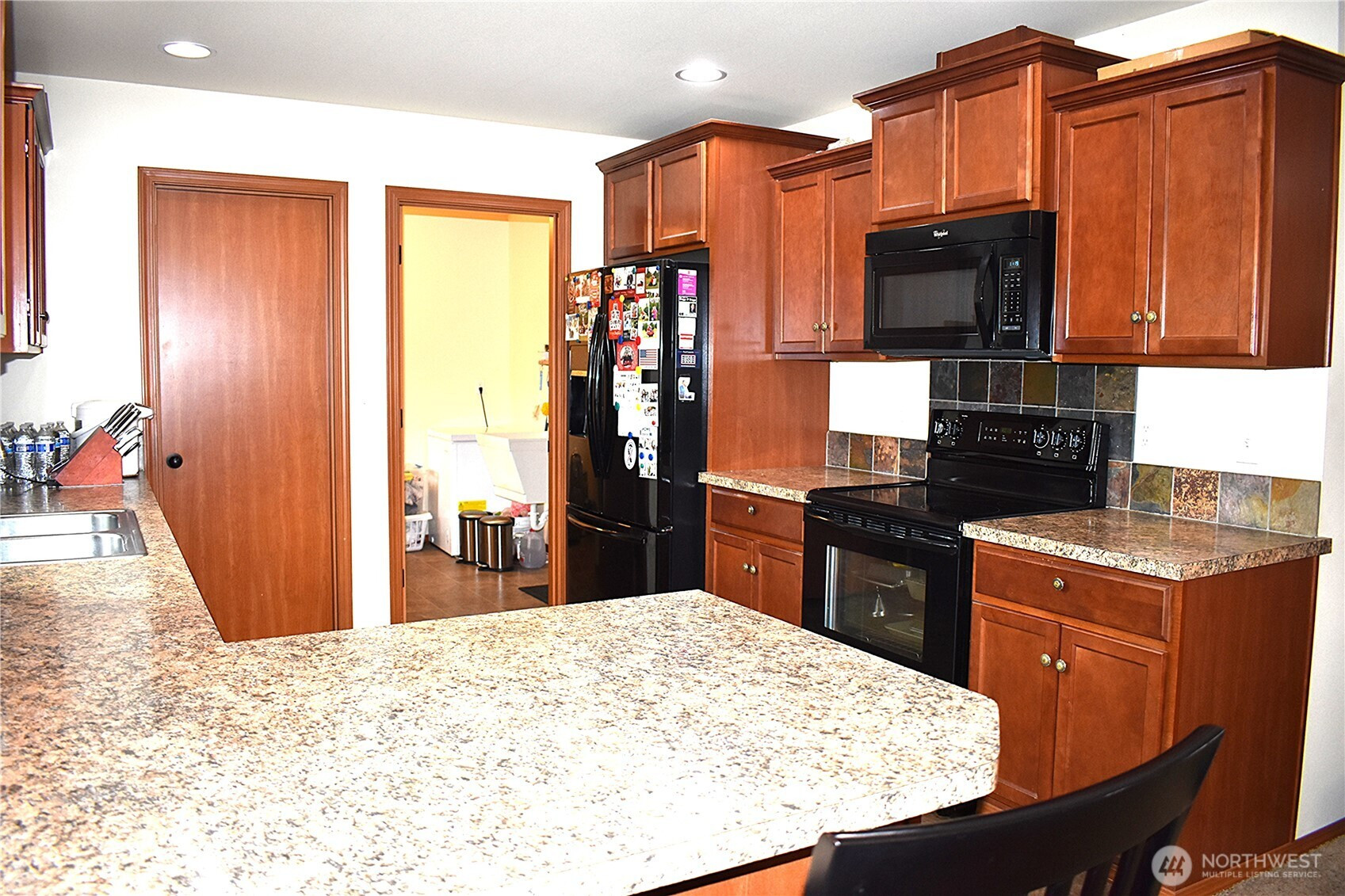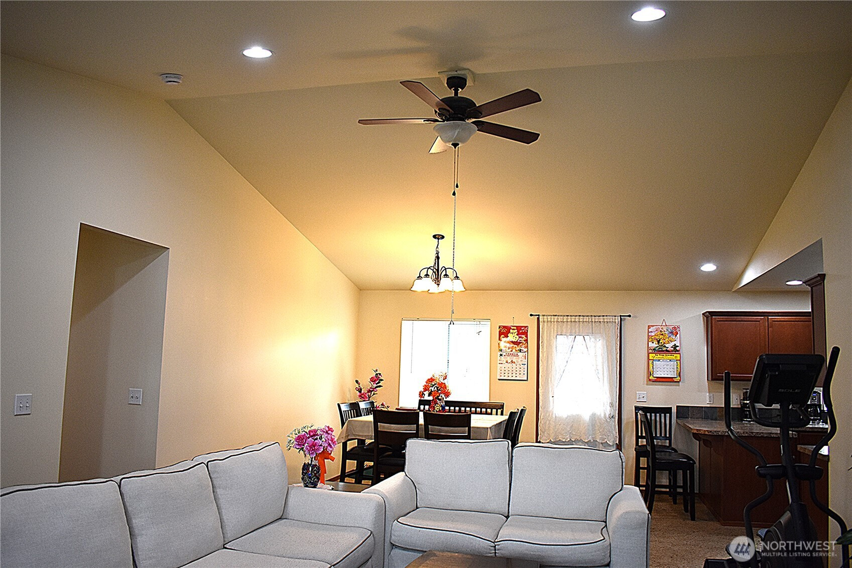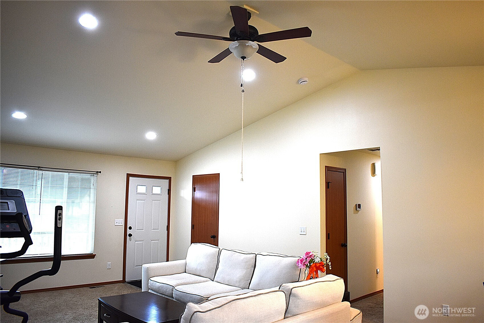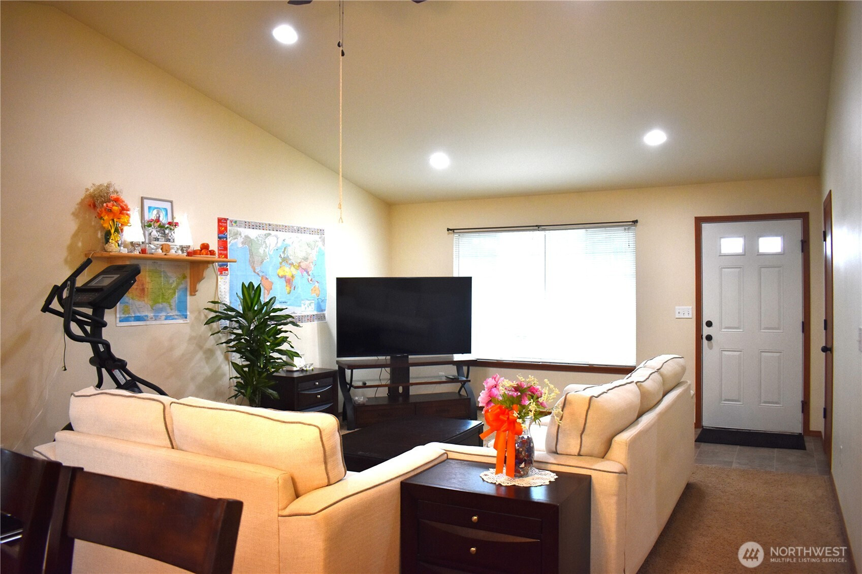 Move-in ready and perfectly located for convenient I-5 access, this beautifully maintained 3-bedroom, 2-bath home offers comfort, space, and functionality all in one. Step inside to an inviting open floor plan with vaulted ceilings that create a bright and airy feel throughout the main living areas. The well-designed kitchen features black appliances, ample counter space, and bar seating, making it ideal for both everyday living and entertaining. The dining area flows seamlessly into the spacious living/great room, creating a warm and welcoming atmosphere. Retreat to the generous primary suite with a walk-in closet and enjoy the added convenience of forced-air heating, a utility room with sink, and an attached 2-car garage. Ideally situated in a great location close to shopping, dining, and commuter routes, this home is ready for its next owner.