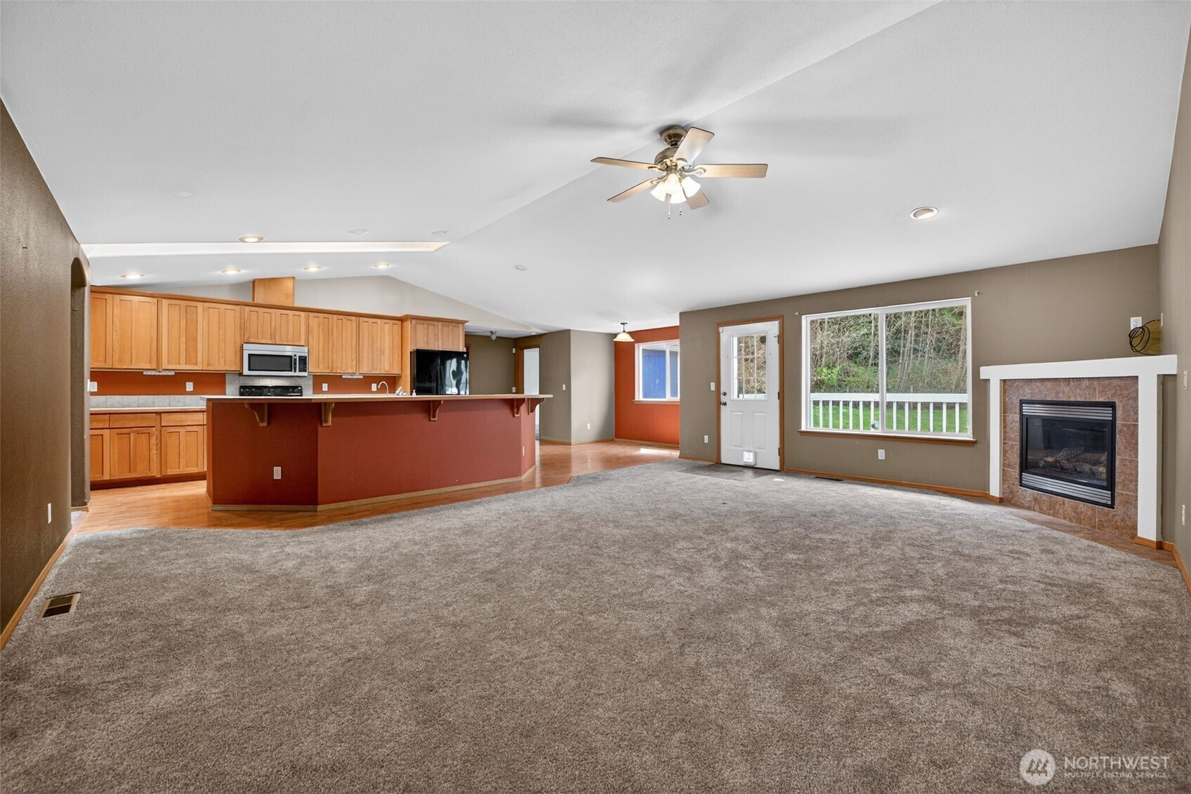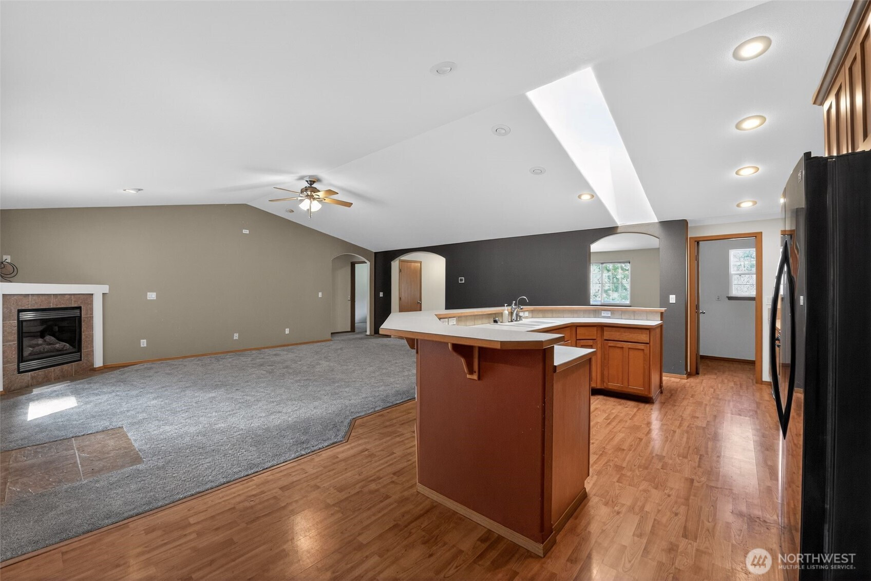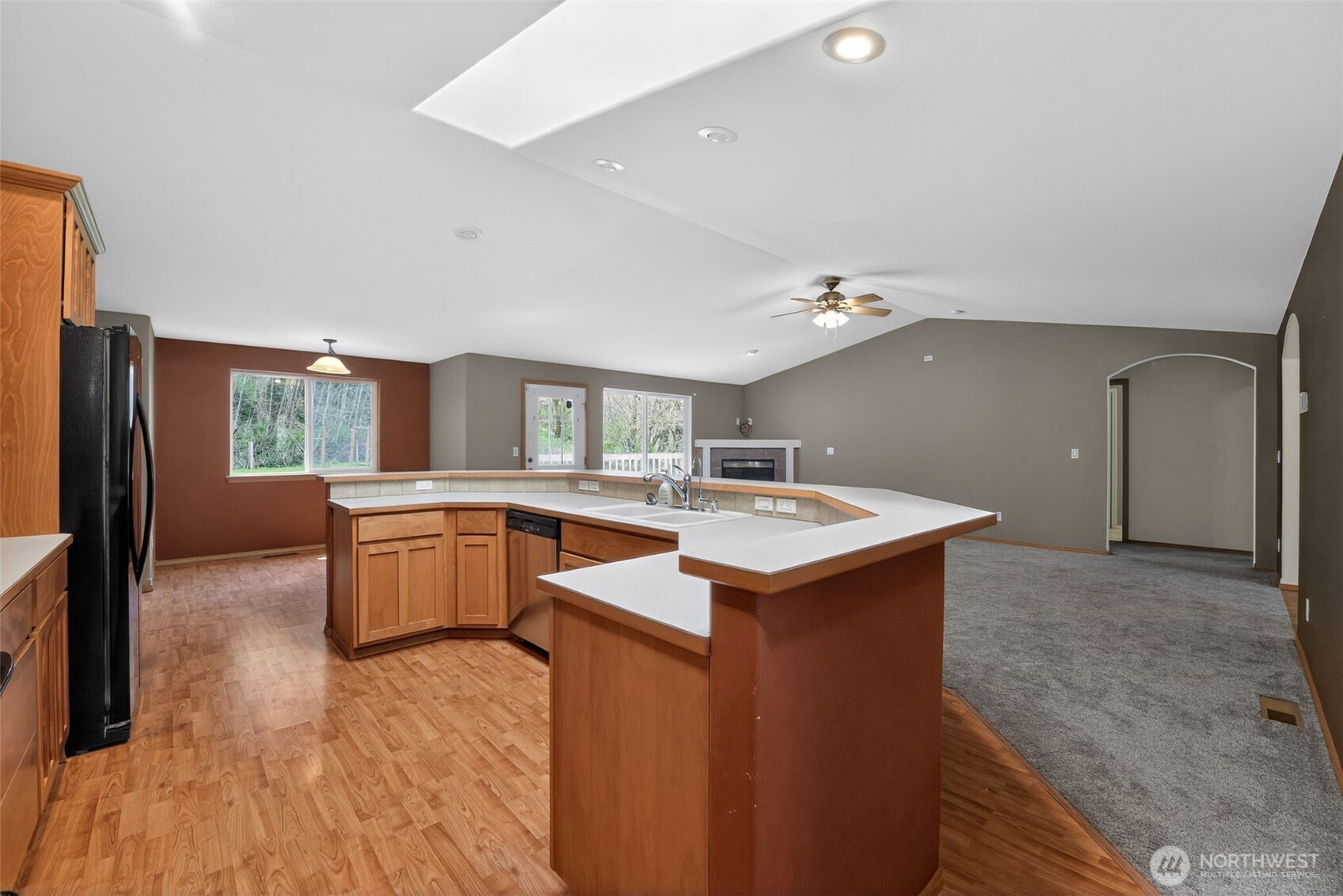 Welcome to this custom-built home nestled on 3 private acres on sought-after Michigan Hill in Rochester. This 3-bedroom, 2-bath residence offers comfort, functionality, and peaceful surroundings. A spacious entry welcomes you into an open-concept layout featuring vaulted ceilings, skylights, and a dedicated dining area that creates a bright and inviting living space.The well-appointed kitchen showcases beautiful cabinetry, a large bar, eating area, and a generous walk-in pantry, seamlessly flowing into the living room with a cozy gas fireplace—perfect for everyday living and entertaining.The primary suite features a walk-in closet and private full bath retreat, while two additional spacious bedrooms are separated by a second full bathroom for added privacy.Additional highlights include a roof-mounted solar system, generator hookup, large utility room, paved driveway, and ample parking space. Enjoy the tranquility of country living while remaining conveniently located near local amenities.