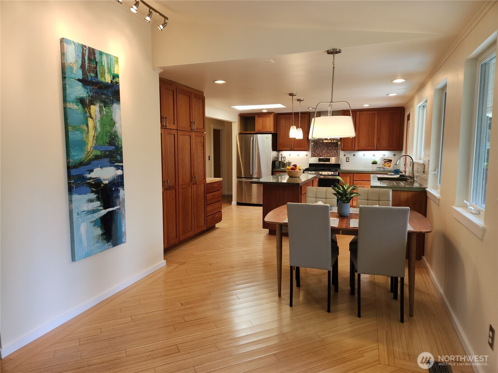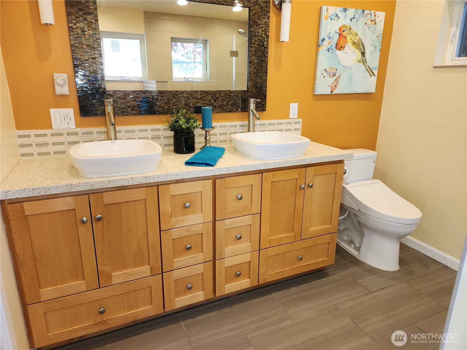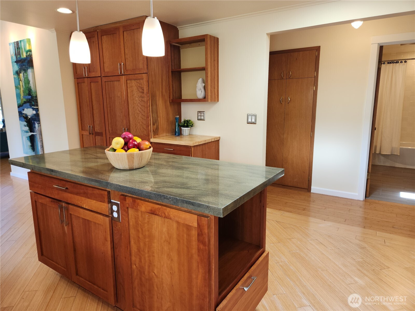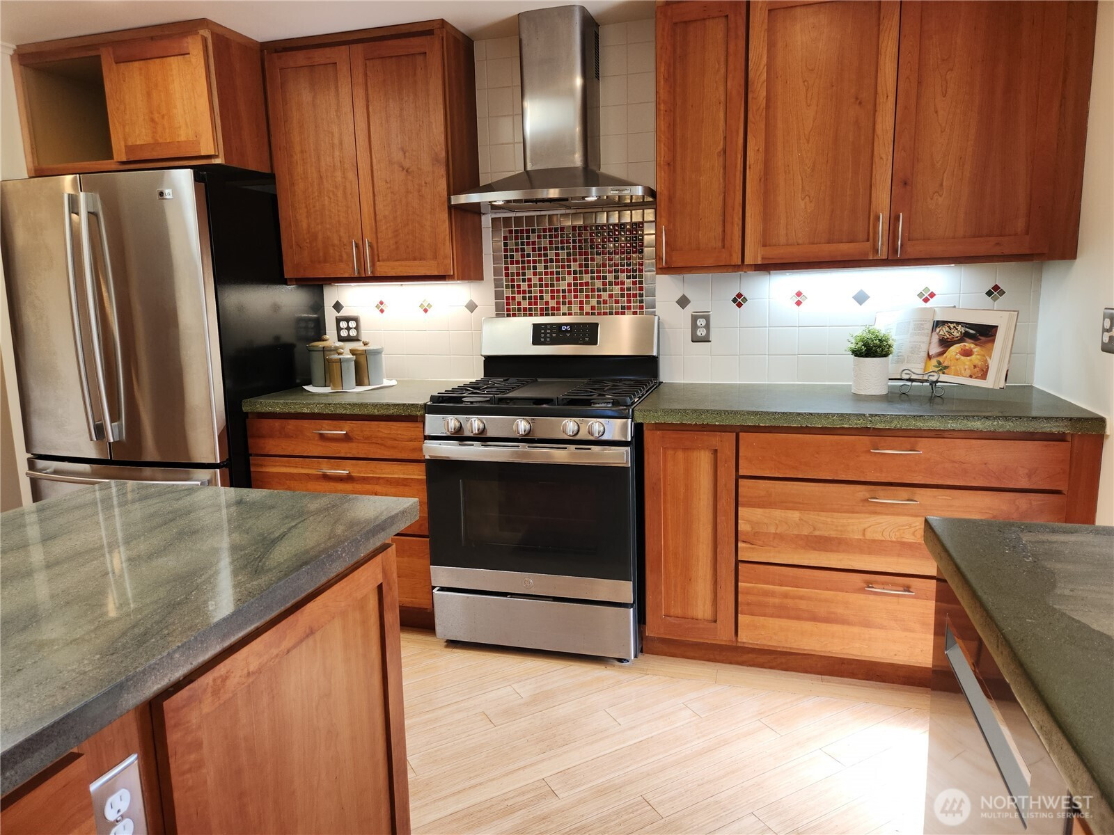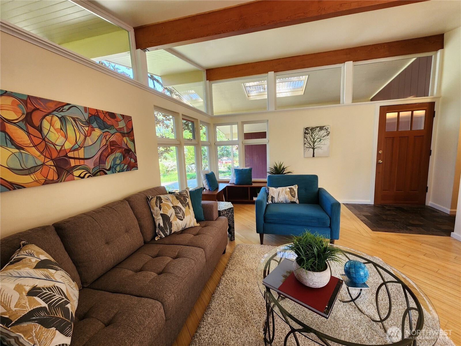 Updated mid-century home tucked into a private, peaceful setting in a highly desirable Olympia location close to shopping, dining, and everyday amenities. Situated on a corner lot within a quiet cul-de-sac, this property offers a rare sense of privacy with established landscaping creating a truly tranquil, retreat-like outdoor space. Fully fenced backyard features multiple outdoor living areas including a covered patio and outdoor fireplace, ideal for year-round enjoyment. Multiple access points connect the indoor living spaces seamlessly to the outdoors, enhancing the home’s open and inviting feel. Inside, you’ll find bamboo flooring throughout, abundant natural light, and an open, connected layout that complements the home’s architectural character. The living area features a gas fireplace, while the kitchen offers custom concrete countertops and all appliances included for added convenience. This 3-bedroom, 2-bath home blends comfort and function without sacrificing style. With its combination of privacy, character, and convenient location, this home offers a lifestyle that is hard to find at this price point. Come experience the setting and see all this property has to offer.