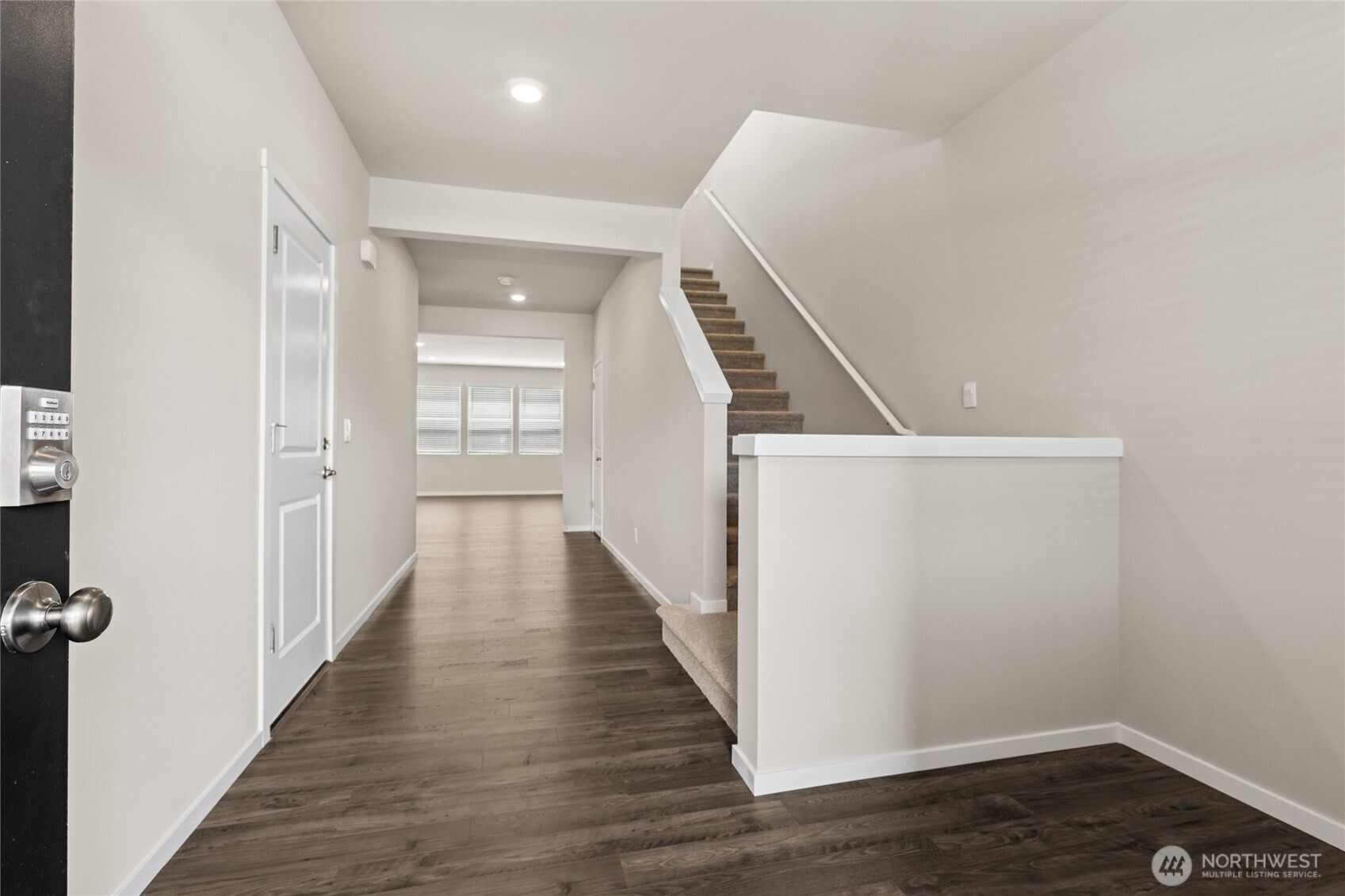 Welcome to Sleater Crossing by D.R. Horton, a new construction community on the border of Lacey and Olympia! The Bridgewater Plan is a 5-bed, 2.5-bath home designed for comfortable, flexible living. The open-concept great room and spacious kitchen island are ideal for entertaining, while a main-floor bedroom adds versatile space for guests, a home office, or multigenerational living. Upstairs, an expansive bonus room offers additional living space for any lifestyle need. The home features hard surface flooring throughout the main level, paint-grade cabinets, white millwork and doors, stainless steel appliances with gas range, quartz countertops, and a bath off the primary suite with walk-in closet. A heat pump provides efficient year-round comfort. A pre-wired 50-amp circuit for EV charging is included. Smart home technology and D.R. Horton’s 10-year warranty come standard. Sleater Crossing offers a park, half basketball court, open green spaces, and walking trails. The Chehalis Western Trail is nearby. Easy access to I-5, JBLM (13.7 mi), Target, Safeway, Fred Meyer, Costco, and Olympia’s historic district. Served by North Thurston School District, all three schools within approximately 1 mile. Special financing available through DHI Mortgage for qualified buyers. Real estate brokers must register clients prior to or during their first visit, including open houses. Equal Housing Opportunity.