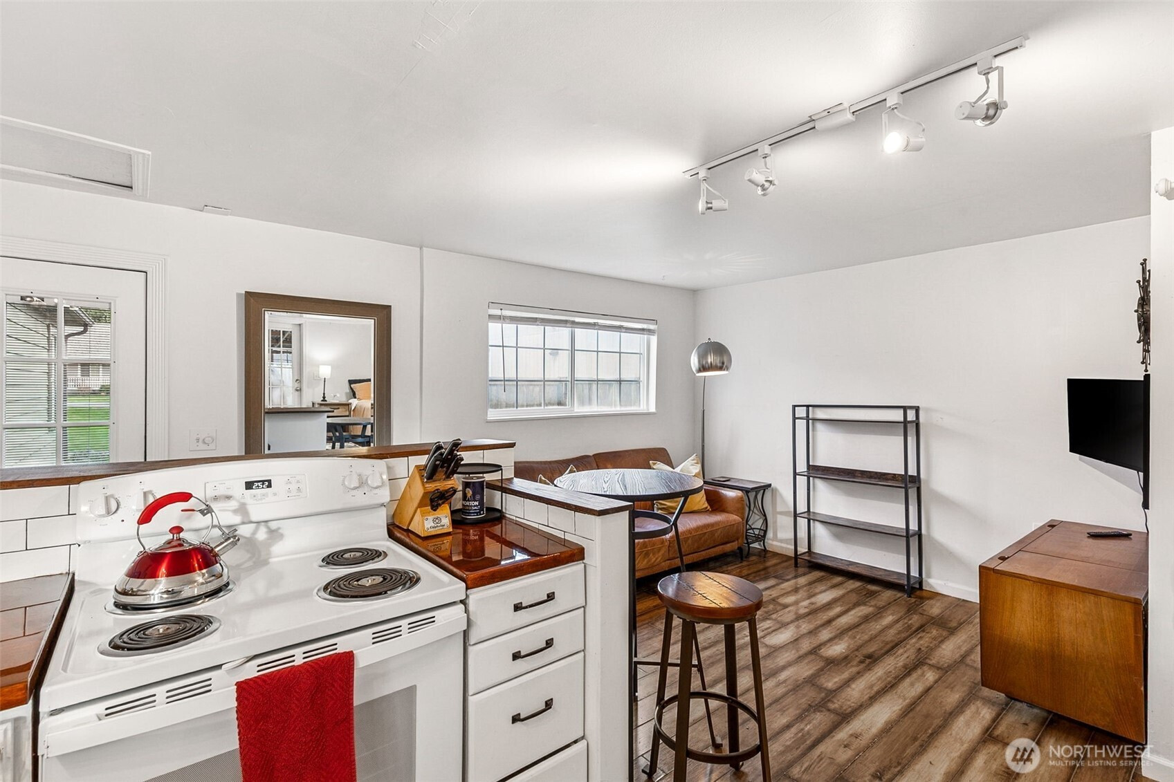 Two one-level homes! Centrally located on Olympia’s Westside with easy access to shopping, dining, parks, schools, and commuter routes, this classic rambler offers both comfort and versatility. The main home is 3 bed, 1 bath 972 sq ft charmer + a 432 sq ft studio ADU perfect to help cover mortgage, multigenerational living, or save for guests. Main home and ADU each with own private patio. ADU rent is $1200.00. Recent updates include a new roof in 2021 and updated flooring. A third room with a closet could easily function as a third bedroom, home office, or flex space. All appliances included. You'll love the privacy of the fully fenced, backyard. Just minutes to Sunrise Park and Olympia Schools!