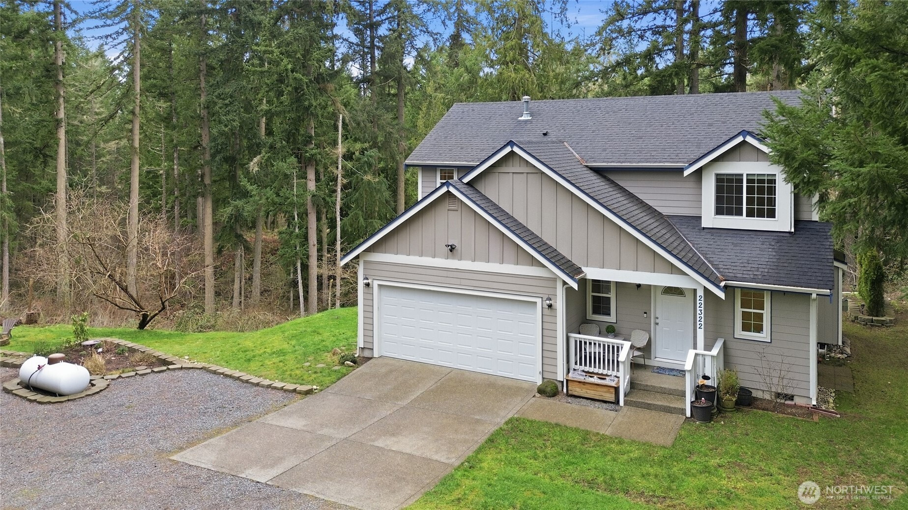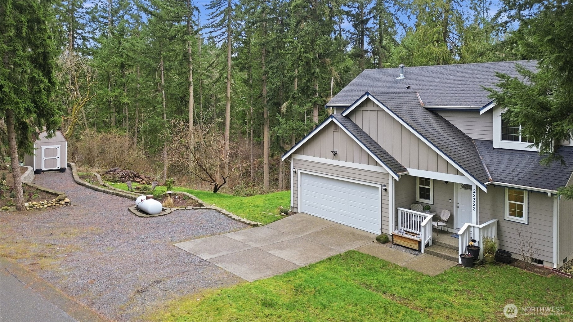 Welcome to the gated community of Clearwood. 3 bedroom 2 1/4 bathroom home sits on a large .41 of an acre lot. Plenty of parking, oversized side yard with additional gravel driveway that leads to a 2 year old 8x12 shed all located on a dead end street. Garage has just been finished with brand new drywall, insulated garage doors that are 2 yrs old, wired for generator and has a heat pump (A/C). Out the back patio door is a private patio that looks out to the woods and leaf guards on the gutters to keep that debris out. Clearwood offers a 'live like you are on vacation" with community pool, lakes, trails, parks with one park across from this home and much more. Main level interior has an open concept with beautiful vinyl plank floors, gas(propane) fireplace and bathroom by the front entry. Kitchen is equipped with stainless steel appliances (stove, fridge & microwave are all 2024), walk in pantry and eat at bar that all looks out to a view of trees. All of upstairs including the stairs has brand new carpet. Nice size primary bedroom has a walk in closet and private bathroom with dual sinks, shower and toilet. 2 more nice size bedrooms, laundry room and full size bathroom are also upstairs. You don't want to miss the opportunity of owning this well taken care of and move in ready home.
