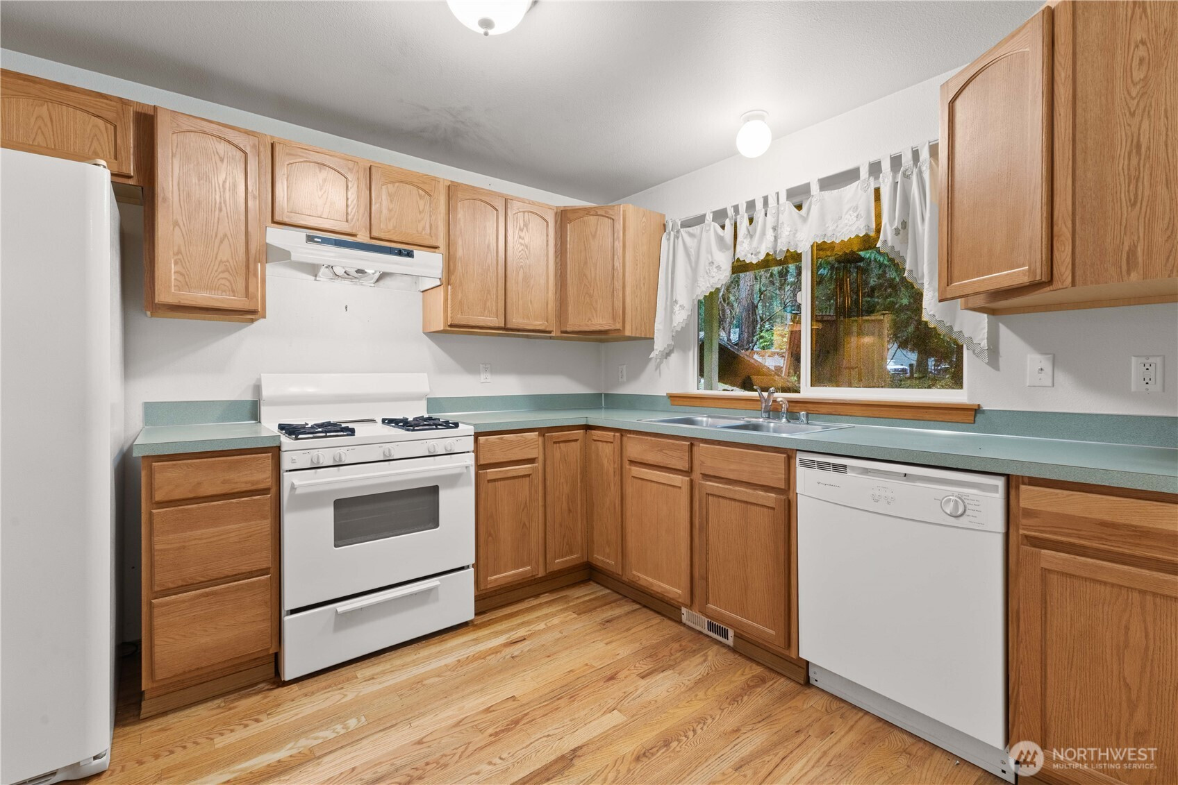 Estate Sale! Charming 3 bedroom, 2 bathroom home located in a picturesque gated community. This home features a vaulted living room with a cozy wood-burning fireplace, hardwood entry, heat pump with air conditioning, a spacious deck, and a large 2-car garage. Plus, enjoy approximately 800 sq. ft. of additional storage space beneath the home. Surrounded by beautiful natural settings with access to miles of walking trails, parks, lakes, and more. Home is sold AS IS.
