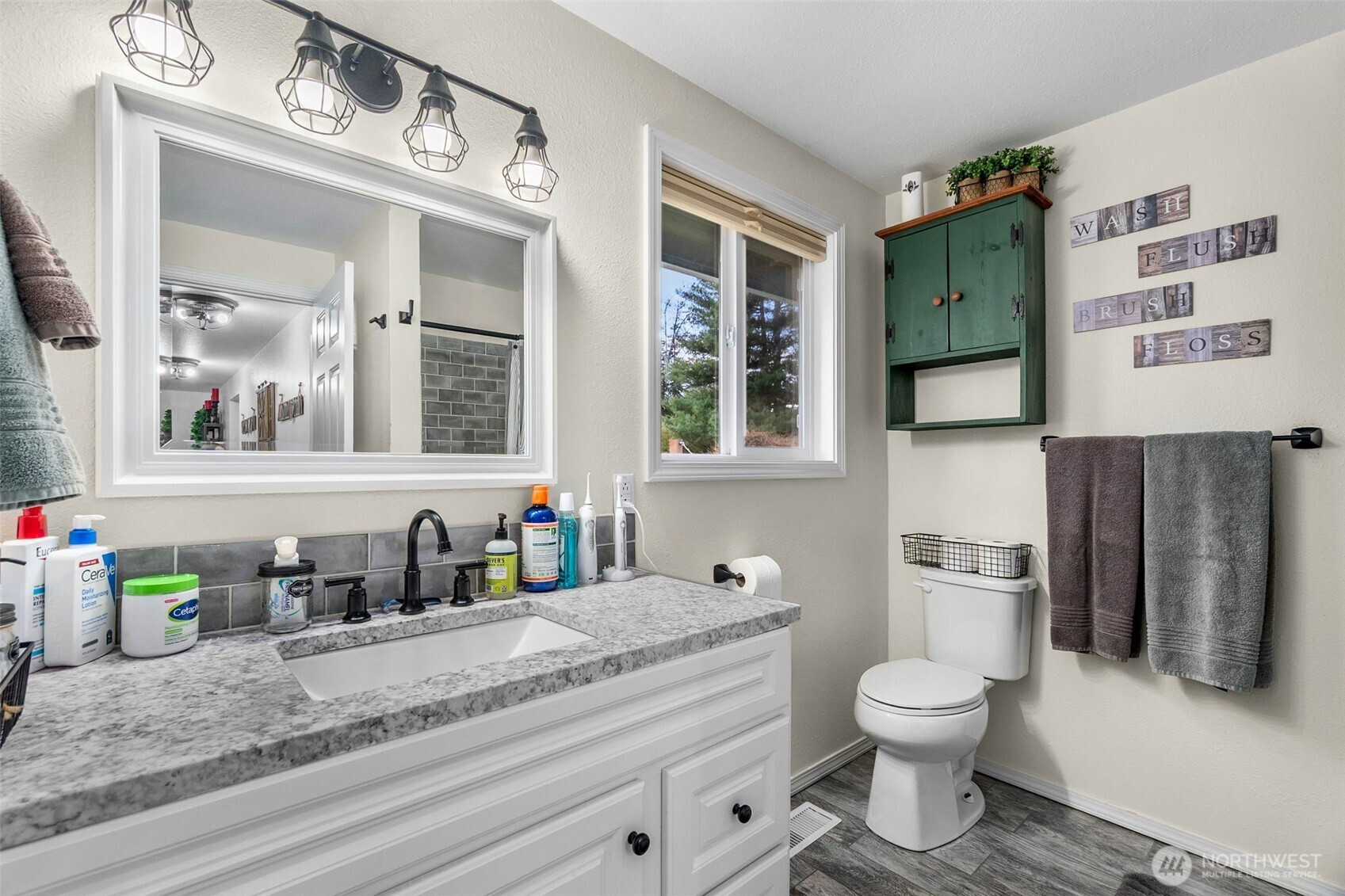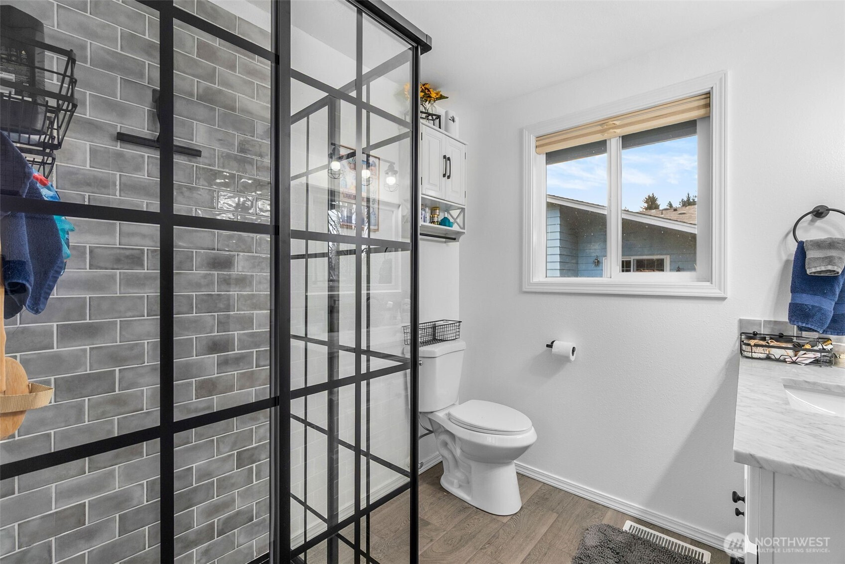 This home is polished up and ready for new owners! The Hicks Lake community is close but feels far away, it offers a community park and boat launch for your non motorized toys. This home offers a large flat lot, backyard is fully fenced and offers a large covered patio. This one level home is warm and inviting with some great updates. 3 bedrooms with hardwood floors. Primary offers a newly updated private 3/4 bath with tile, marble counters and large glass shower. The full bath has also been updated with tile and quartz, but offers a tub with a shower. New carpet flows from the living area through the hall. Warm up those chilly winter nights with the pellet fireplace insert, which also assists in keeping those power bills down! Large windows really bring the natural light and outdoors in! Nice sized eating area off of the kitchen. New laminate flooring through eating area, kitchen, and laundry room. Glass doors lead to the backyard and covered patio. Large 2 car garage offers ample space for cars and storage, driveway is large for extra parking, and also additional parking alongside the driveway for your toys or RV.
