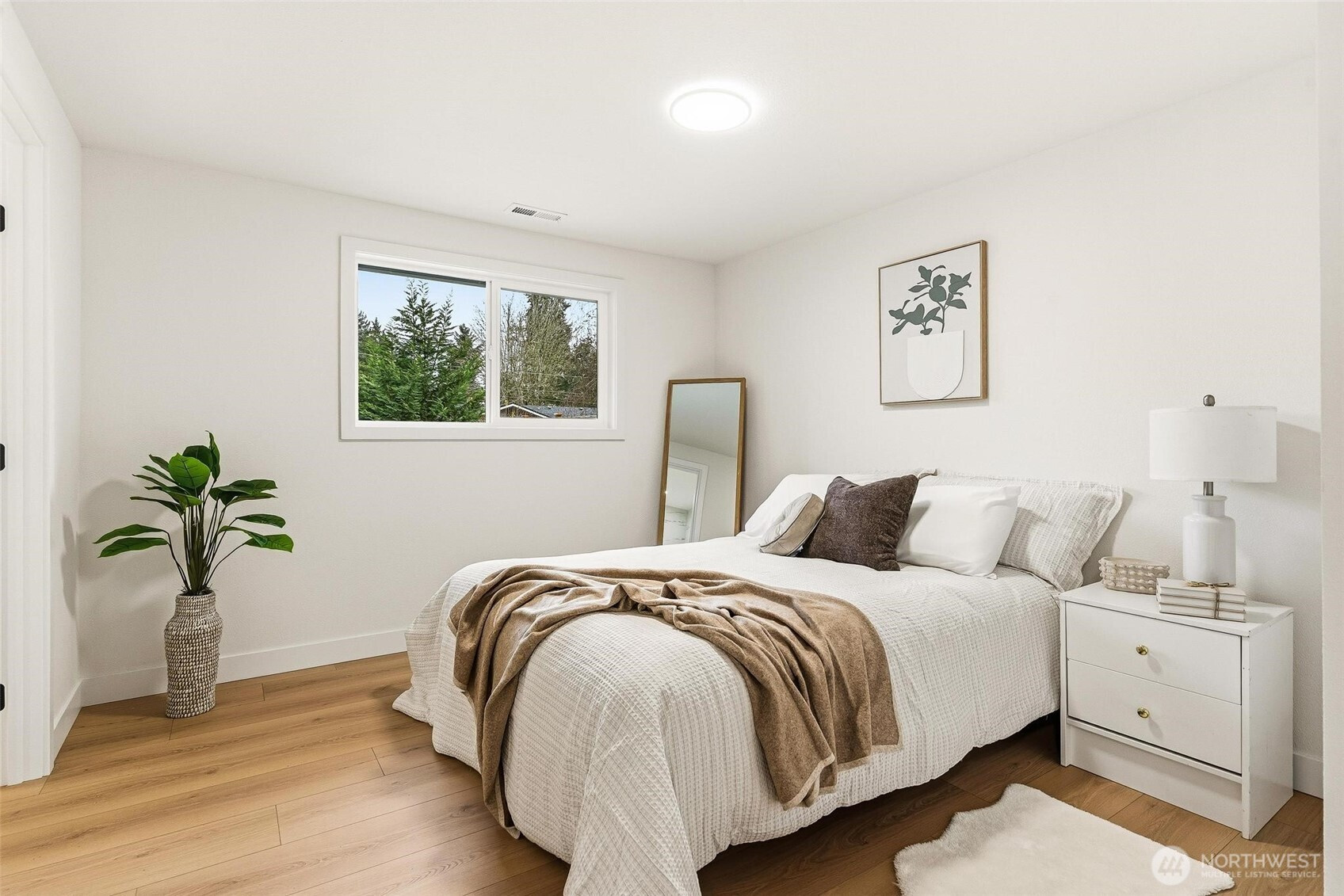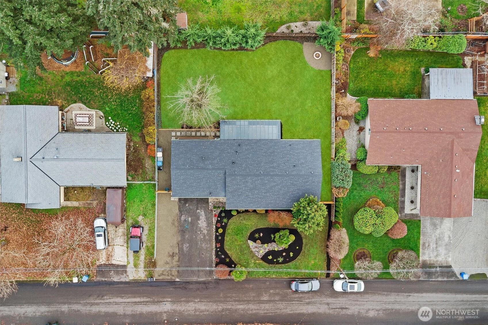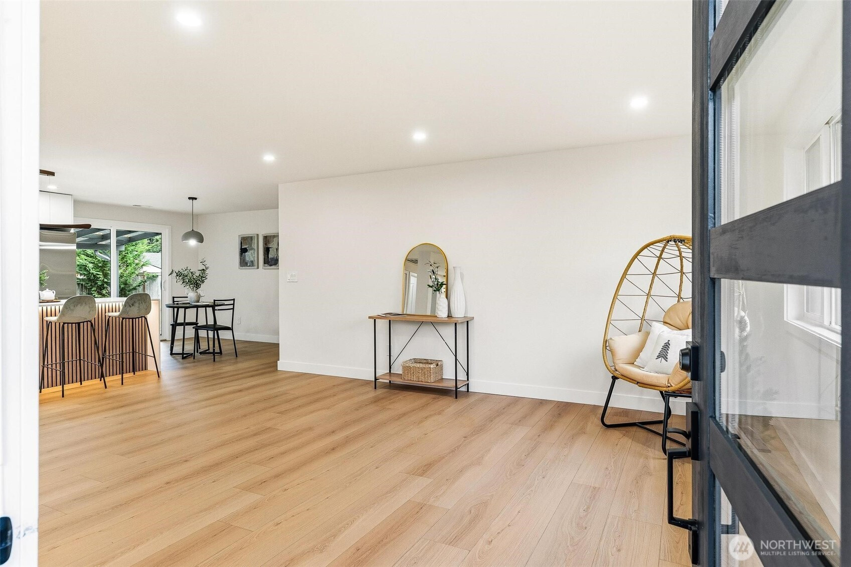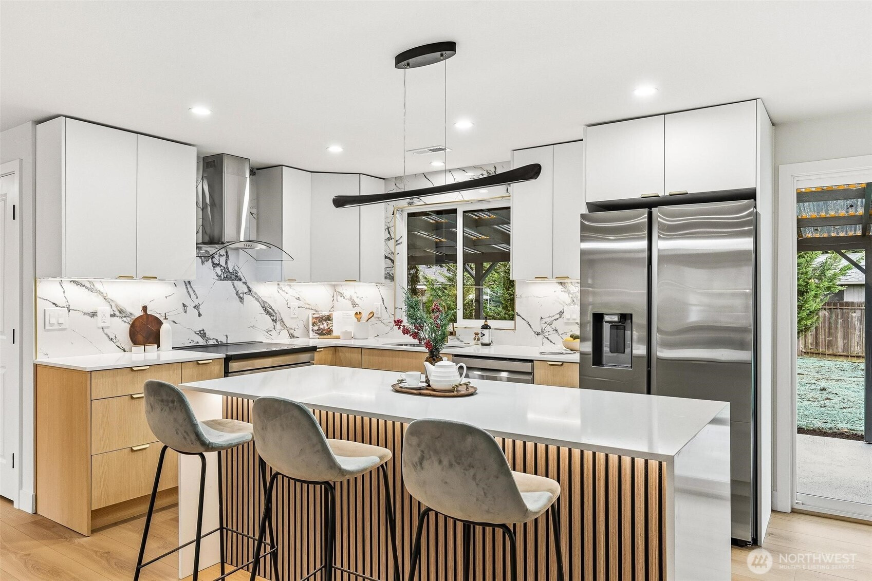 Experience effortless one-level living in this fully modernized three-bedroom rambler where the seller has thoughtfully updated every detail. Clean lines and elegant finishes elevate each room, anchored by a sleek, striking electric fireplace that sets a contemporary tone. The open-concept layout flows into a stunning modern kitchen with gleaming quartz countertops and brand-new stainless steel appliances. Retreat to the grand primary suite featuring a spa-inspired ensuite for ultimate relaxation. A spacious backyard offers room to unwind or entertain. Ideally located near Wanschers Park, Hicks Lake, and the South Sound Shopping Center, this home blends modern style with unbeatable convenience.