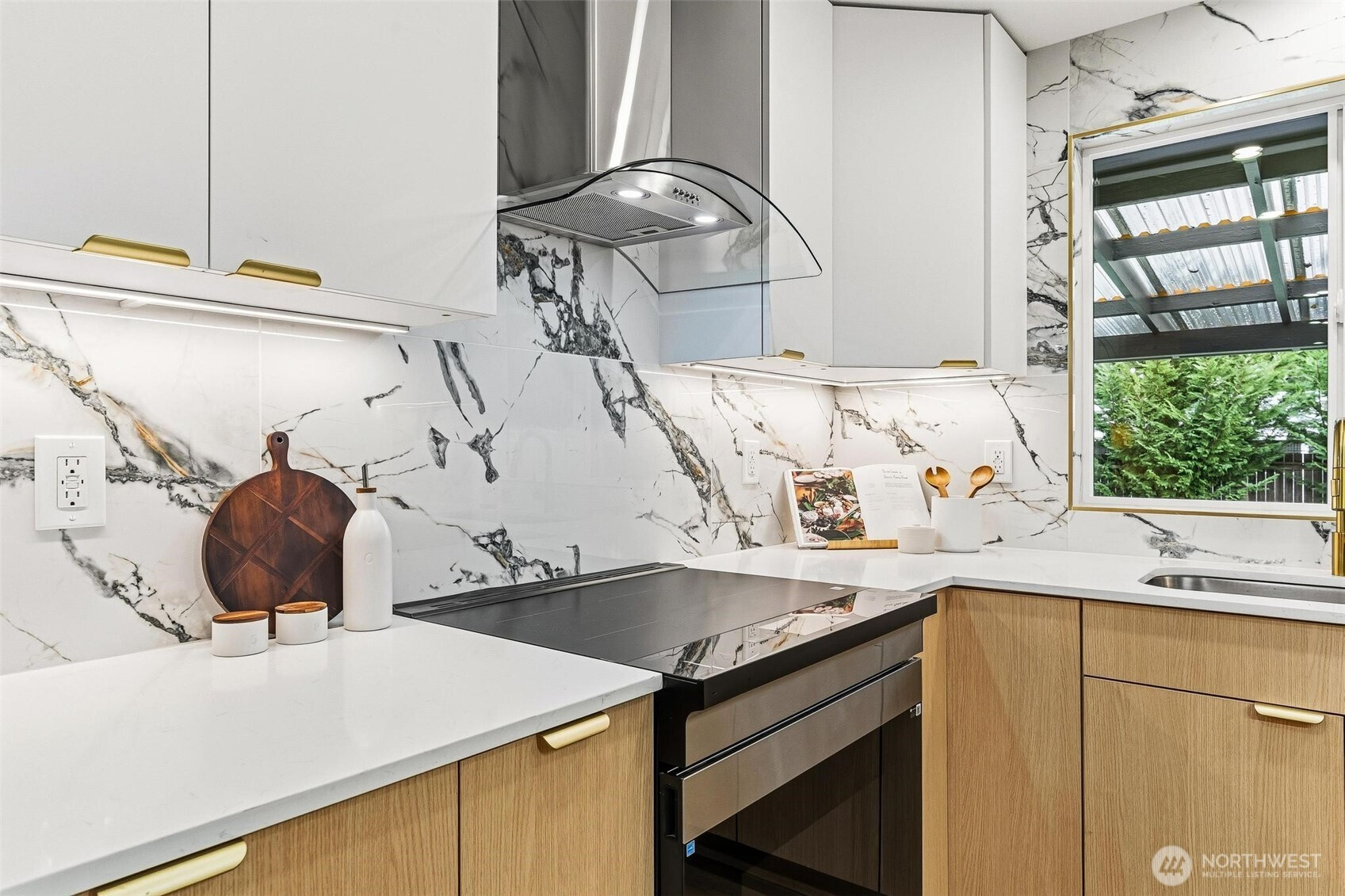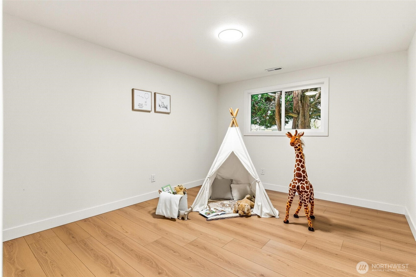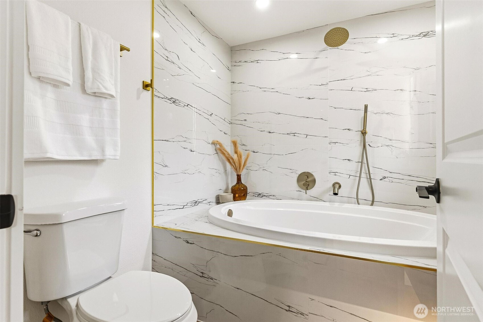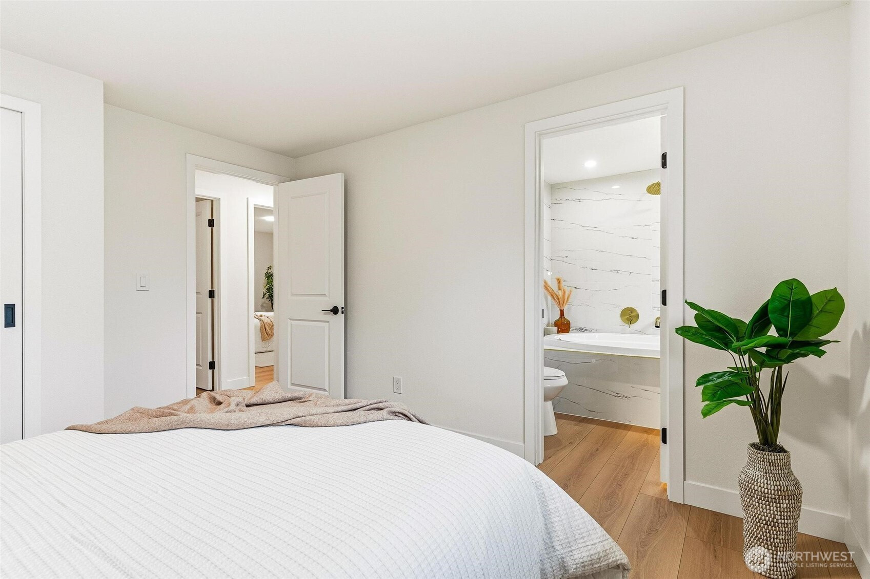 Experience effortless one-level living in this fully modernized three-bedroom rambler where the seller has thoughtfully updated every detail. Clean lines and elegant finishes elevate each room, anchored by a sleek, striking electric fireplace that sets a contemporary tone. The open-concept layout flows into a stunning modern kitchen with gleaming quartz countertops and brand-new stainless steel appliances. Retreat to the grand primary suite featuring a spa-inspired ensuite for ultimate relaxation. A spacious backyard offers room to unwind or entertain. Ideally located near Wanschers Park, Hicks Lake, and the South Sound Shopping Center, this home blends modern style with unbeatable convenience.