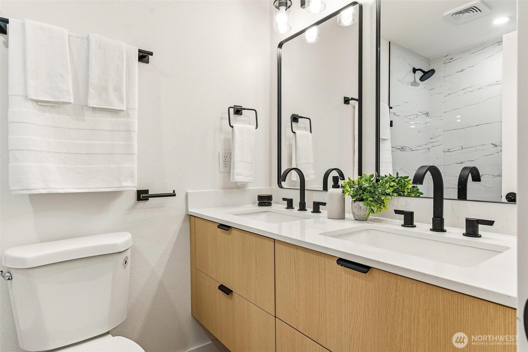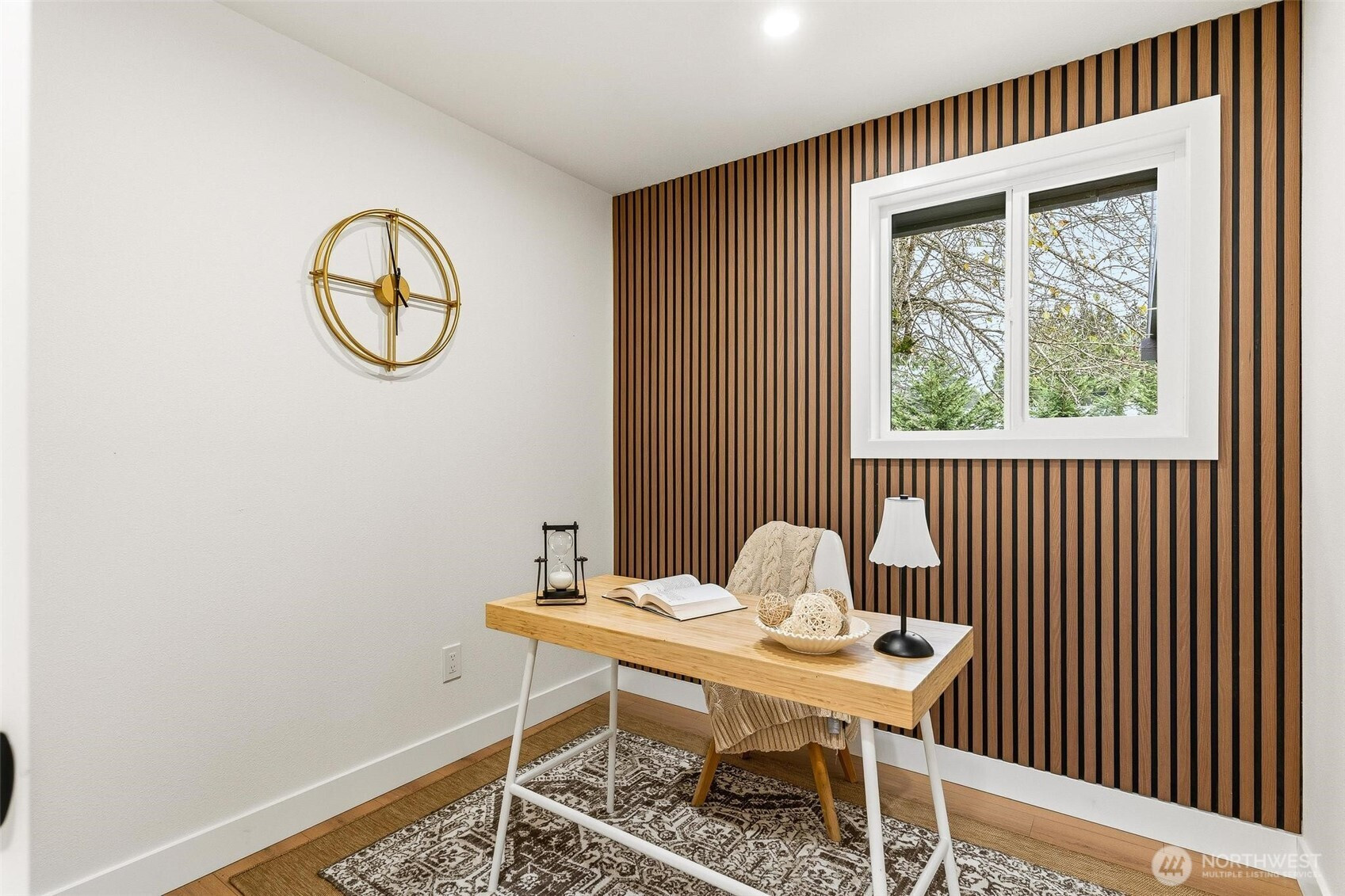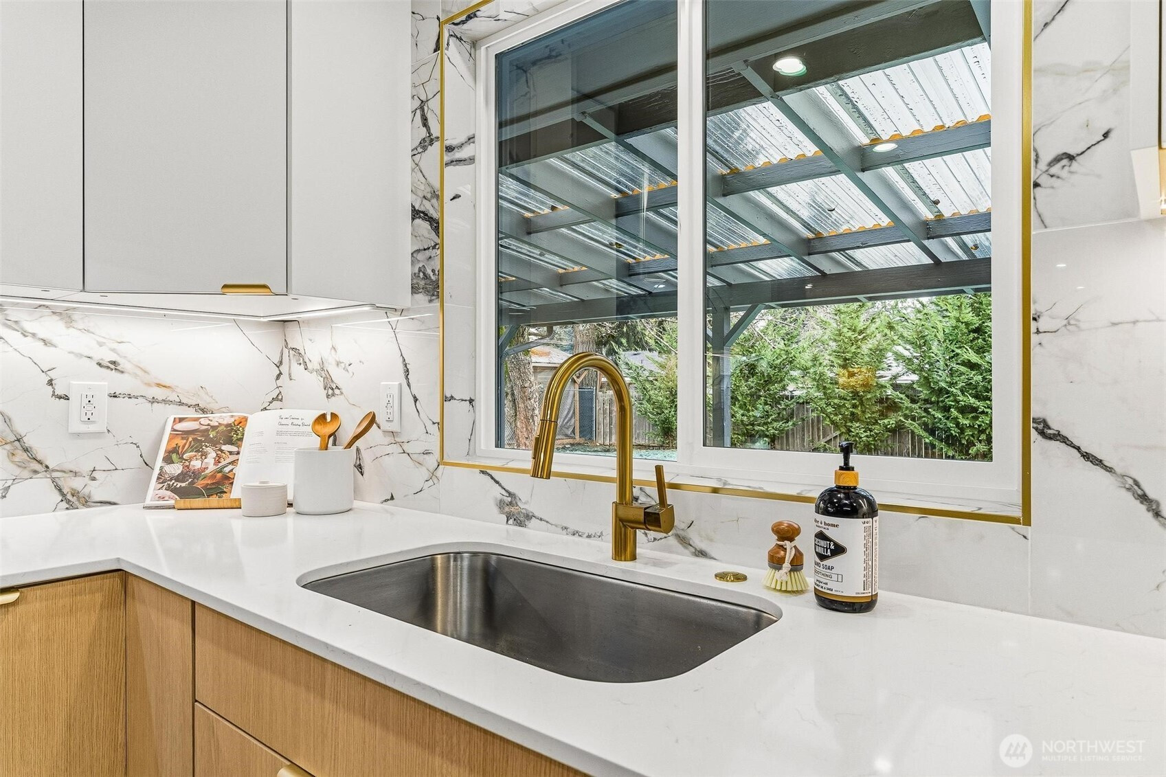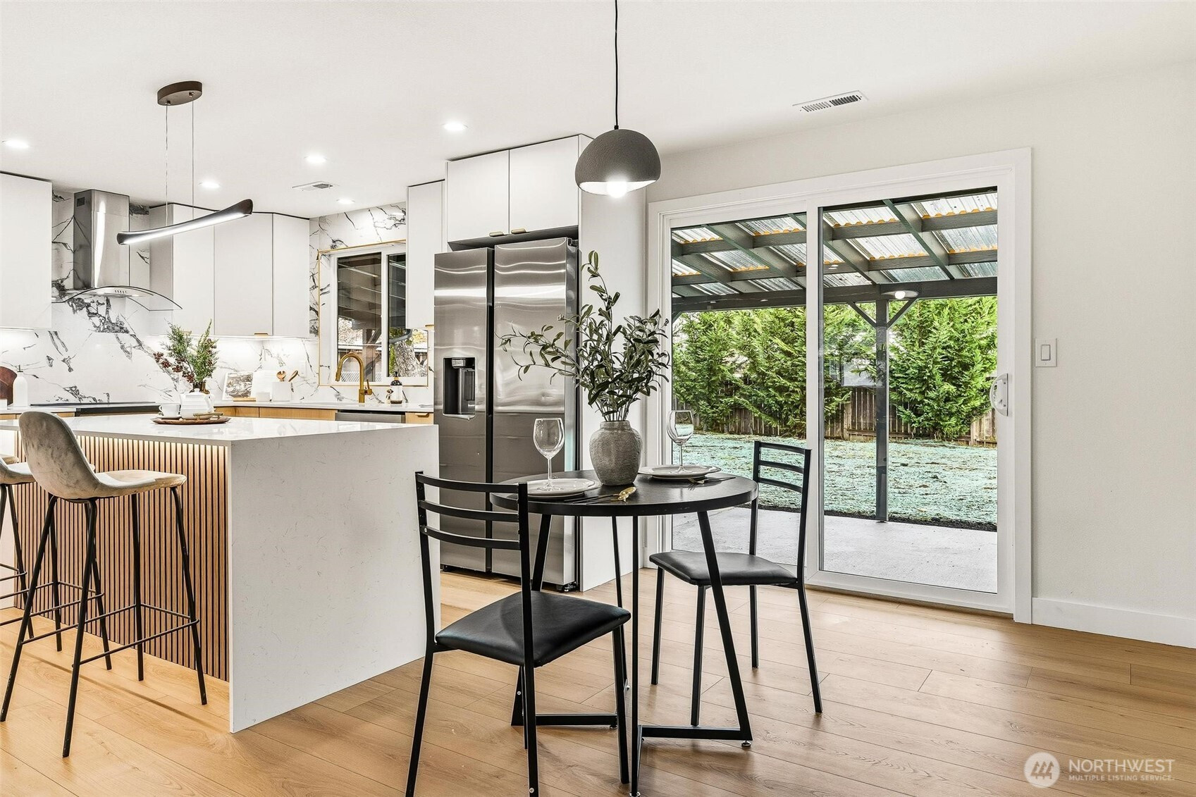 Experience effortless one-level living in this fully modernized three-bedroom rambler where the seller has thoughtfully updated every detail. Clean lines and elegant finishes elevate each room, anchored by a sleek, striking electric fireplace that sets a contemporary tone. The open-concept layout flows into a stunning modern kitchen with gleaming quartz countertops and brand-new stainless steel appliances. Retreat to the grand primary suite featuring a spa-inspired ensuite for ultimate relaxation. A spacious backyard offers room to unwind or entertain. Ideally located near Wanschers Park, Hicks Lake, and the South Sound Shopping Center, this home blends modern style with unbeatable convenience.