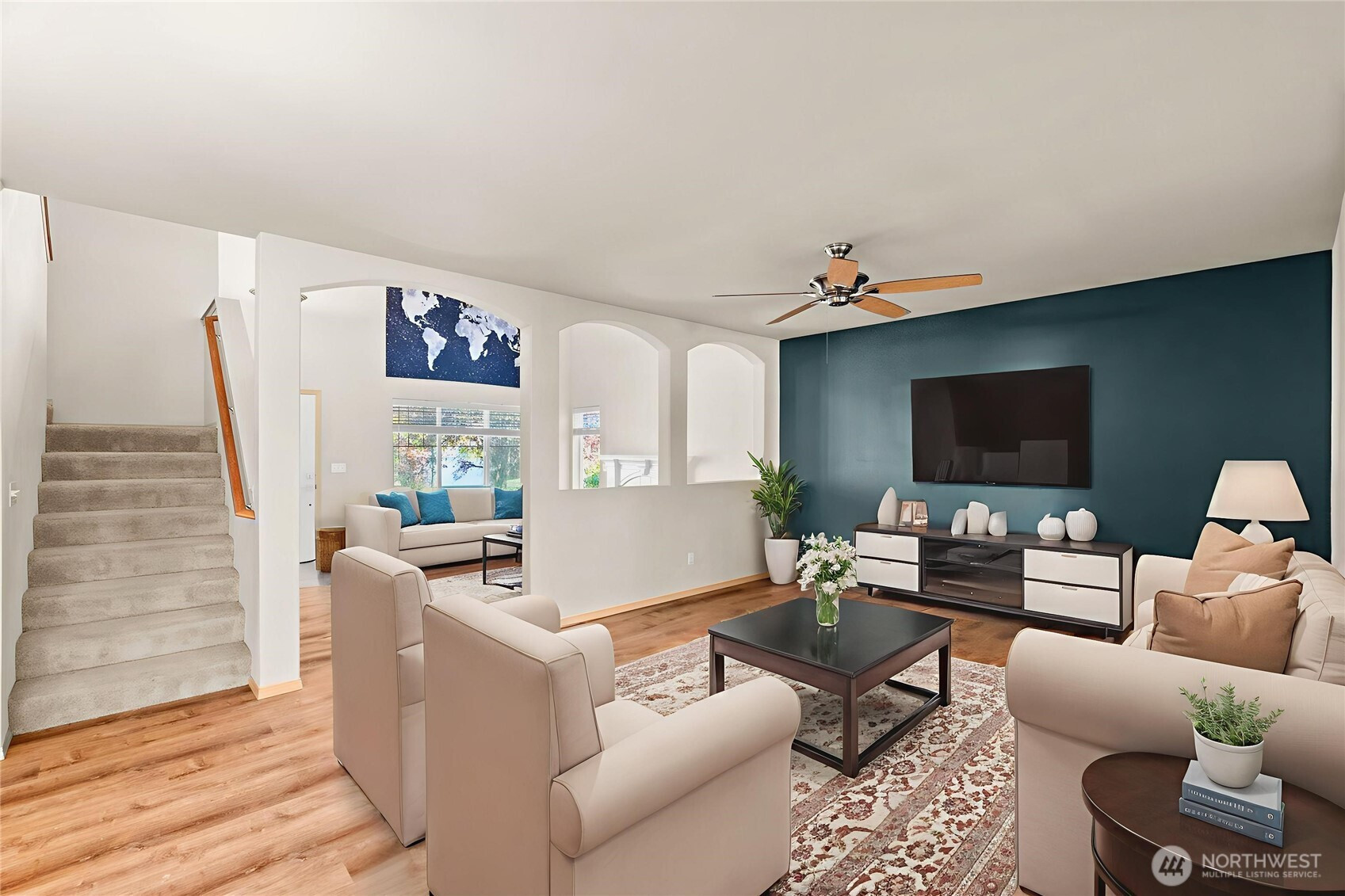 Discover this beautifully maintained West Olympia gem! Featuring brand new life-proof vinyl flooring, a new roof and exterior paint (2020), 4 bedrooms, 2.5 baths, and vaulted ceilings, this home offers style and comfort. The open-concept layout is light and bright, with a spacious vaulted primary suite boasting a 5-piece en suite and walk-in closet. Spacious 2-car garage with extra-tall ceilings, perfect for maximizing storage.. Enjoy the fully fenced backyard with sprinkler system, nearby greenbelt with walking trail, and close proximity to Evergreen college, SPSCC, Capital mall, downtown, and I-5, for an easy commute to JBLM. Move-in ready—don’t miss it!
