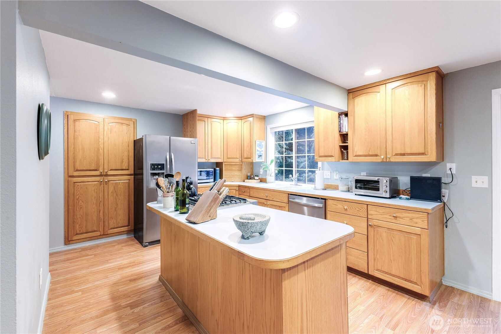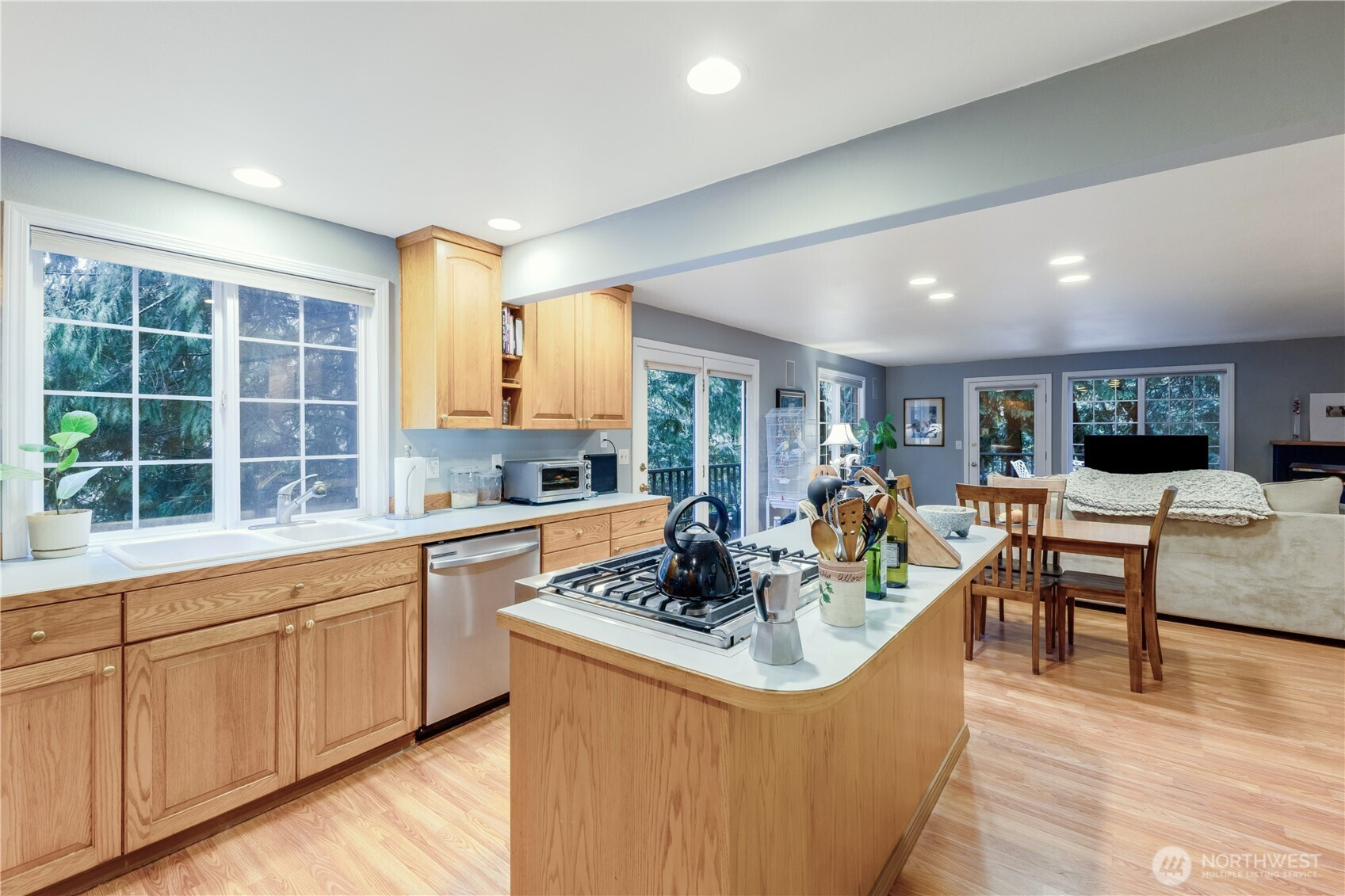 Privacy, nature, and community come together in this Cooper Point home located in the sought-after Tamoshan neighborhood. Tucked at the end of a quiet cul-de-sac and backing to wooded community land, the setting offers a peaceful retreat with frequent wildlife sightings right from your wrap-around deck. Inside, 2,134 sq ft of living space features a distinctive split-staircase floor plan, four spacious bedrooms, and 2.25 updated bathrooms. Expansive windows fill multiple living areas with natural light, creating inviting spaces for everyday living and entertaining. The primary suite offers vaulted ceilings, a private ¾ bath, and generous closet space. Designed for year-round comfort and efficiency, the home has been fully weatherized and insulated. A finished storage room with power adds flexible space for hobbies, projects, or additional storage. Recent updates include a new gas range, newer appliances, and an updated furnace. Residents of Tamoshan enjoy exclusive access to a private community beach, park, and recreation area—making this home not just a place to live, but a lifestyle to enjoy.