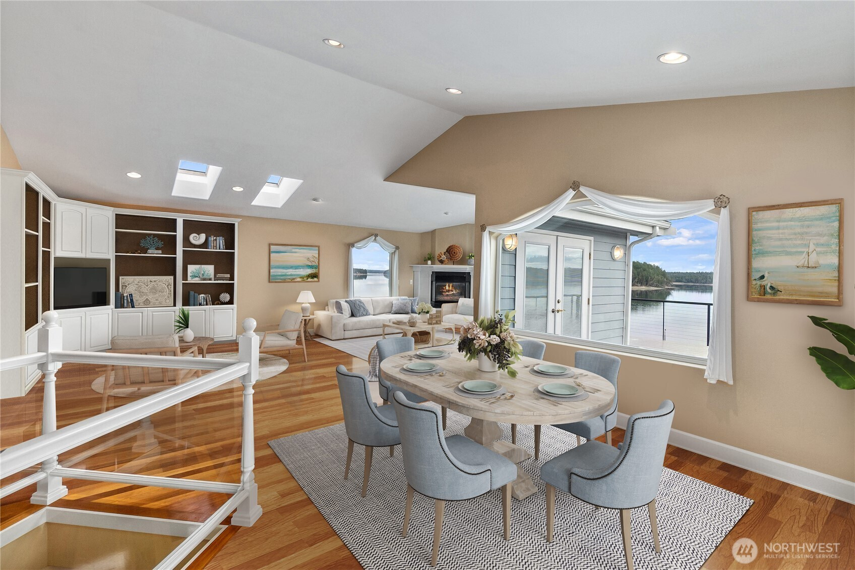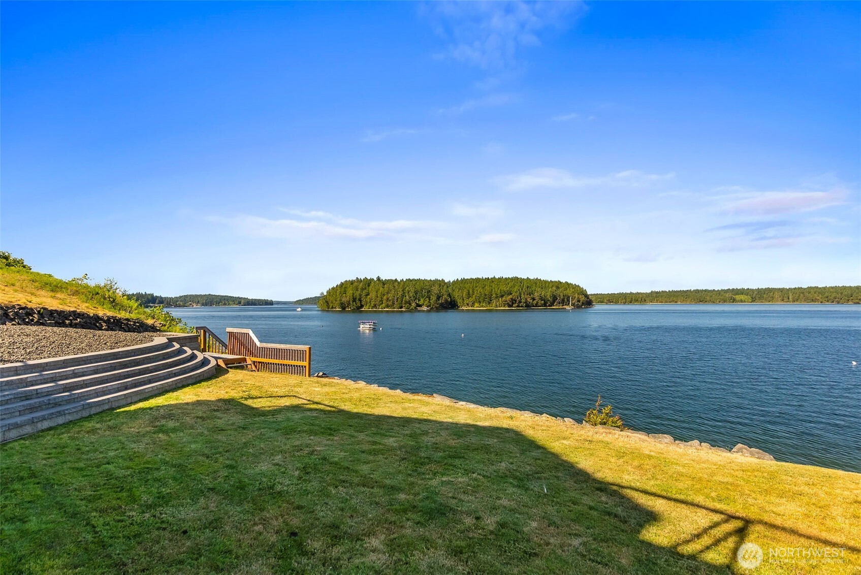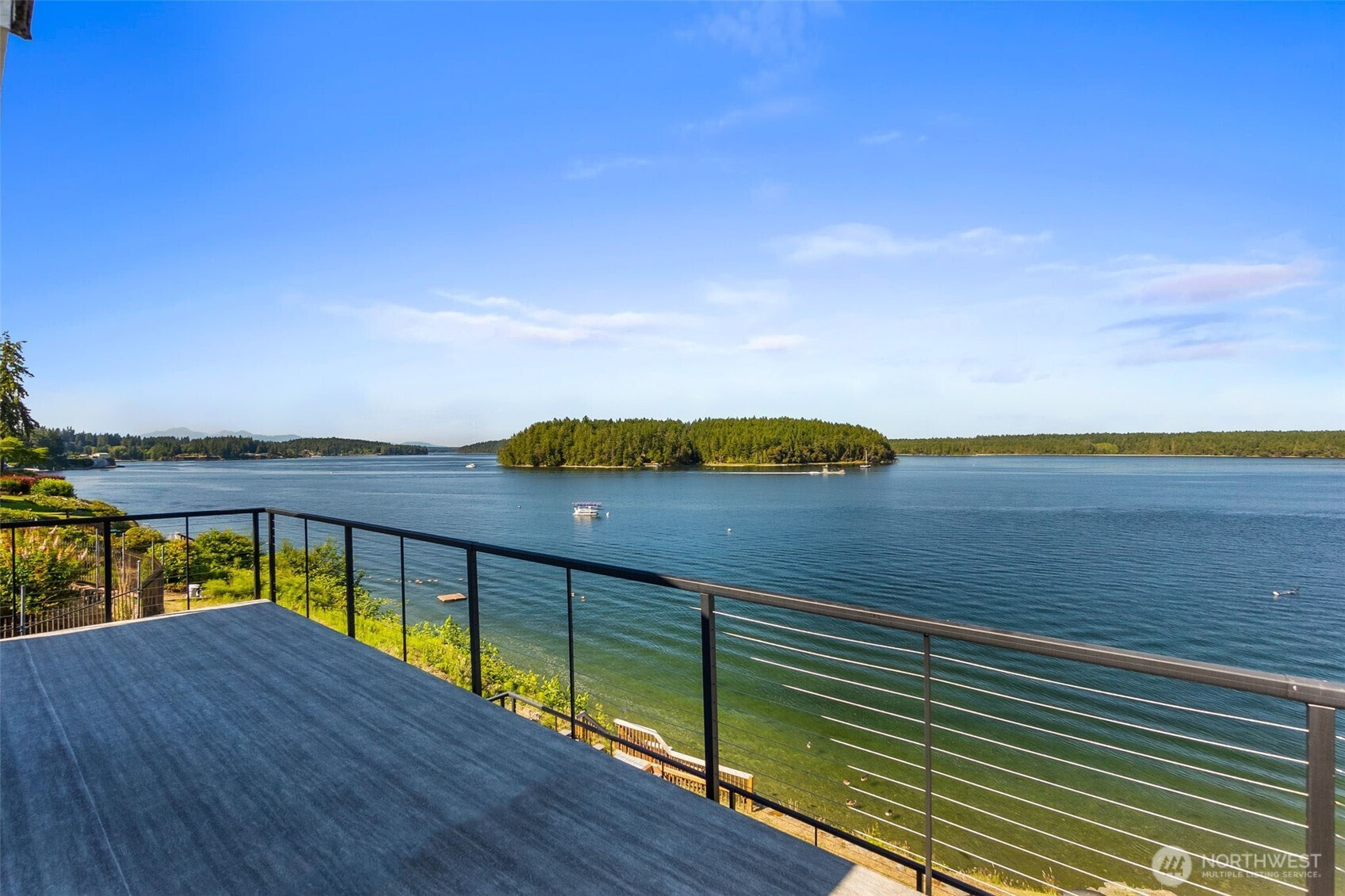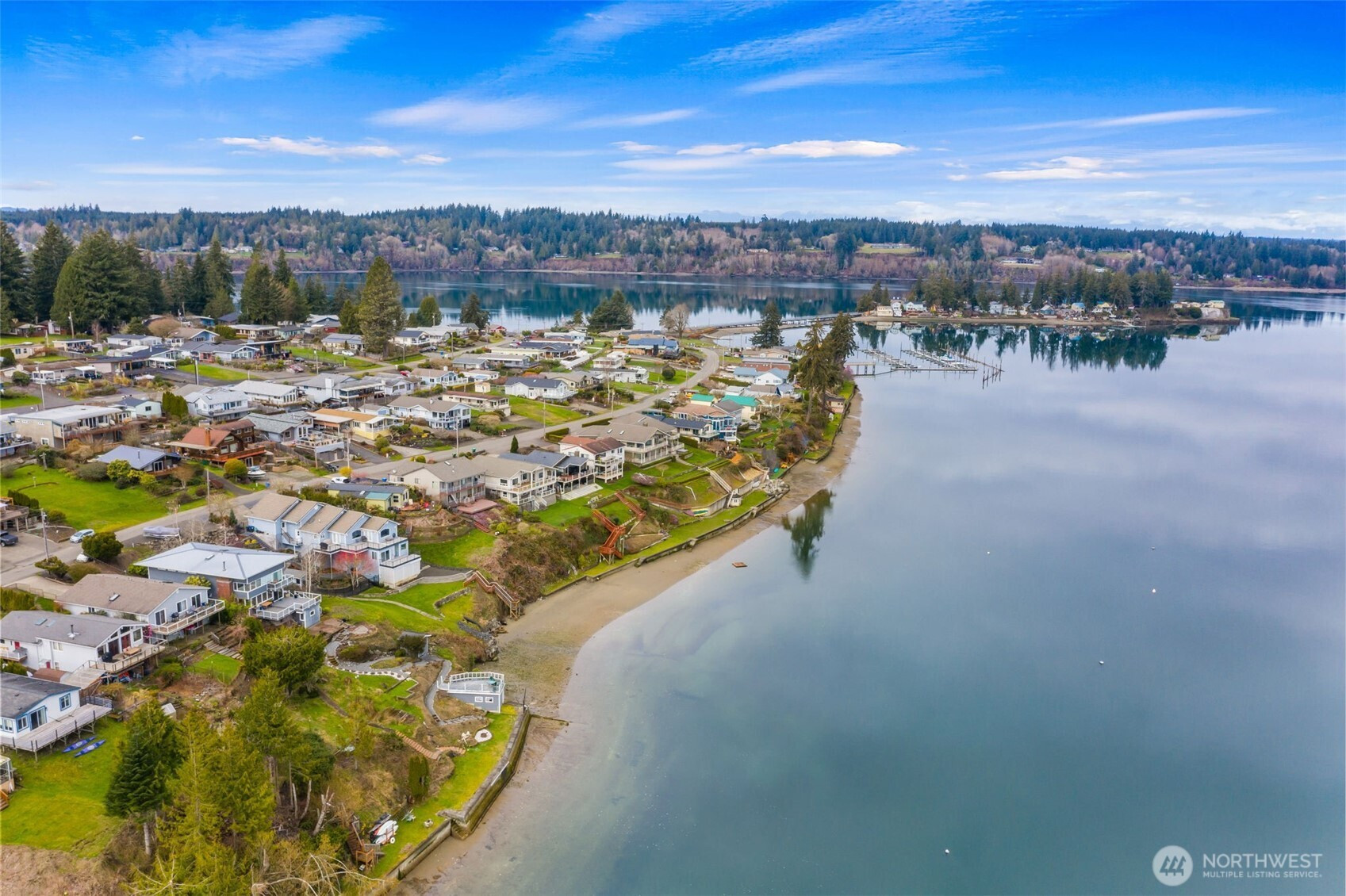 Wake up to breathtaking sunrises over Mt. Rainier and Squaxin Passage in this impeccably maintained custom waterfront home. The views are truly unparalleled, spanning from the Olympic Mountains to the serene beauty of Hope and Squaxin Islands. Enjoy the ultimate coastal lifestyle with your bulkheaded waterfront and rare sandy beach, perfect for shoreline relaxation. The grounds are a private oasis, featuring fully fenced and irrigated landscaping, a gorgeous water feature, and a spacious view deck designed for entertaining against a world-class backdrop. Inside, the open-concept floor plan shines with vaulted ceilings, skylights, and rich cherry hardwood floors. The updated chef’s kitchen is a standout, boasting elegant soapstone counters, a gas cooktop, and an eating bar. The expansive downstairs primary suite serves as a luxury retreat, featuring a private sliding glass door to the deck with stunning views of the inlet and islands. The spa-like primary bath includes a walk-in shower, dual quartz vanity, and a jetted tub positioned perfectly to capture those waterfront vistas. Year-round comfort is ensured with a high-efficiency propane furnace and heat pump system. Perfect for entertaining, the property has room for parking 7 vehicles. This home also enjoys fantastic community amenities: a private marina, boat launch, clubhouse, and playground. Combining meticulous care with an unbeatable location, this residence offers a waterfront lifestyle that simply cannot be beat.