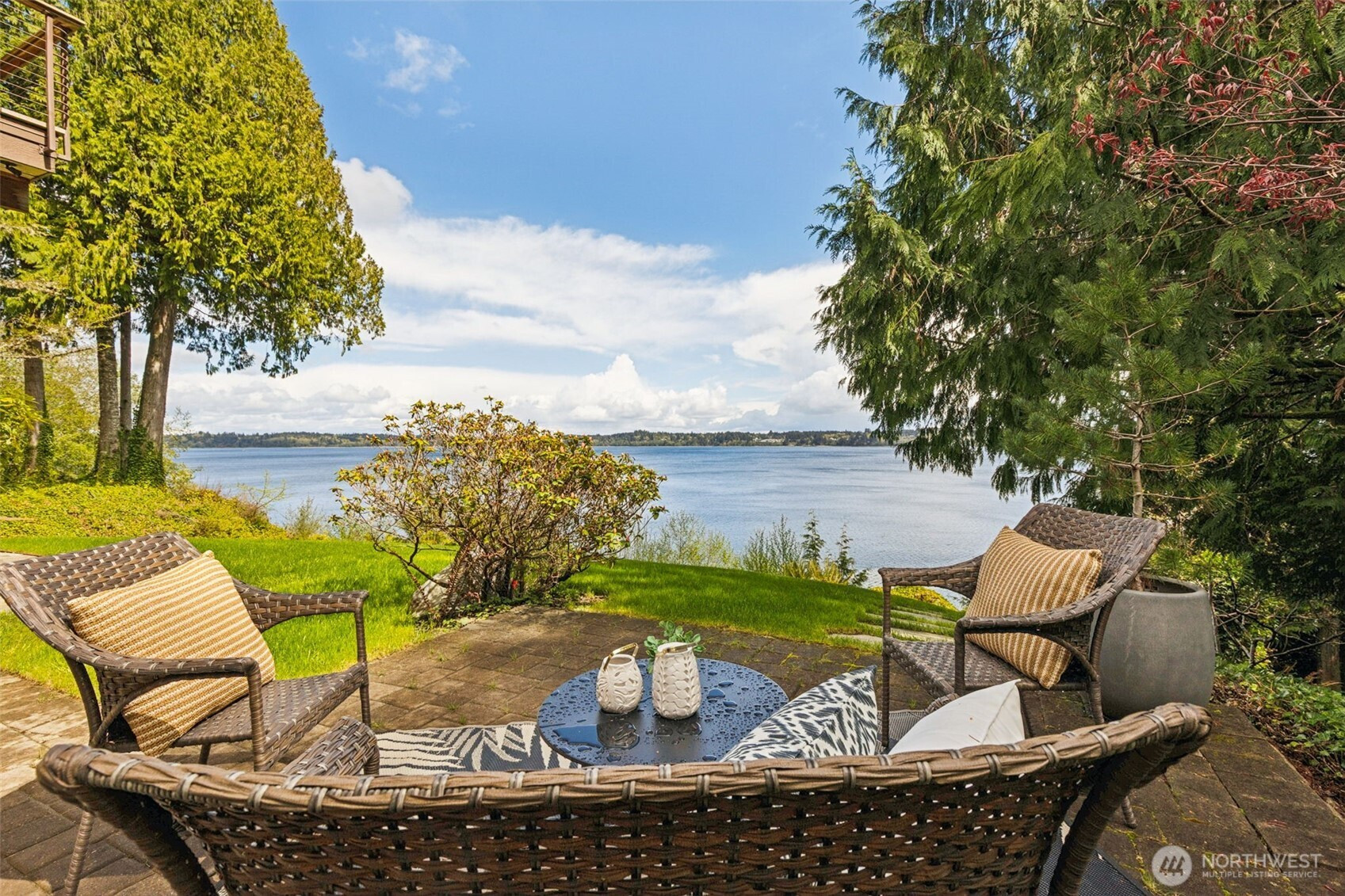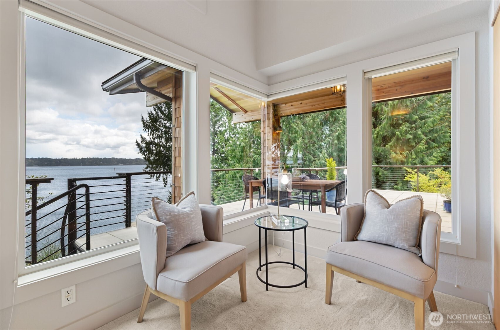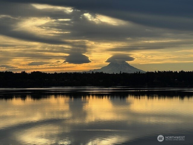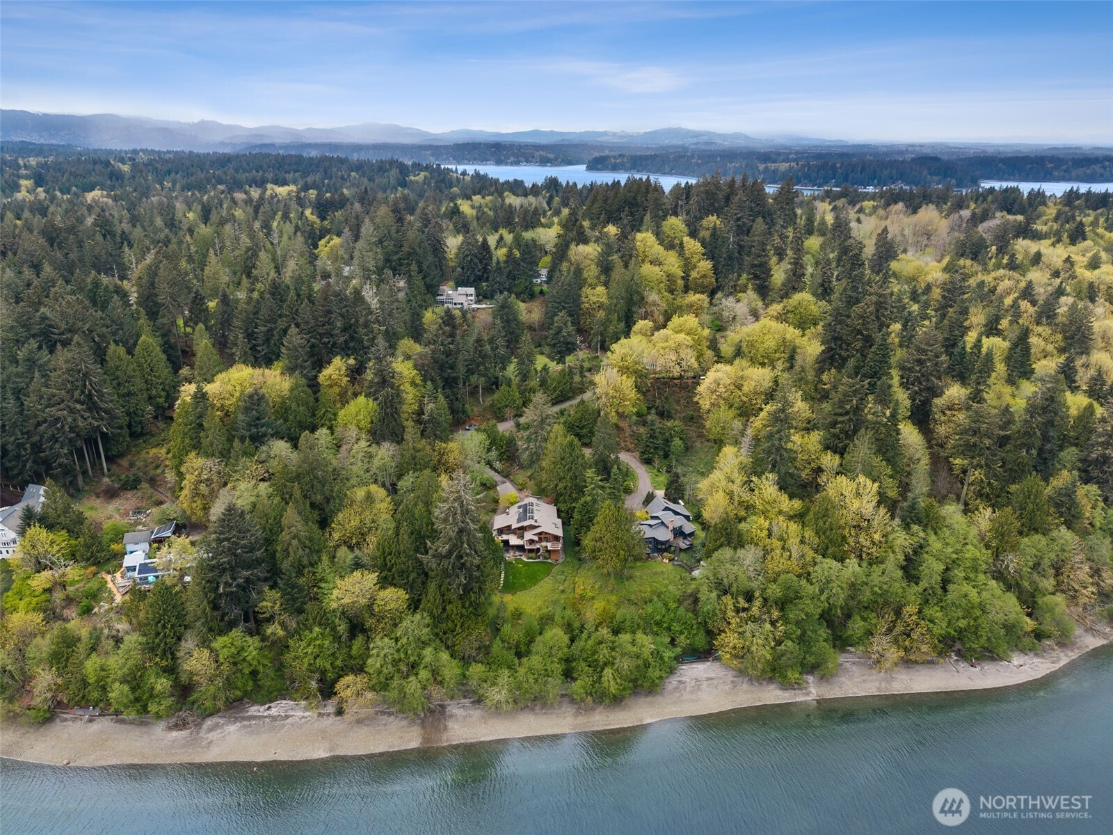 Magnificent Mort James-designed Cooper Point WATERFRONT home on 150' of beach & sparkling salt water of Budd Inlet! This spectacular 2,635 SF retreat delivers stunning impact with mostly one-level living and clean, modern architectural lines. Enter the dramatic foyer and grand gallery-style hallway, perfect for showcasing art and personal style, leading to BREATHAKING VIEWS of Mt RAINIER and Puget Sound. The chef’s kitchen features soaring ceilings, custom cabinetry in natural cherry, maple with Koa wood trim, plus Dacor and Sub-Zero appliances. Bar seating overlooks the gorgeous great room with vaulted ceiling, abundant natural light, and a cozy slate-surround fireplace. A versatile office/guest room includes a Murphy bed, built in desk & private balcony. Enjoy the waterfront dining room with a wall of glass and seamless access to an expansive paver deck for entertaining. A private hall leads to a second full ensuite bedroom. The primary suite is a resort escape with high ceilings, gas fireplace, deck and a hot tub overlooking the water, plus a spa-like bath with glass block shower and generous walk-in closet. Utility room with dumbwaiter to garage and ample storage. Lower garage level includes a compact exercise room, huge dry storage rm, a 2-bay garage plus a 3rd garage bay, and a 2-bay carport. Wired for generator, solar panels, newer mechanicals & more. Meander the path to beach to appreciate this irreplaceable waterfront gem! Peaceful, pristine, and unforgettable!