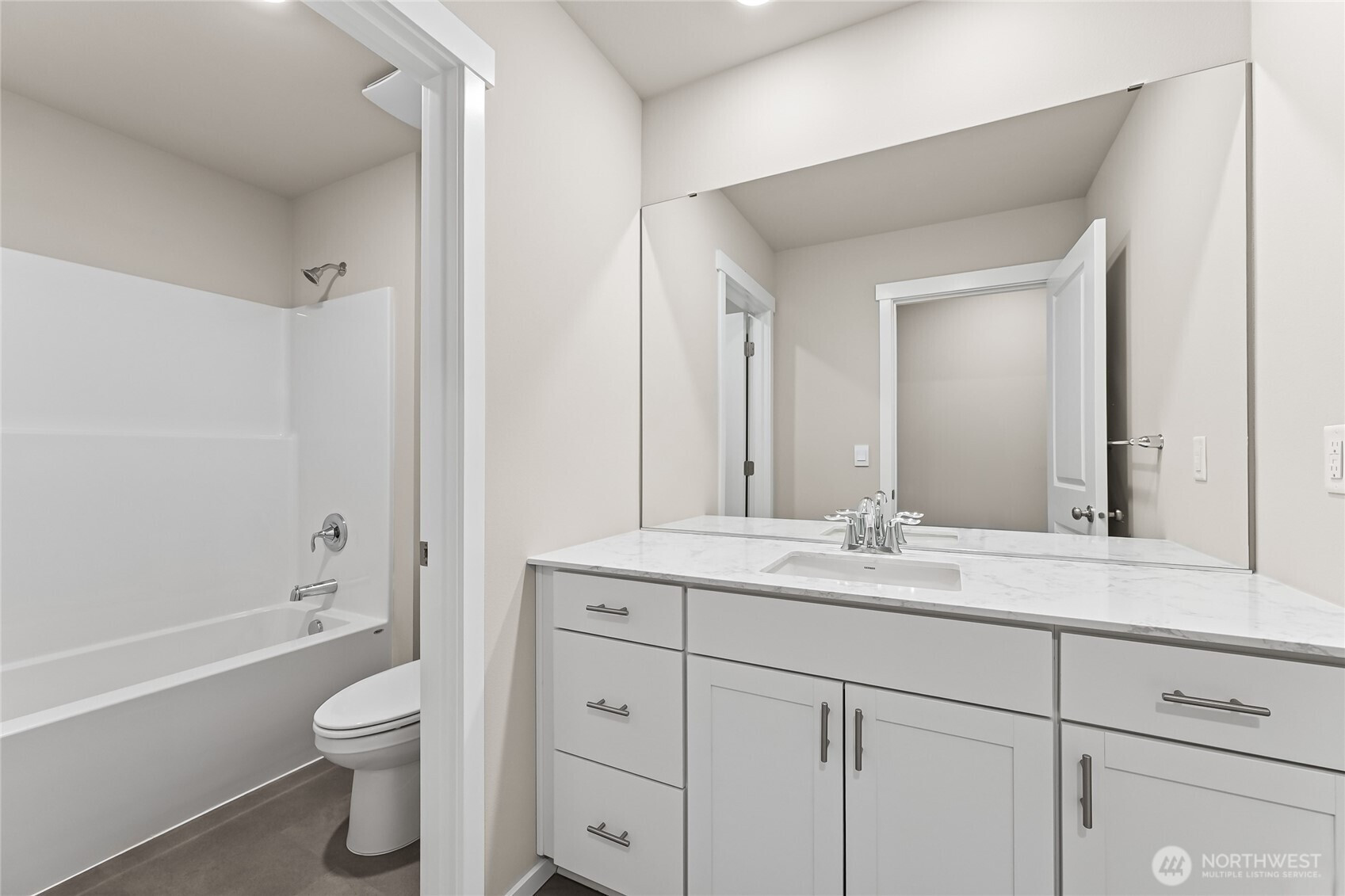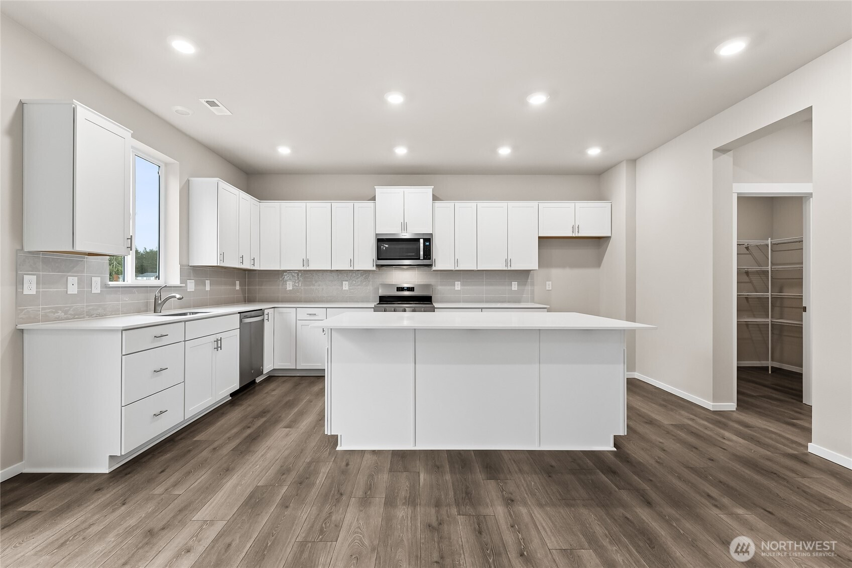 Welcome to Sleater Crossing by D.R. Horton, a new construction community on the border of Lacey and Olympia! The Stafford Plan is a beautifully designed 6-bed, 2.75-bath home situated on a spacious corner lot adjacent to public land. A main-floor bedroom and 3/4 bath offer convenient flexibility for guests or a home office. The open kitchen, dining, and great room create a connected, comfortable main-floor experience. Upstairs, generously sized bedrooms and ample living space provide room for everyone. The home features hard surface flooring throughout the main level, paint-grade cabinets with soft-close drawers and doors, white millwork, spindled staircase railing, stainless steel appliances with gas range, and quartz countertops. A heat pump provides efficient year-round comfort. A pre-wired 50-amp circuit for EV charging is included. Smart home technology and D.R. Horton’s 10-year warranty come standard. Community amenities include a park, half basketball court, open green spaces, and walking trails. Easy access to I-5, JBLM (13.7 mi), and Olympia’s historic district. Served by North Thurston School District with all three schools within approximately 1 mile. Below market rates and a $10,000 buyer bonus available through the preferred lender for qualified buyers. Buyers must register their real estate brokers prior to or during their first visit, including open houses.