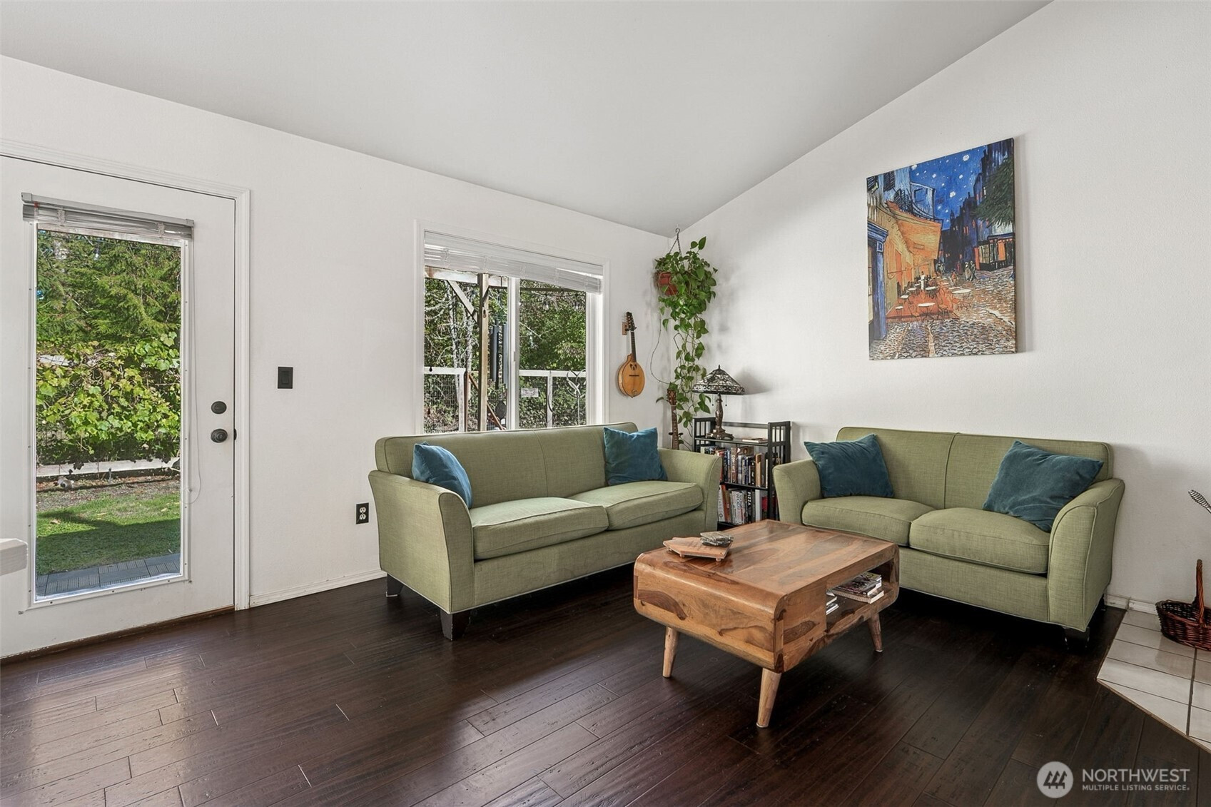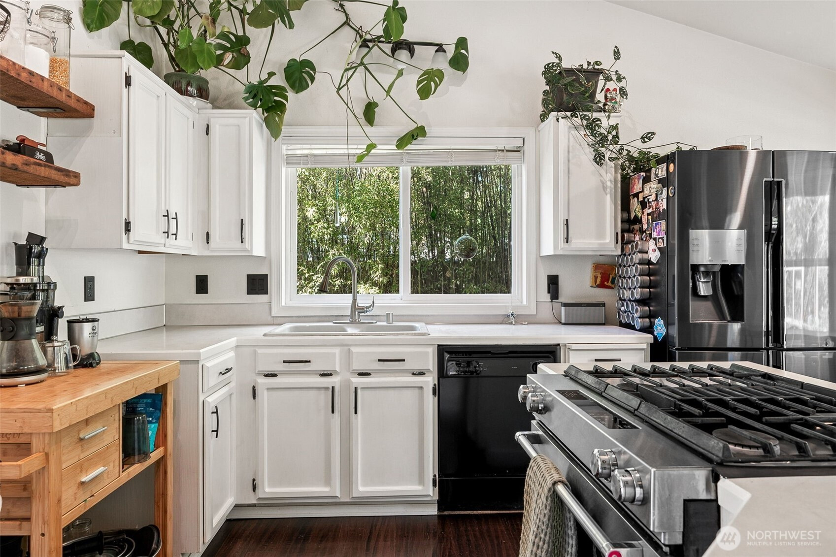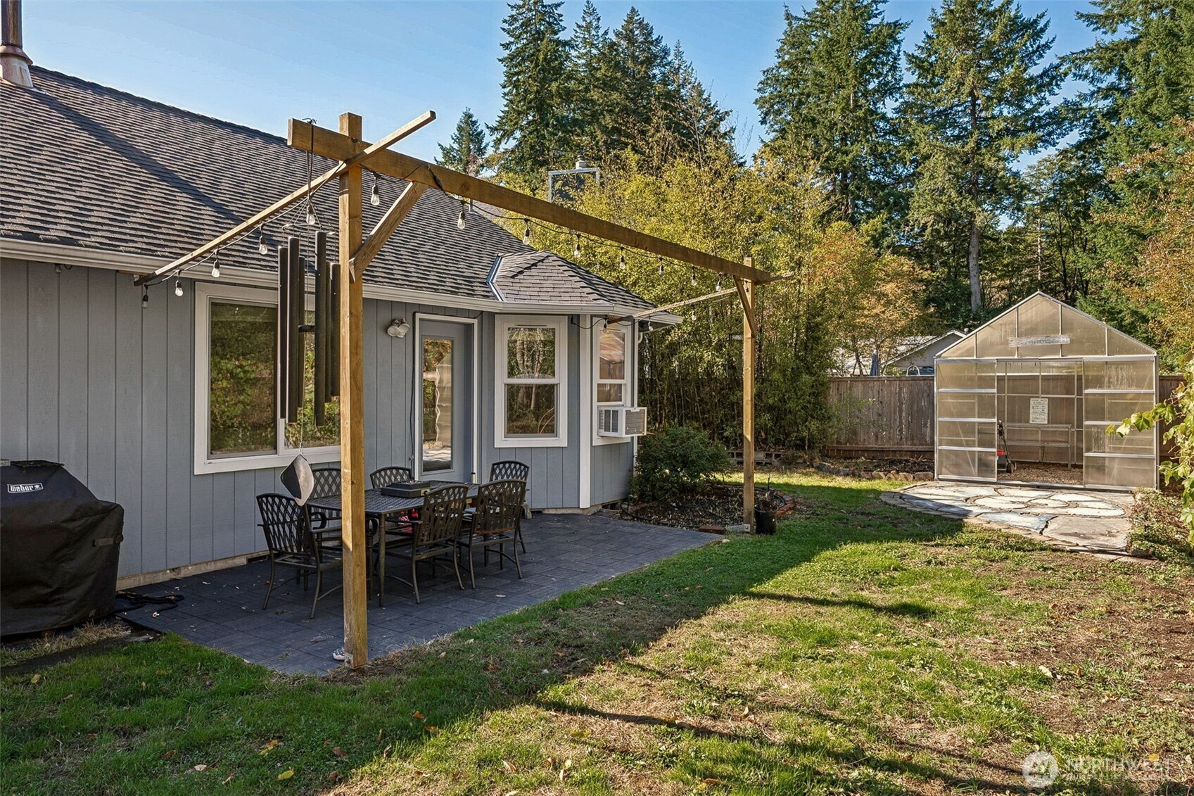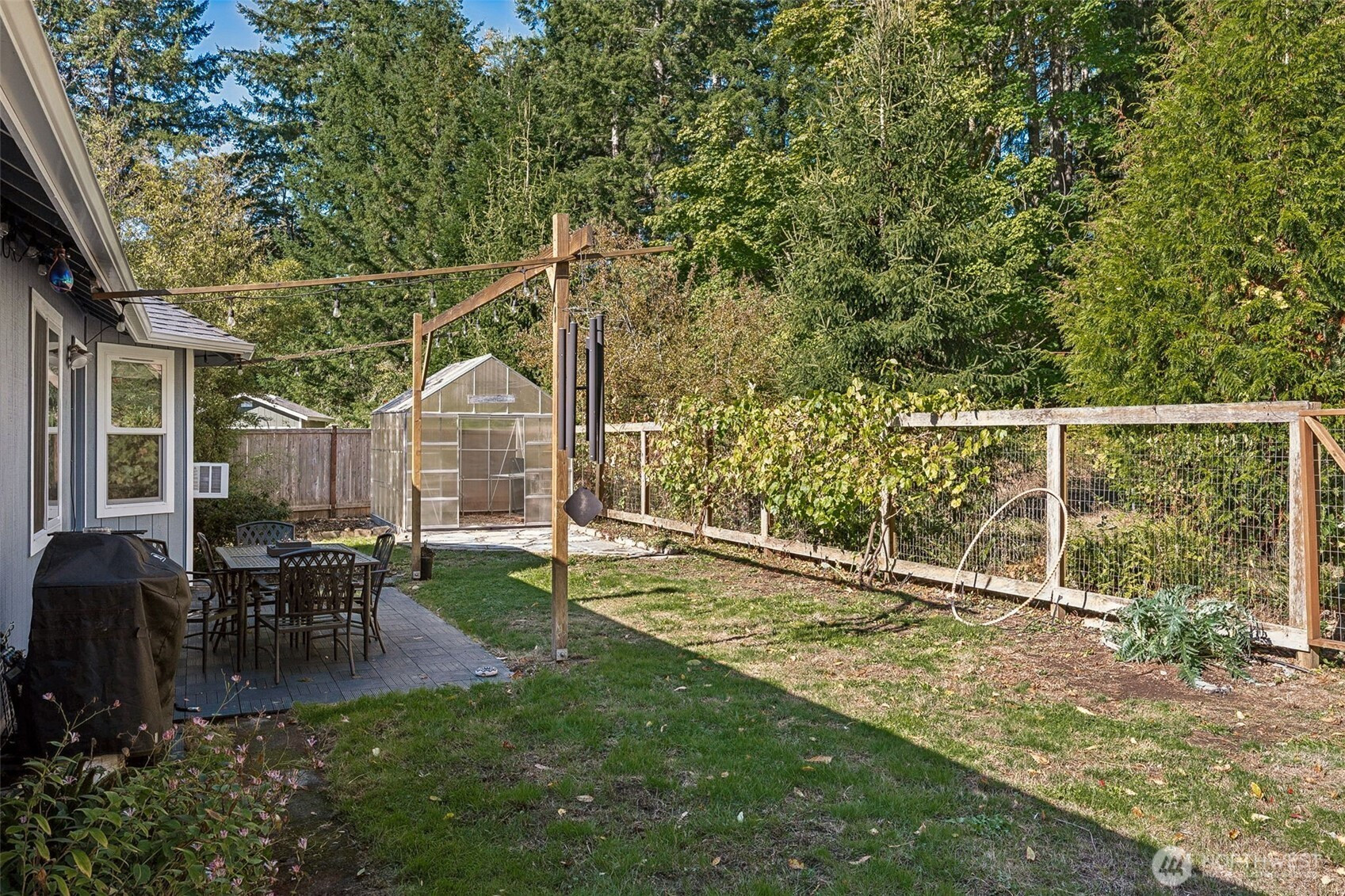 Vaulted ceilings and lots of windows make this spacious rambler the place you want to call home. You will love the gorgeous real hardwood floors, skylights and french doors. Three bedrooms, 2 full baths, a 2-car garage, oversized fully fenced yard, gas range and pantry. What more could you ask for? Oh, did I mention it is in a cul-de-sac in a quiet neighborhood within the popular Olympia School District? The backyard has established plantings and a greenhouse for your year-round gardening. Even better, it backs up to a large, wooded area which creates a private oasis to gather or relax. Priced competitively and ready for you! Schedule your private tour today.