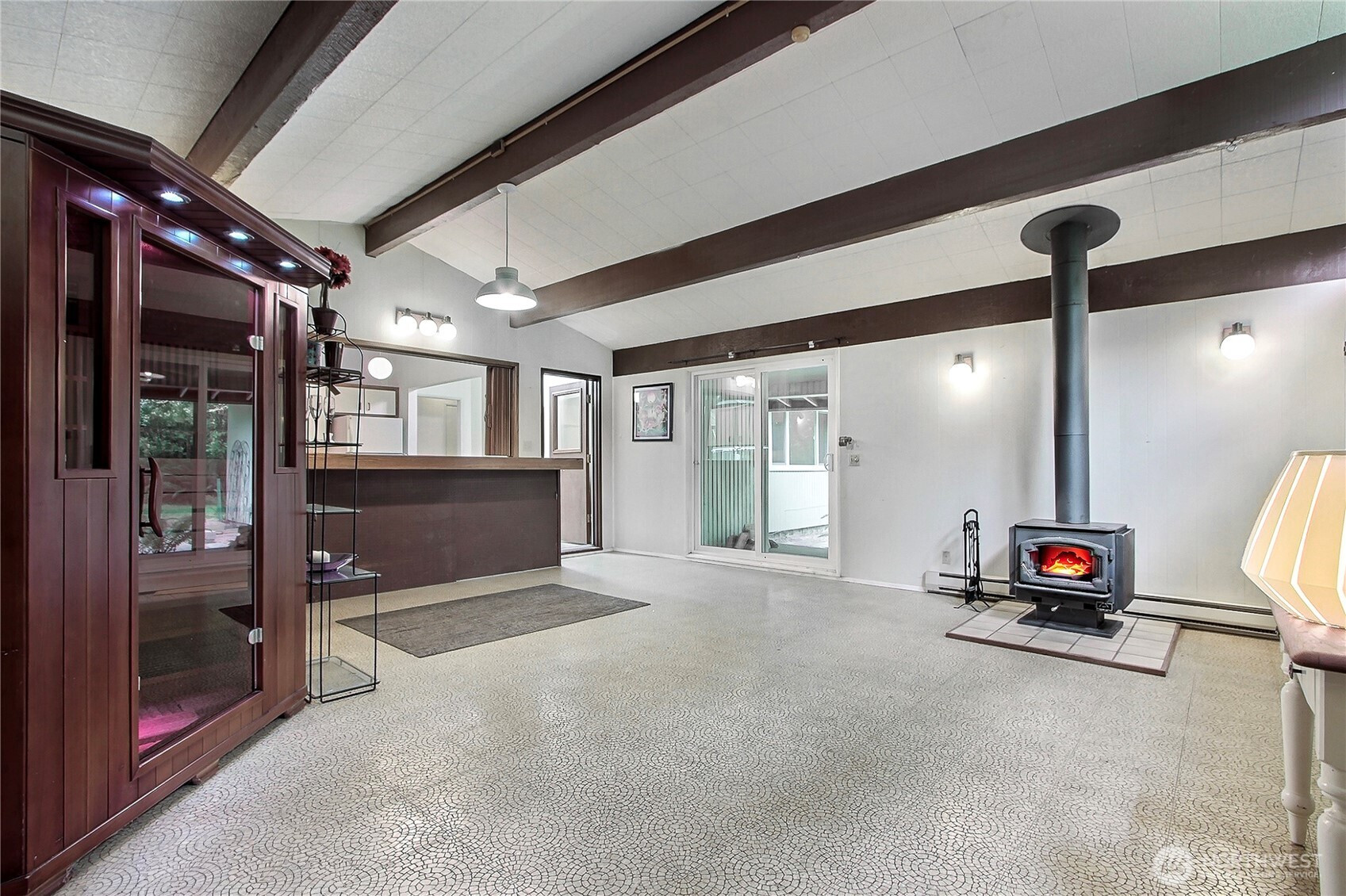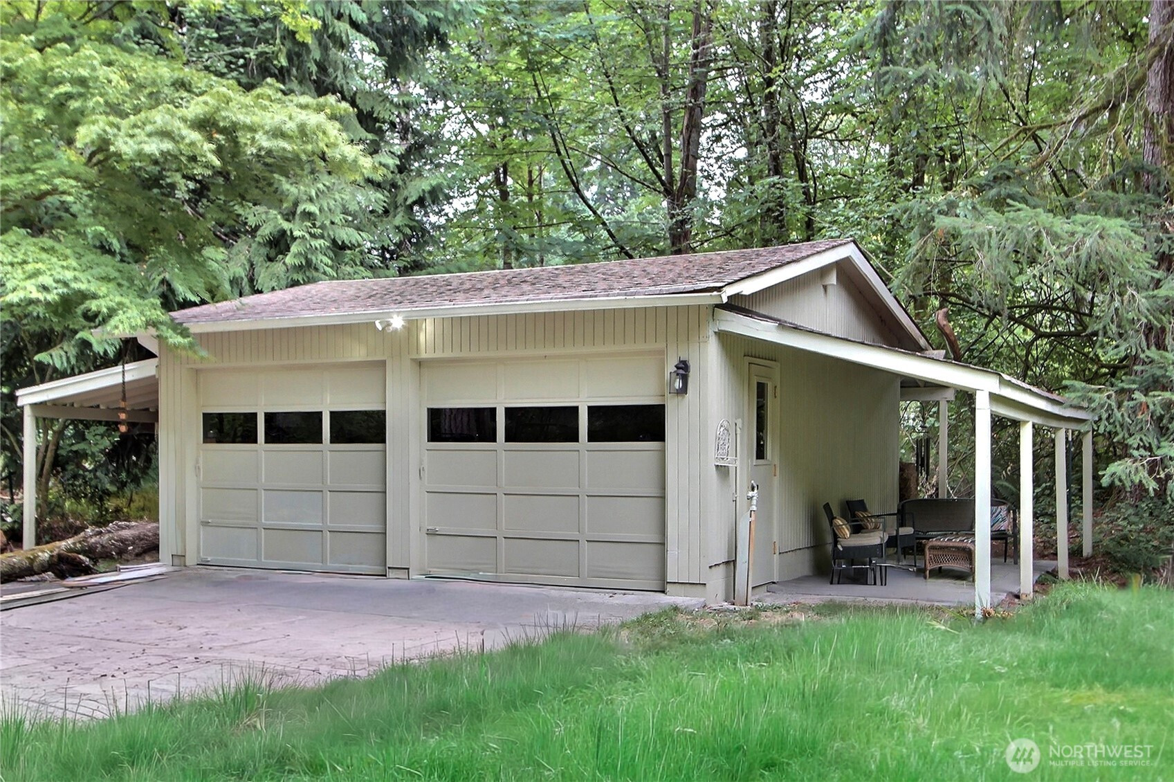 Discover the charm of this Westside home, a rare treasure within the sought-after Manzanita Beach community. Nestled on nearly two acres of serene, wooded seclusion, it is tucked back off the approximately 350 feet of road frontage. This gem features expansive outdoor living spaces perfect for entertaining or quiet contemplation. Inside, vaulted ceilings in several rooms amplify the spacious feel, while a cozy rec room with a woodstove provides direct outdoor access. This home accommodates diverse needs, featuring three bedrooms, a living room, a rec room, two additional versatile rooms, plus an attached greenhouse! Minutes from shopping, entertainment, and a beautiful beach just down the road. A couple of photos were photoshopped/staged.