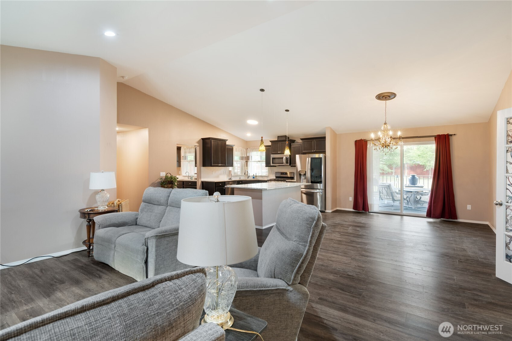 Fabulous better than new luxury home on amazingly developed acreage in lovely private setting. Open floorplan with expansive living spaces and potential ADU with stubbed-off second kitchen and private entrance. Spacious island kitchen with propane cookstove (and fireplace), butler's pantry, gleaming upscale finishes throughout. The stellar primary suite includes a walk-in closet and en-suite bath. Luxurious 16x20' covered deck in fenced backyard, fruit trees and berries in raised beds, greenhouse with power and water. Six RV spaces toward back of property with laundry facilities, utilities and holding tank for guests or relatives! Sellers considered renting out the RV spaces (potential $6k income/month) but did not wish to pursue permits. Much of the land is privacy fenced for the paradise-like backyard, and there is a generously sized and separated dog run. Graveled private road circles property outside of privacy fence and accesses the RV spaces. This property offers truly amazing lot development already in place for your private estate. Whether you are looking for luxurious privacy, multi-generational living, or potential rental income, it's all here. Incredible potential for DADUs or further development for income or additional space for???
