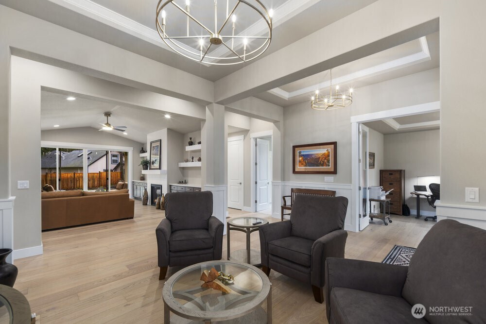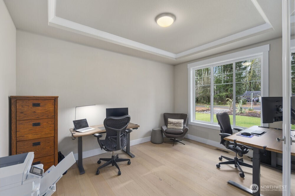 Luxury, style and convenience come together in this Rob Rice new build stunner in West Olympia’s Cooper Point! Situated on nearly an acre, this quality home is loaded with upgrades—think Monogram appliances, Cocoa maple cabinets, main floor primary suite w/spa bath, and dual walk-ins! Main also gives you 2 more bedrooms + den, while the upstairs flexes with a bonus room, wet bar, full bath, rec space. Covered patio + lush yard = easy outdoor living. Plus: $65K+ in extras incl. generator & custom storage solutions. All wrapped in gorgeous finishes and close to everything you love in Olympia. It's the kind of home that hugs you back. Must see!
