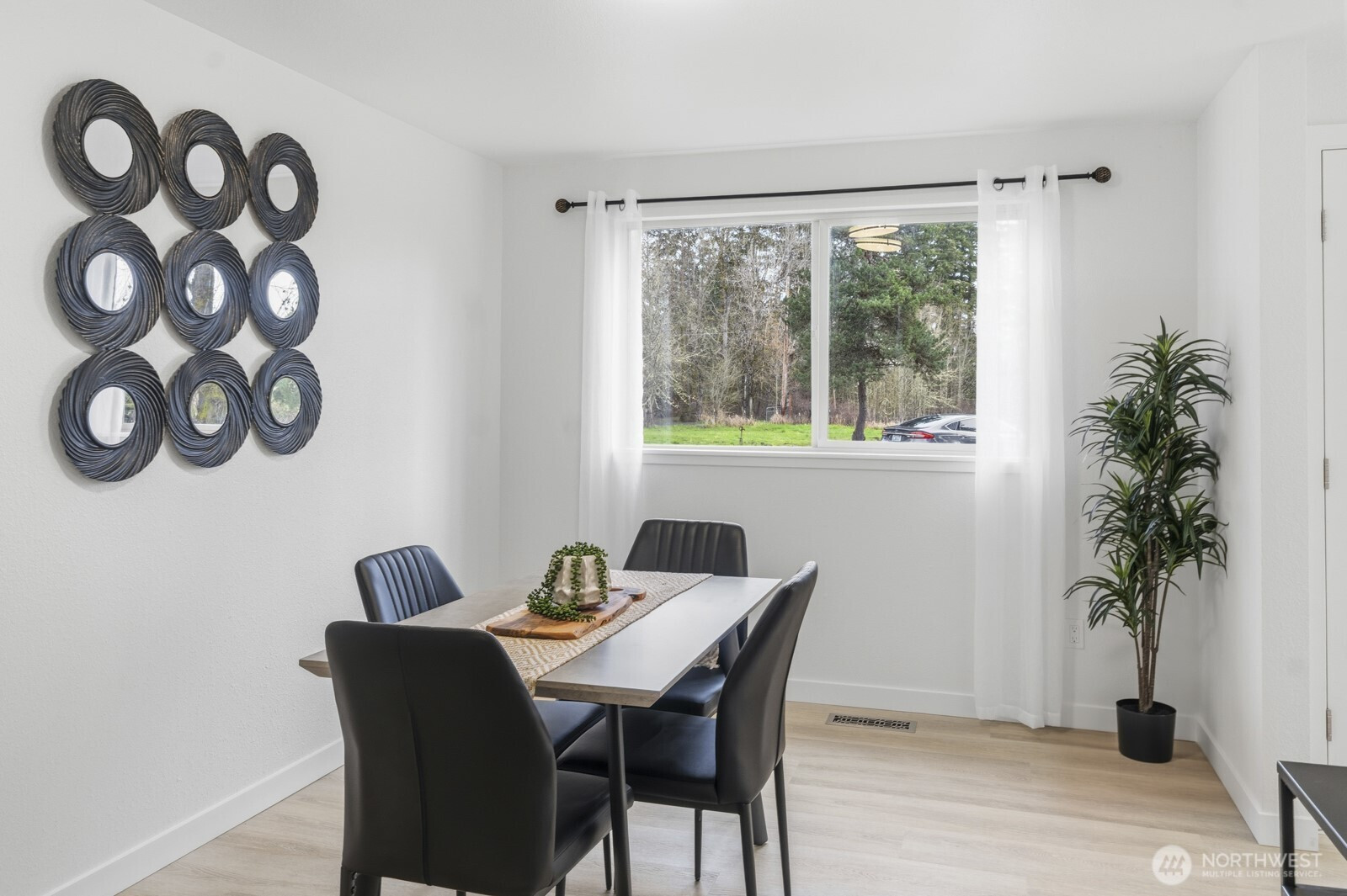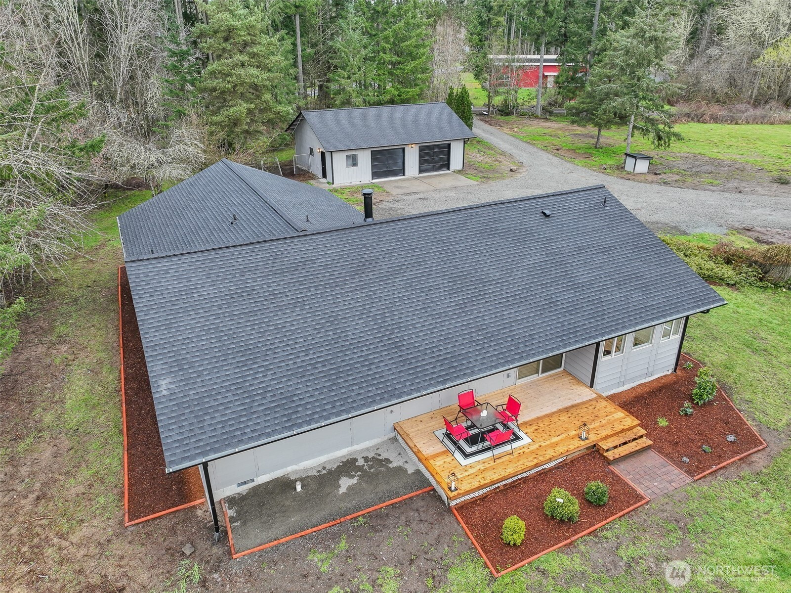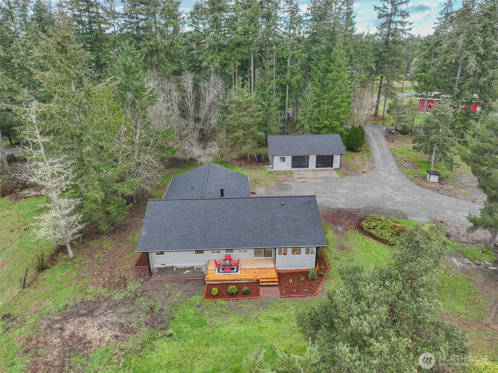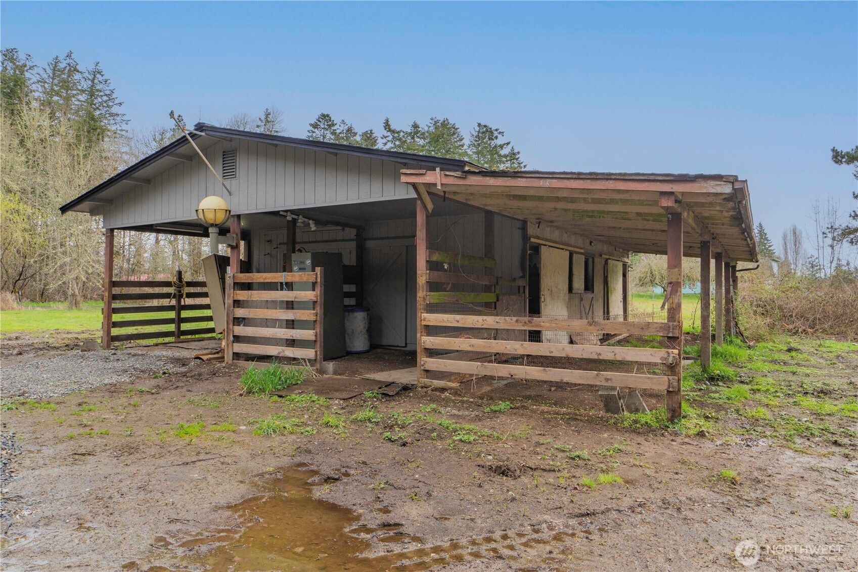 Enjoy life on this private retreat. With a large home, multiple outbuildings, and plenty of pasture land, this is a property that you buy to keep. Over 2 usable acres surround your home and land with trees and privacy making it hard to find your neighbors. But there is a peekaboo view of Mt Rainier. Property is fully fenced with additional pasture land allowing for a variety of uses. Step into the stylish single story home with large windows that pull the natural landscape inside that balance with the waterproof vinyl flooring throughout. The comfortable living room is augmented with the wood fireplace and real stone hearth. A large kitchen with breakfast nook gives plenty of room for entertaining or gatherings and includes additional pantry. Dining room off the kitchen is perfect as additional eating space or potential den/office. 3 large bedrooms each with window views that keep you smiling. Large shared bathroom and primary suite. Large covered back deck for bright or rainy day enjoyment. Enjoy the attached single car garage and detached 28x36 shop for a total of 1,344 shop space. The barn with tack room gives you the utility for the farm life you’ve always wanted. Brand new 30 year roofs on all structures. Warranty included. Home includes a new Heatpump and Furnace. Warranty included. Home and shop are preinspected, Septic has been pumped/inspected and the well and water has been tested and upgrades installed. This is the property to see.