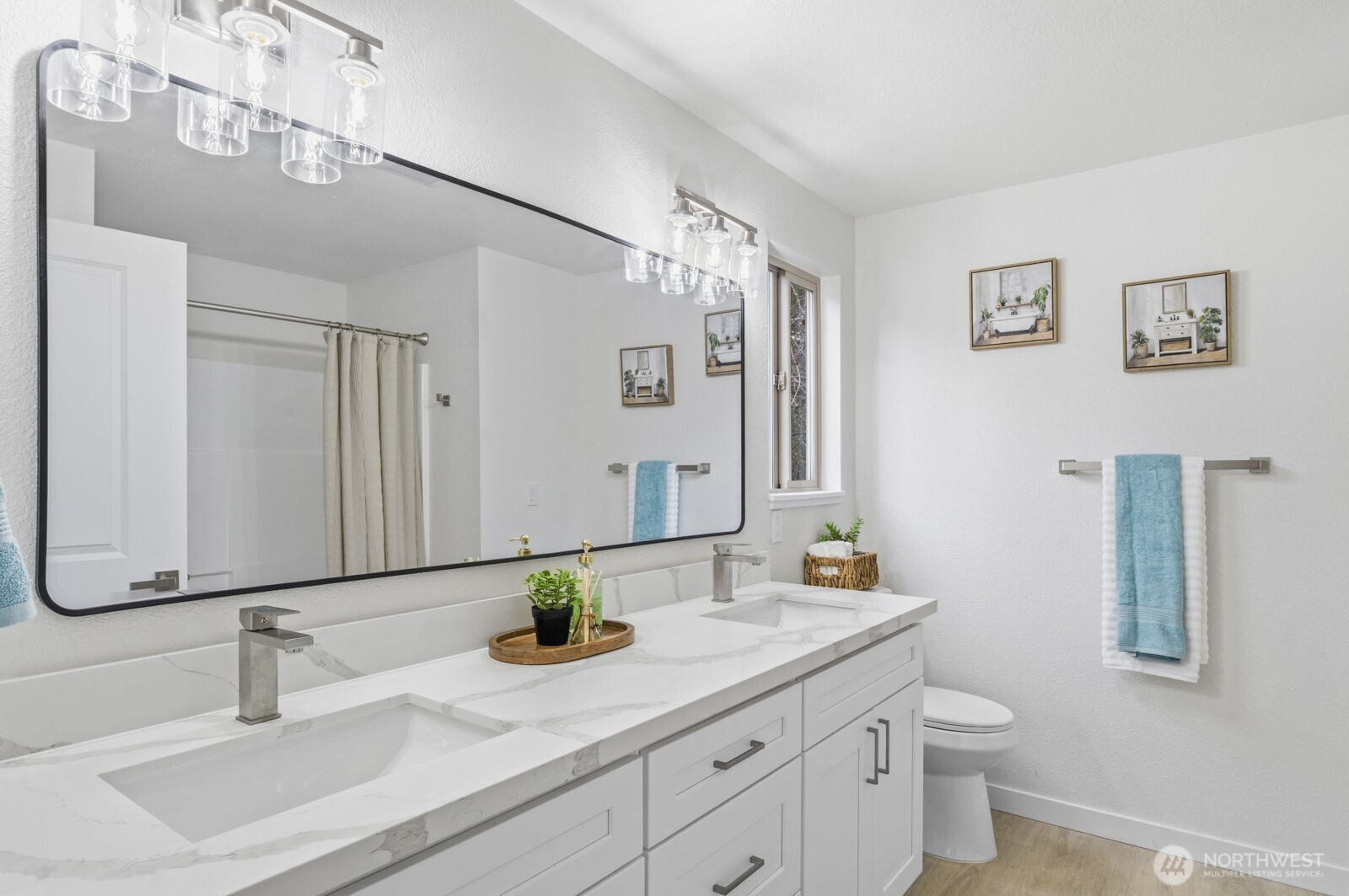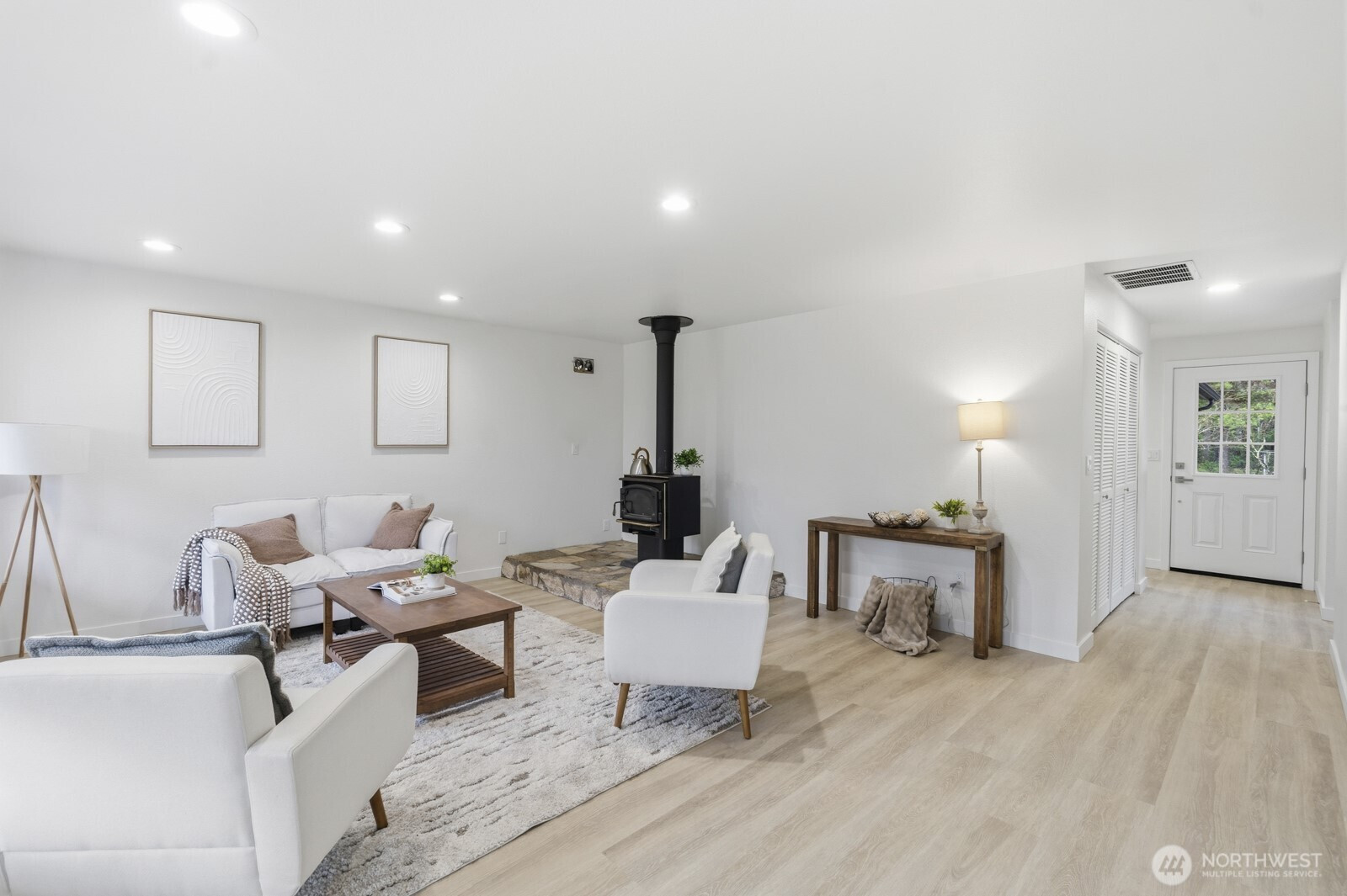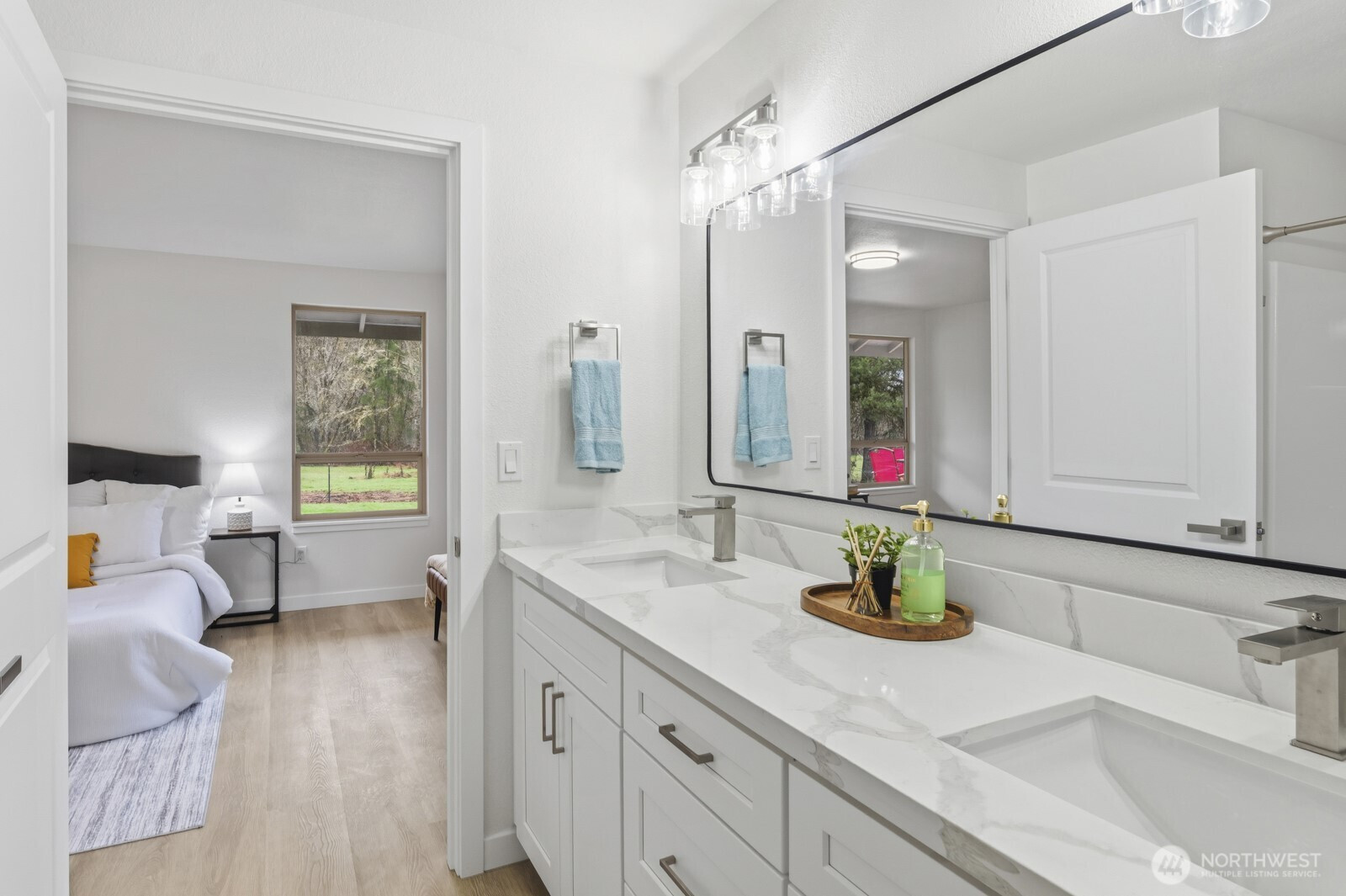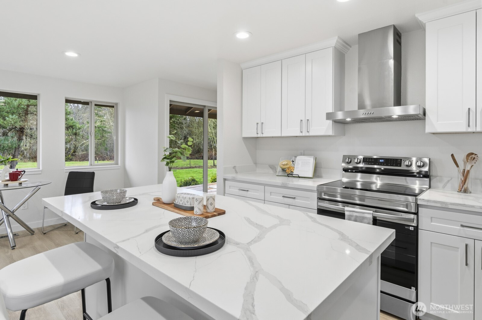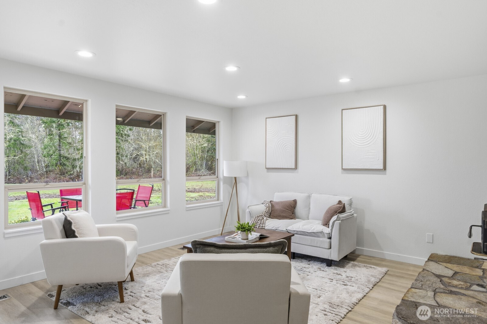 Enjoy life on this private retreat. With a large home, multiple outbuildings, and plenty of pasture land, this is a property that you buy to keep. Over 2 usable acres surround your home and land with trees and privacy making it hard to find your neighbors. But there is a peekaboo view of Mt Rainier. Property is fully fenced with additional pasture land allowing for a variety of uses. Step into the stylish single story home with large windows that pull the natural landscape inside that balance with the waterproof vinyl flooring throughout. The comfortable living room is augmented with the wood fireplace and real stone hearth. A large kitchen with breakfast nook gives plenty of room for entertaining or gatherings and includes additional pantry. Dining room off the kitchen is perfect as additional eating space or potential den/office. 3 large bedrooms each with window views that keep you smiling. Large shared bathroom and primary suite. Large covered back deck for bright or rainy day enjoyment. Enjoy the attached single car garage and detached 28x36 shop for a total of 1,344 shop space. The barn with tack room gives you the utility for the farm life you’ve always wanted. Brand new 30 year roofs on all structures. Warranty included. Home includes a new Heatpump and Furnace. Warranty included. Home and shop are preinspected, Septic has been pumped/inspected and the well and water has been tested and upgrades installed. This is the property to see.