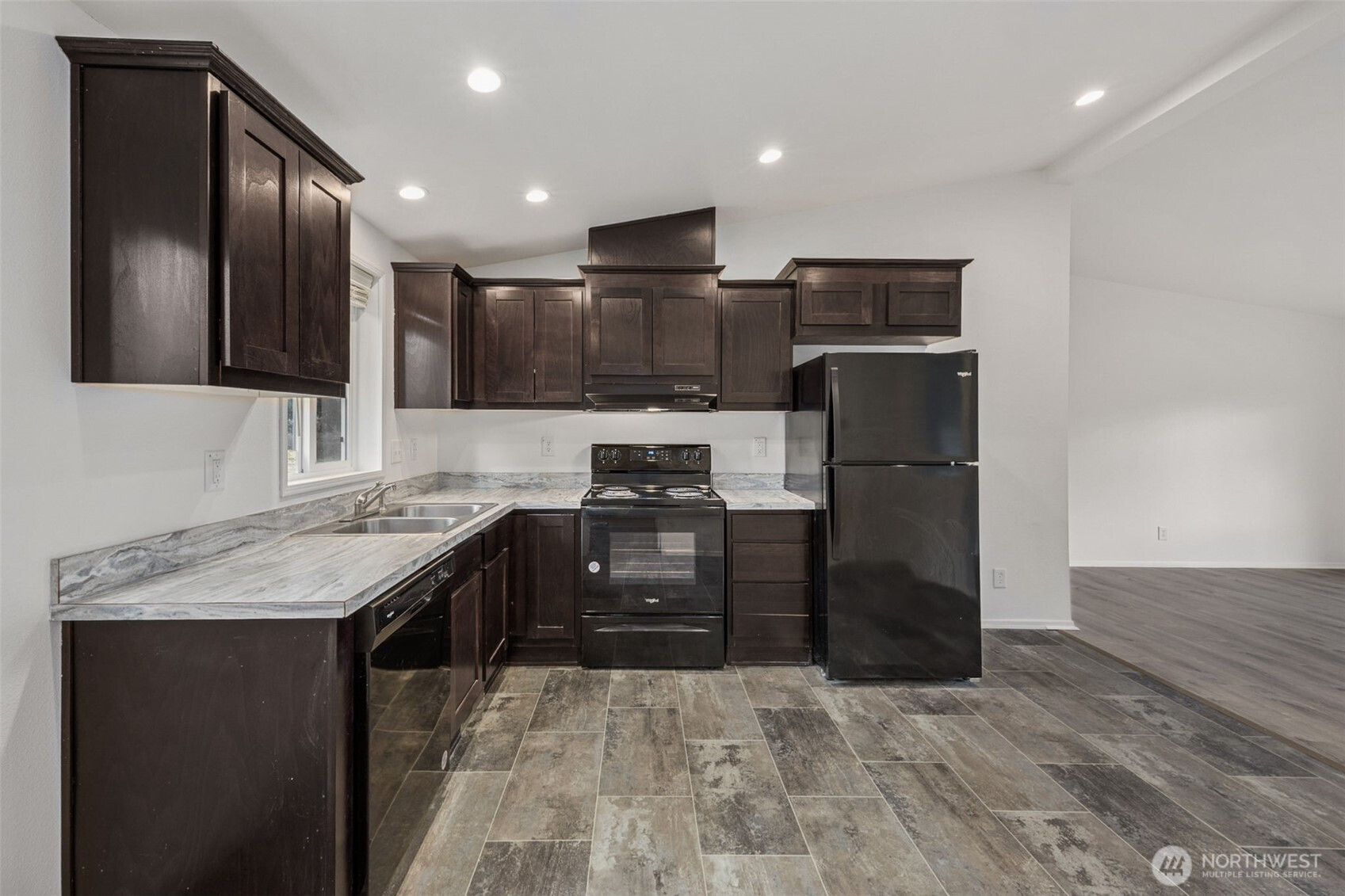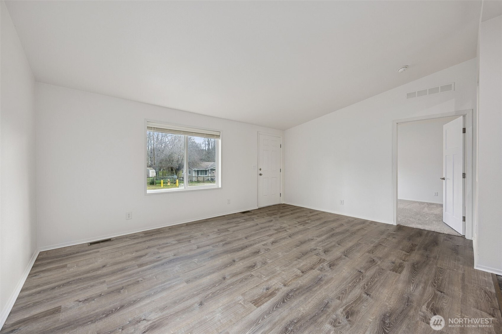 2022 Built 1-STORY blends modern construction with small town character! 3BR/2BA has split-bedroom plan for added privacy, with dramatic vaults, architectural cutout & ivory walls with plush mushroom carpet. Airy, open contemporary kitchen with dark espresso Shaker cabinets, sleek black appliances & room for future island. BBQ on deck via back door in pantry/laundry room. Vaulted primary suite on separate side of home from other bedrooms has walk-in closet & full bathroom. Level, sunny lot is ready for your landscaping design, not far from historic Town Hall, Community Center & close to post office, historic eatery & riverfront park! 5 mins to Tenino shops, 15 mins to Centralia outlet stores, 25 mins to Tumwater Costco & State offices!
